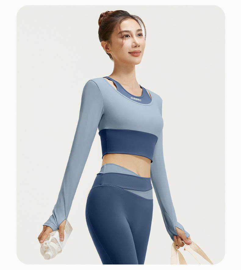 Juyitang - Conjunto deportivo ajustado de dos piezas para mujer, para correr, fitness, yoga, manga larga