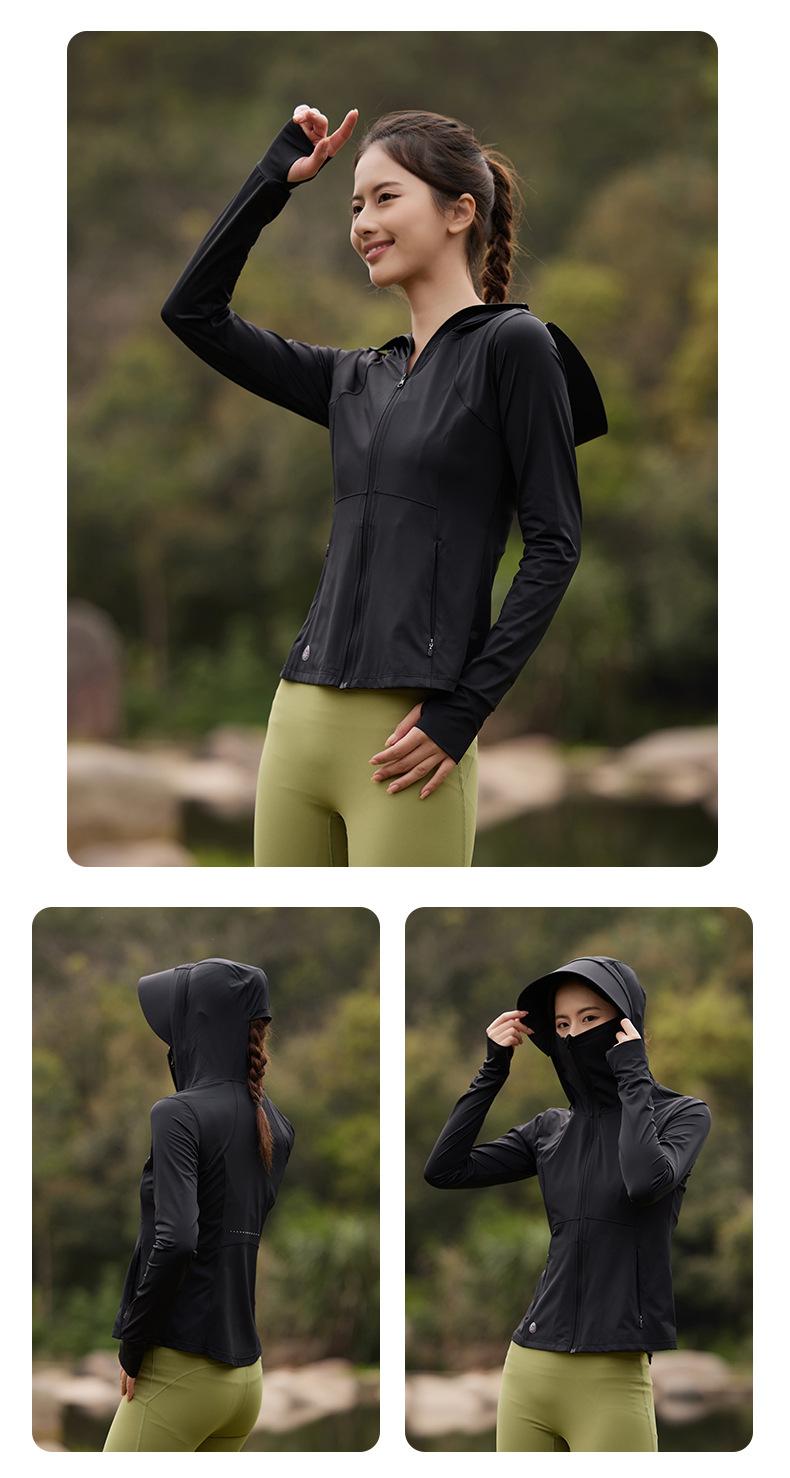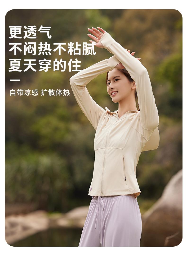 Chaqueta de yoga adelgazante con cintura ajustada y protección solar de seda helada de verano para mujer, con hilo original, antiultravioleta.
