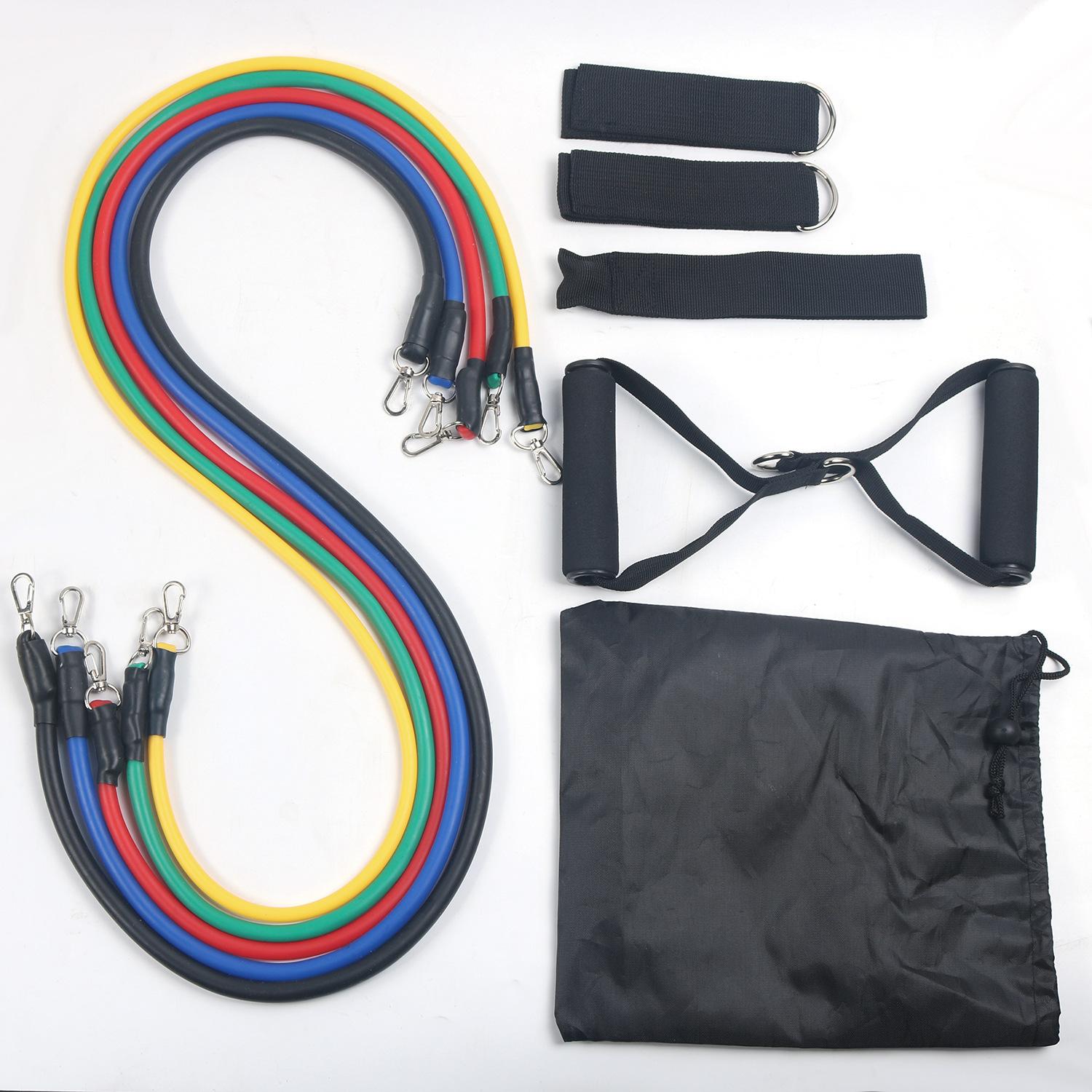Cinturón de resistencia para fitness, cuerda tensora, cuerda elástica, traje de entrenamiento de fuerza, equipo de tensión multifunción, juego de 11 piezas de cinco colores