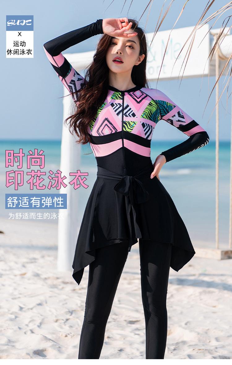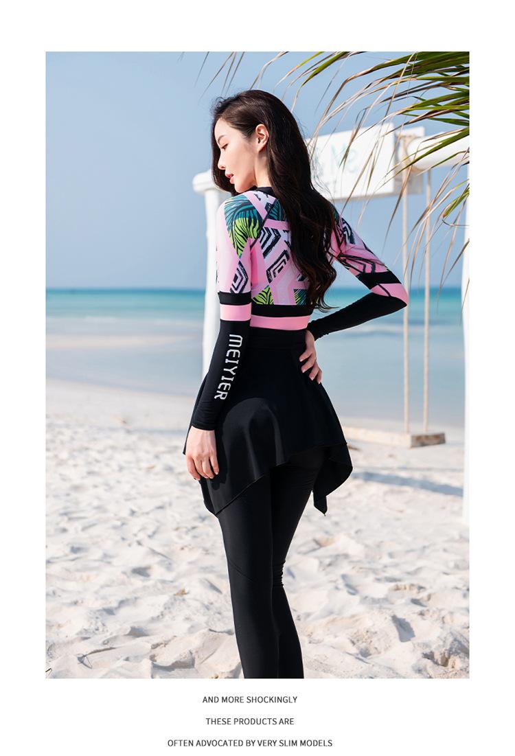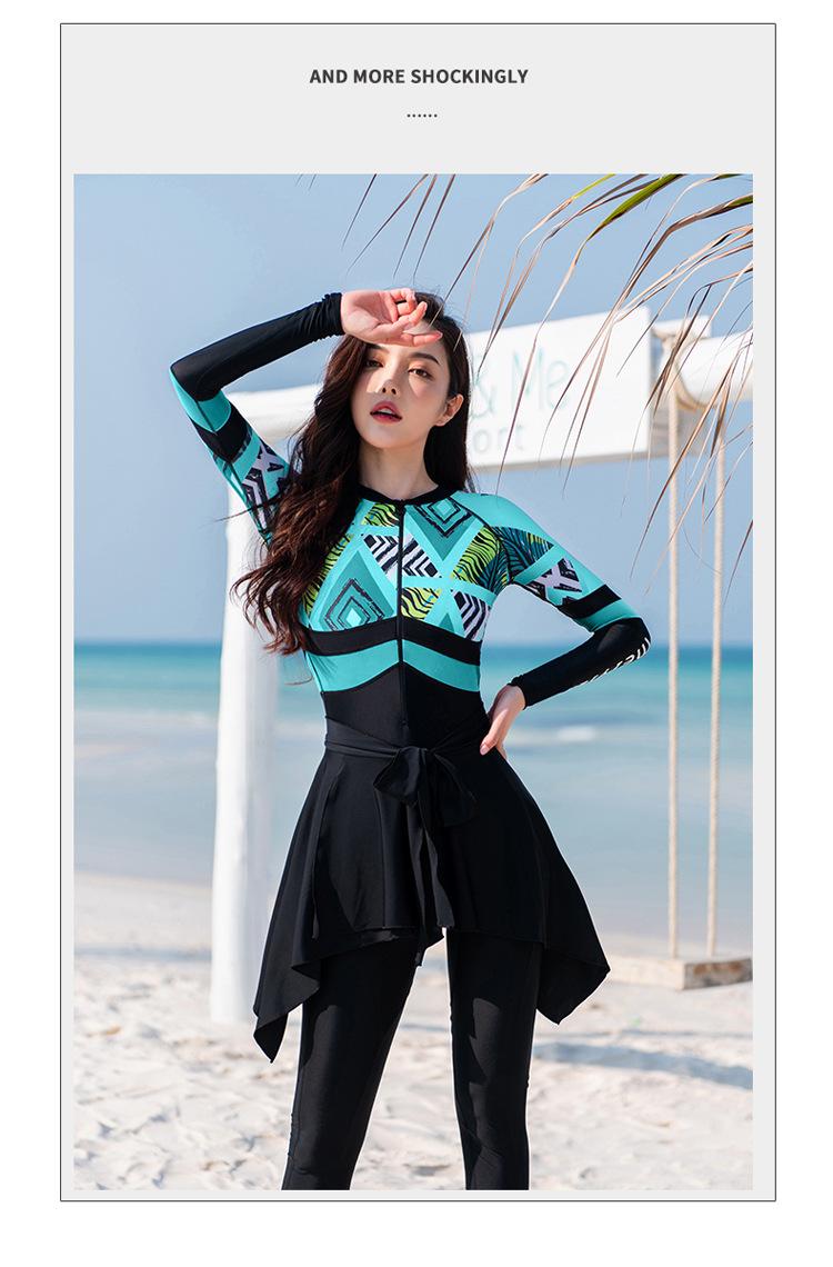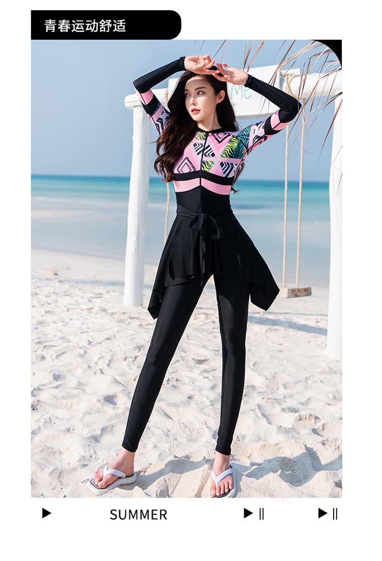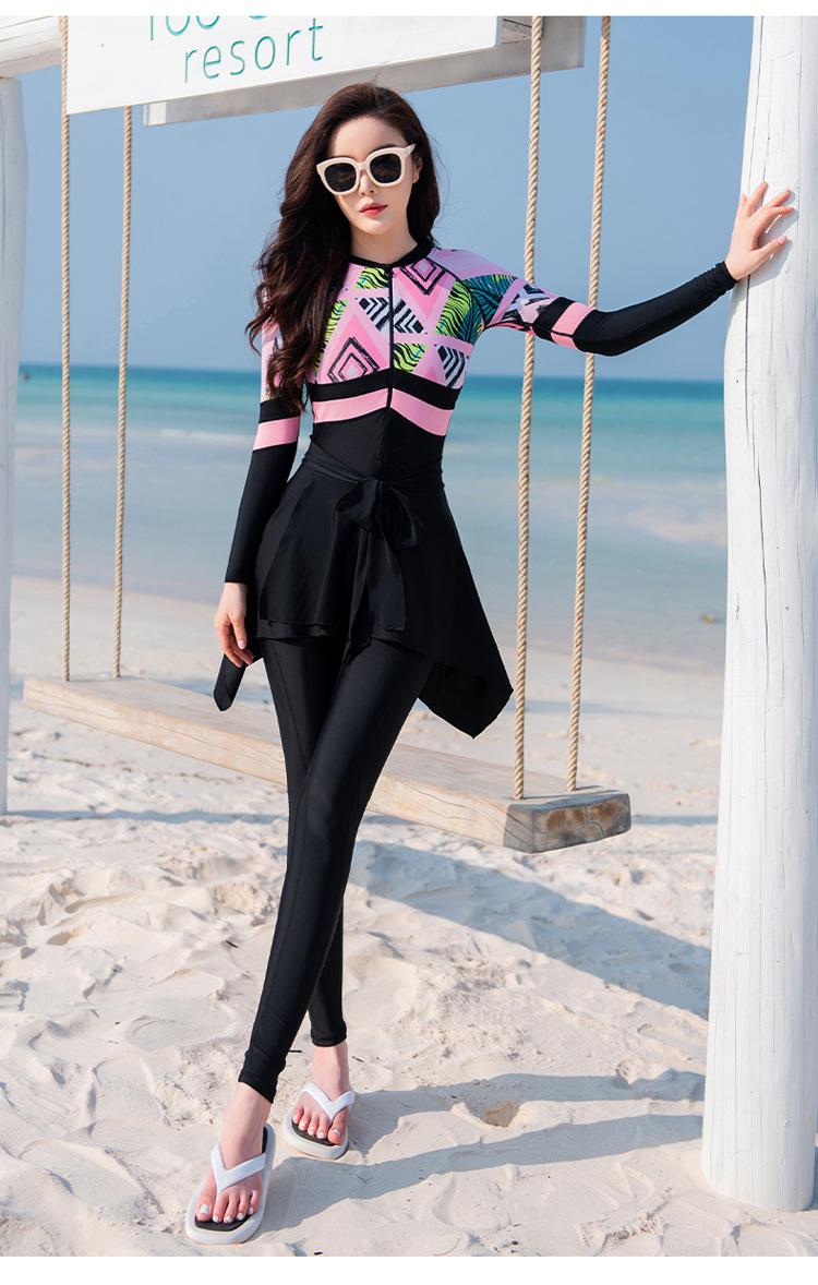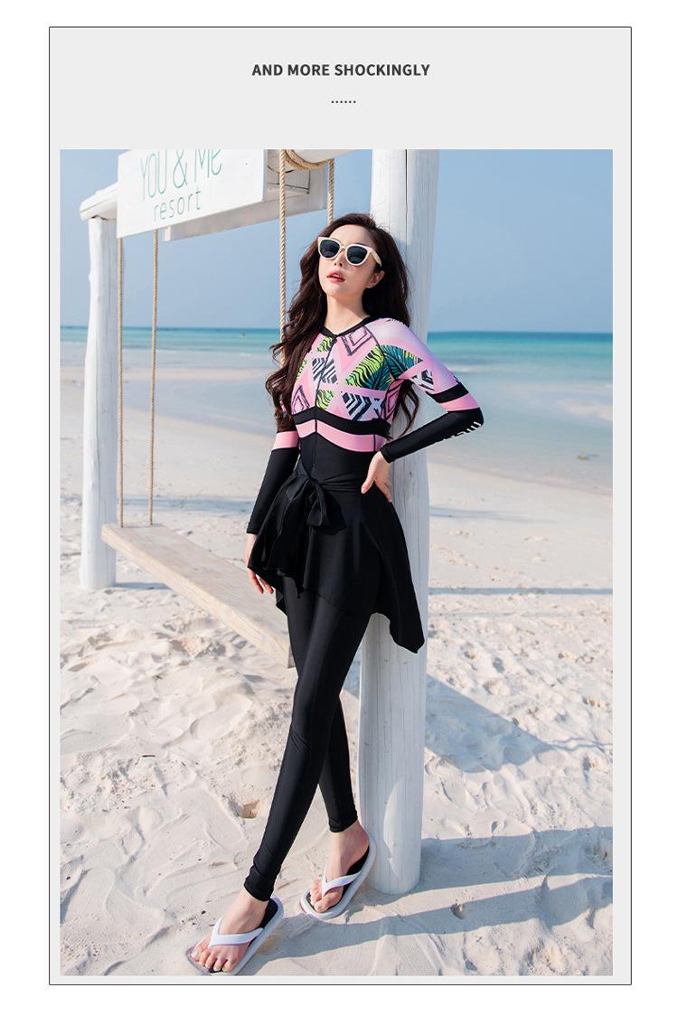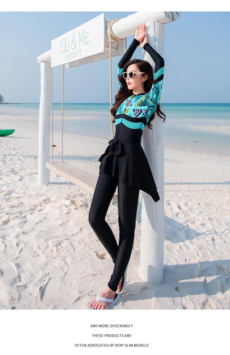 Traje de baño coreano de surf junto al mar para mujer, de dos piezas de alta gama, manga larga, pantalón largo, conservador, para aguas termales, esnórquel, sirena.