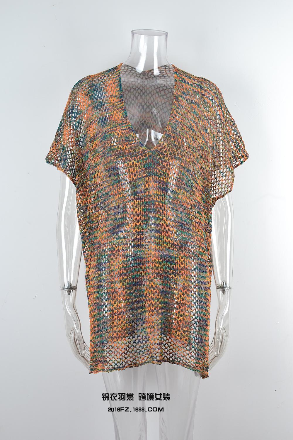 Europeo y Americano Amazon AliExpress más vendido tejido sexy hueco ganchillo flor bikini blusa protector solar protector solar de playa
