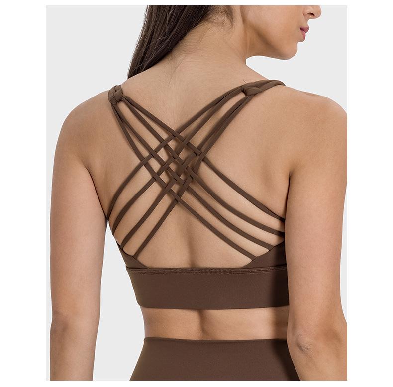 Traje de yoga deportivo Morandi de color con espalda cruzada y cintura alta elástica para mujer