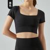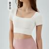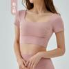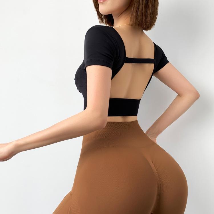 Top deportivo de manga corta con espalda hueca para mujer, para correr, de secado rápido, con tapete de pecho desmontable y ropa de yoga