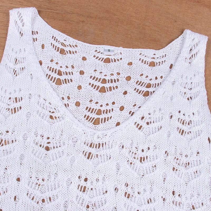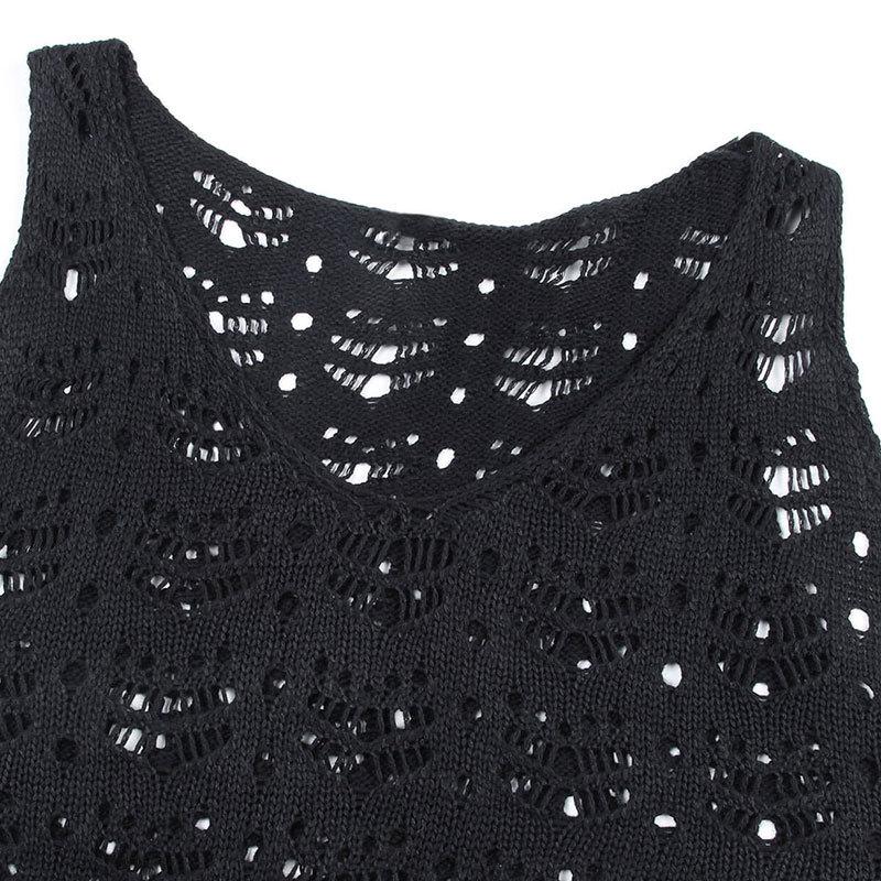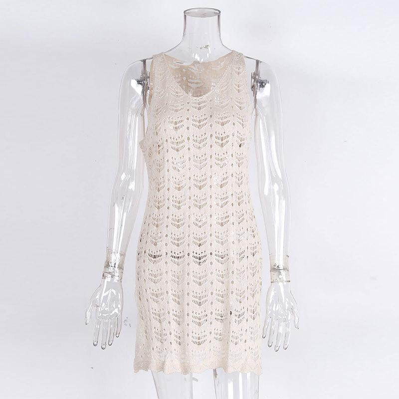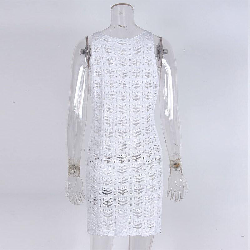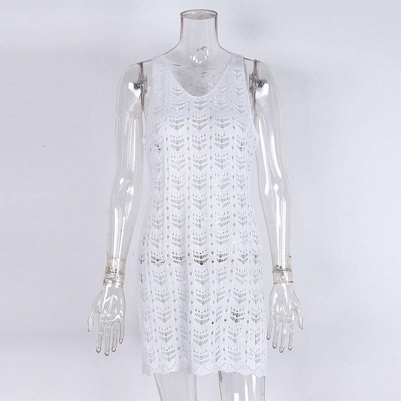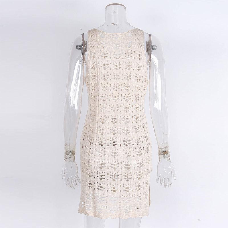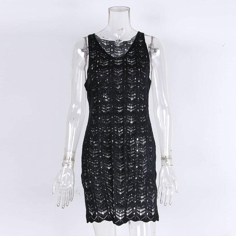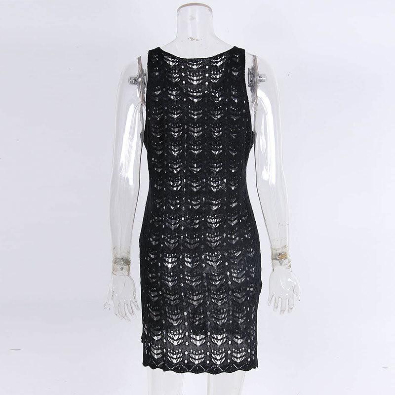 Camiseta Europea y Americana Nueva Hueca Transfronteriza para Protección Solar de Playa Sexy Transparente Sin Espalda Sin Mangas Vestido Cubre Bikini para Mujer
