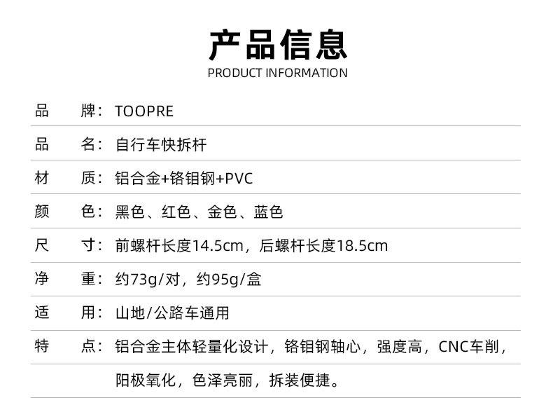 Nombre del producto: Varilla de liberación rápida para bicicleta