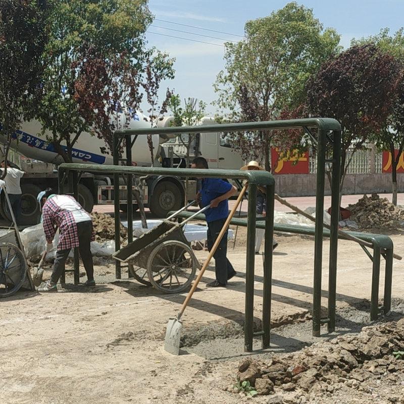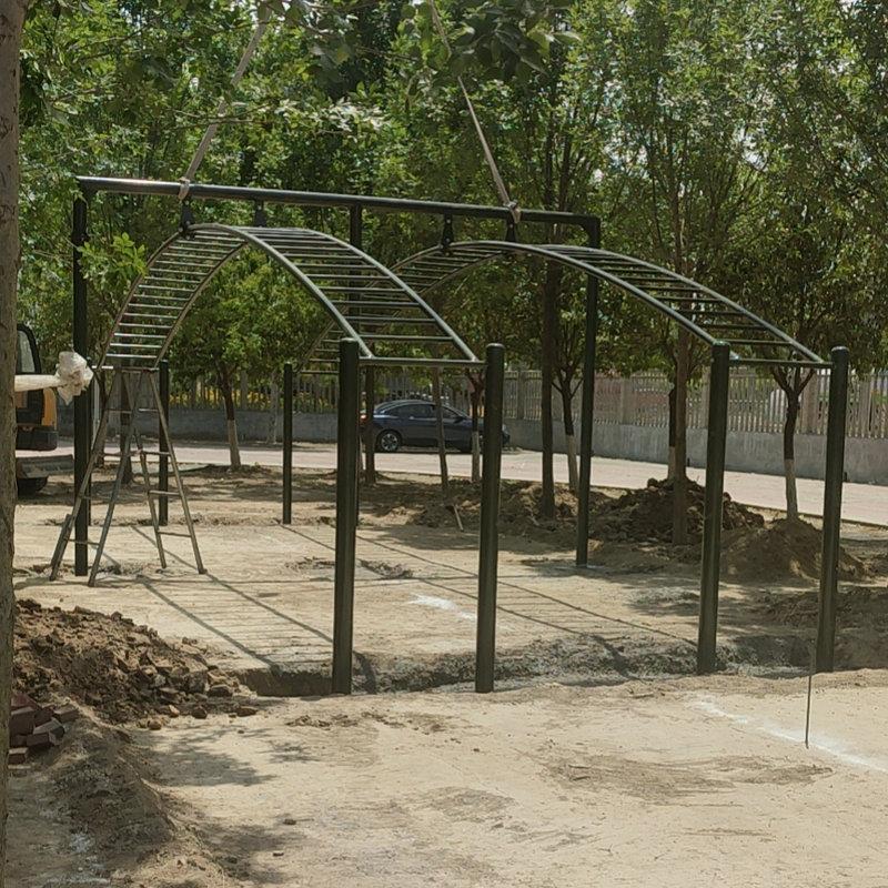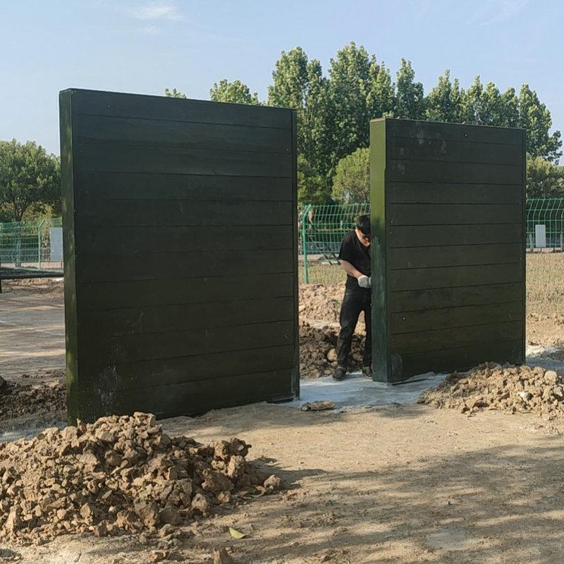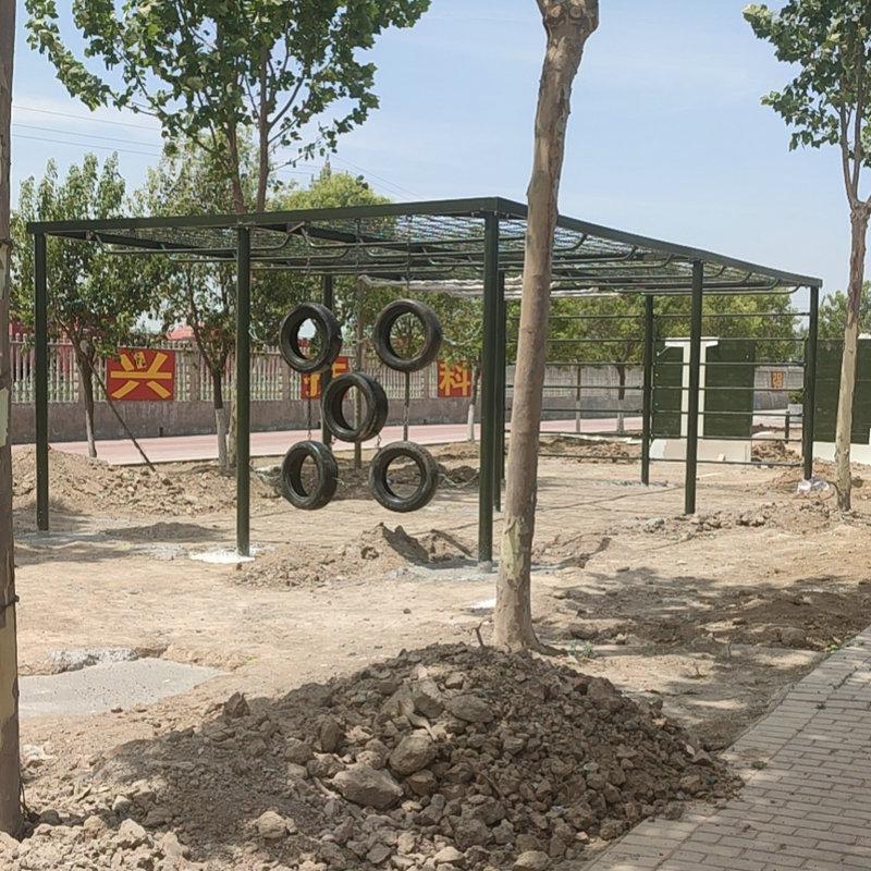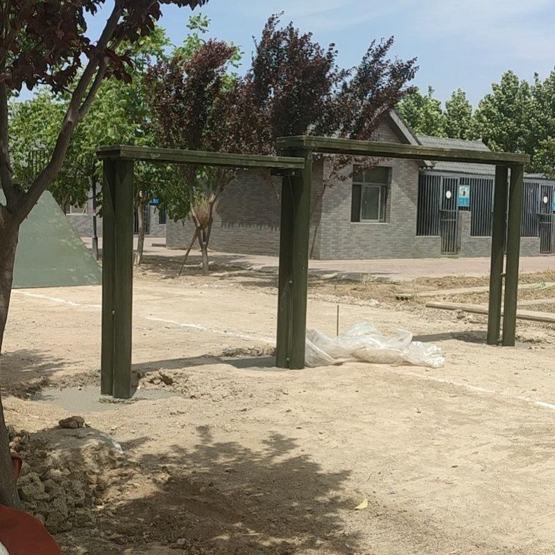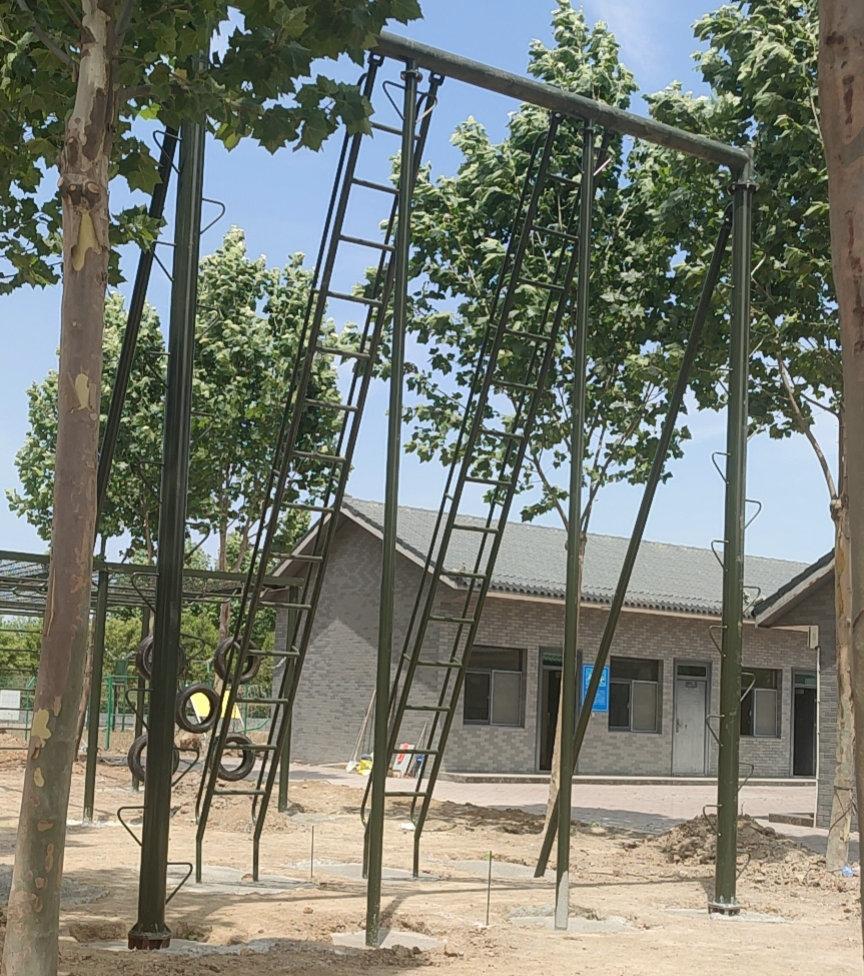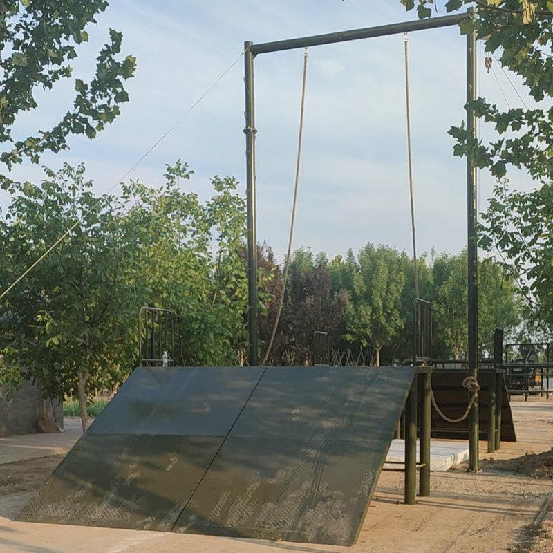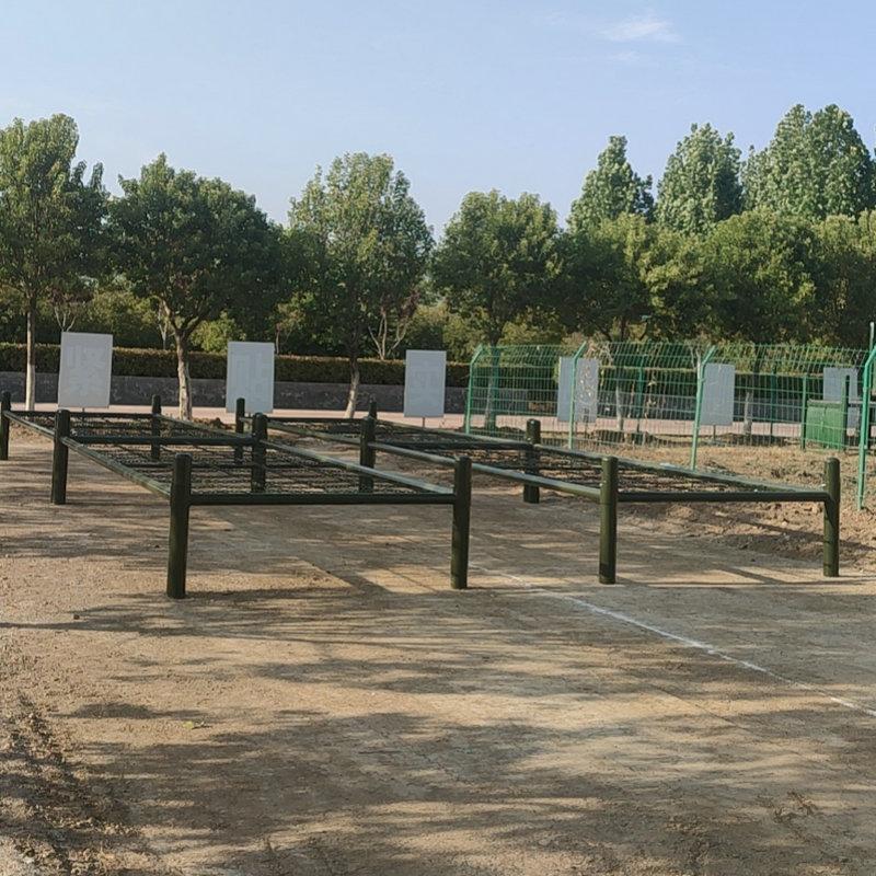 Cada set cubre un área de 40 metros cuadrados (8X5 metros): estructura de hierro, altura del soporte 2.5 metros, ancho 3.4 metros, atornillado a la base de concreto: escalera de caracol de 4 metros de largo, 0.5 metros de ancho, separados 2 metros: espesor de la capa de arena del suelo 0.3 metros, la capa de arena cubre la base.