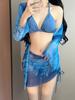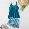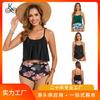 Traje de baño dividido de malla con tirantes estampado nuevo europeo y americano 2024 Amazon Shorts traje de baño de bikini de playa conservador