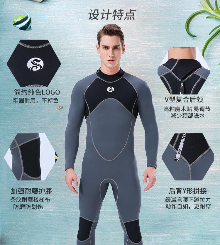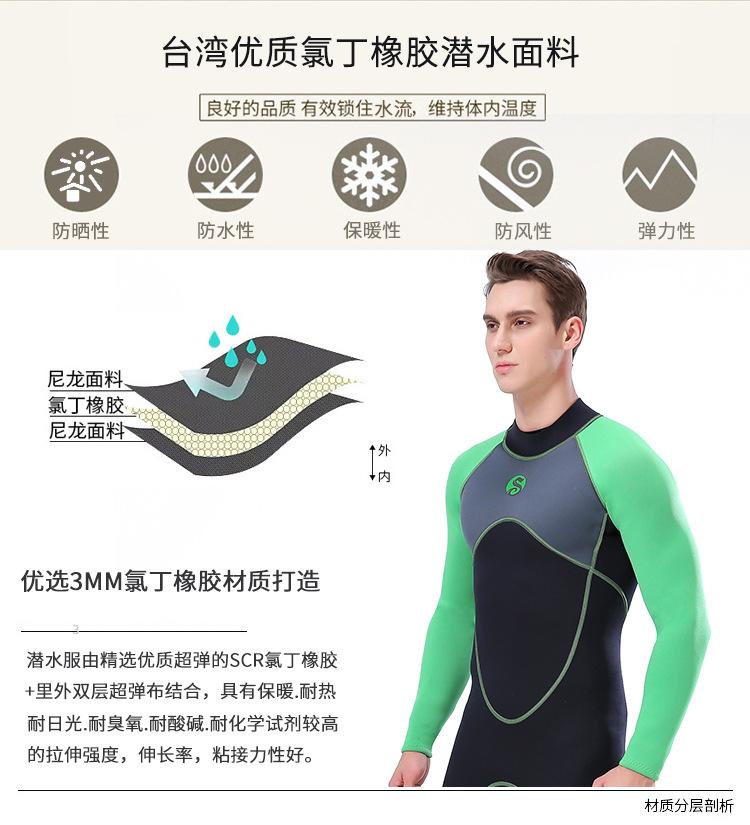 Traje de buceo de manga larga resistente al desgaste transfronterizo 3 mm de una pieza protección solar superelástico cálido unisex traje húmedo traje de buceo¥188