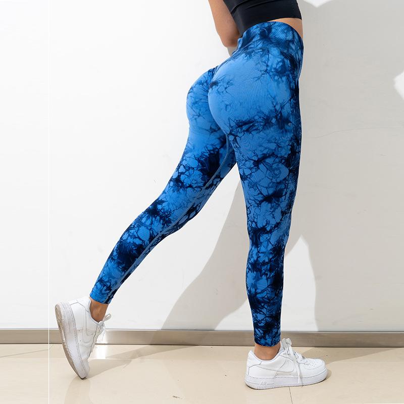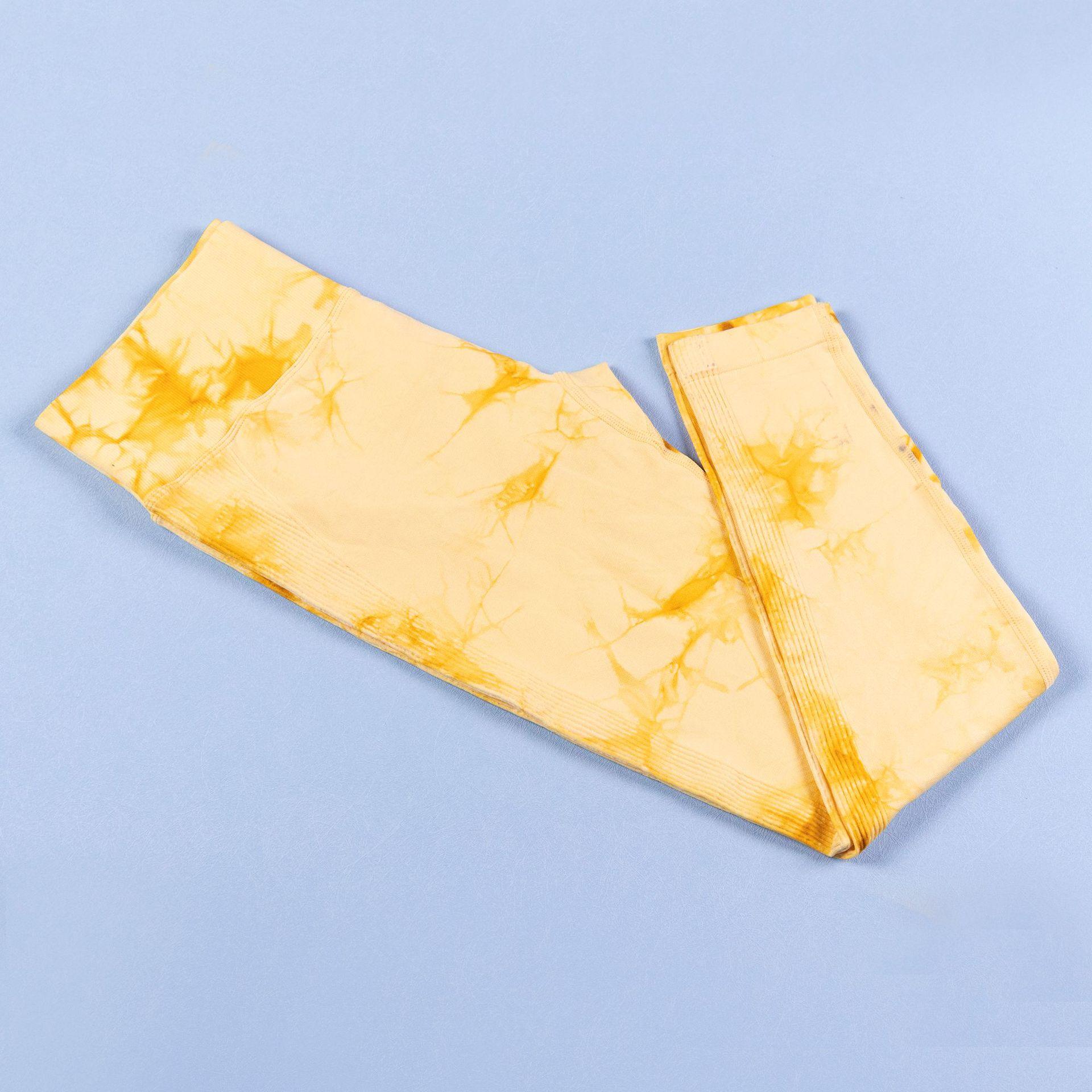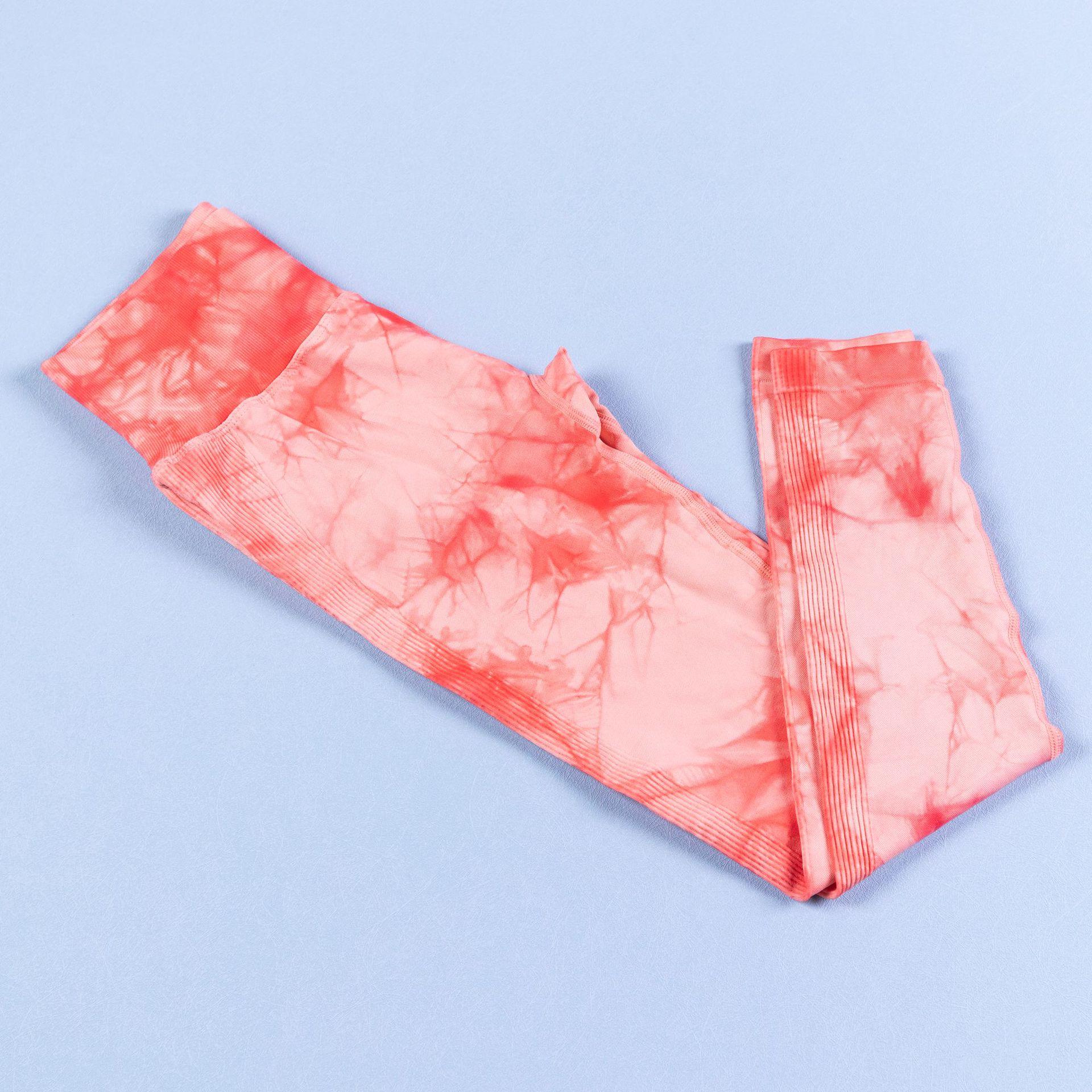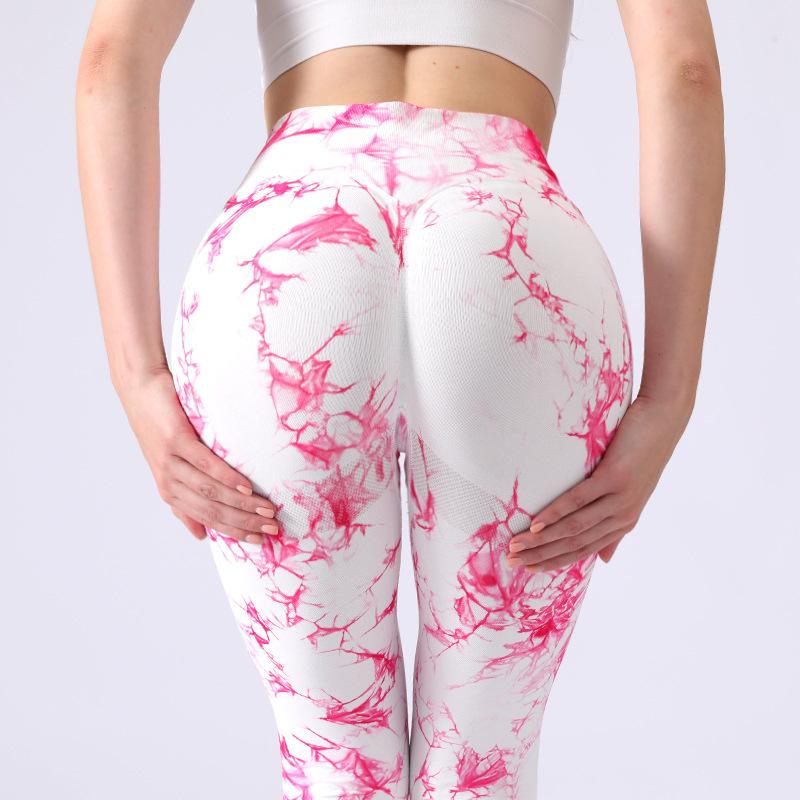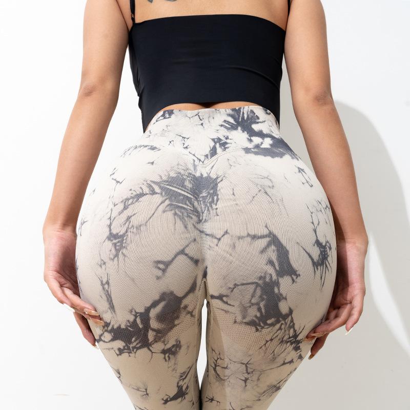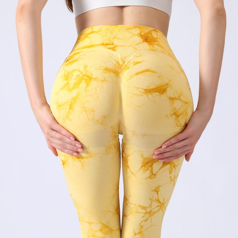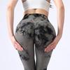 Pantalones de yoga de punto tie-dye sin costuras, estilo europeo y americano, súper elásticos, ajustados, de cintura alta, color melocotón, para mujer