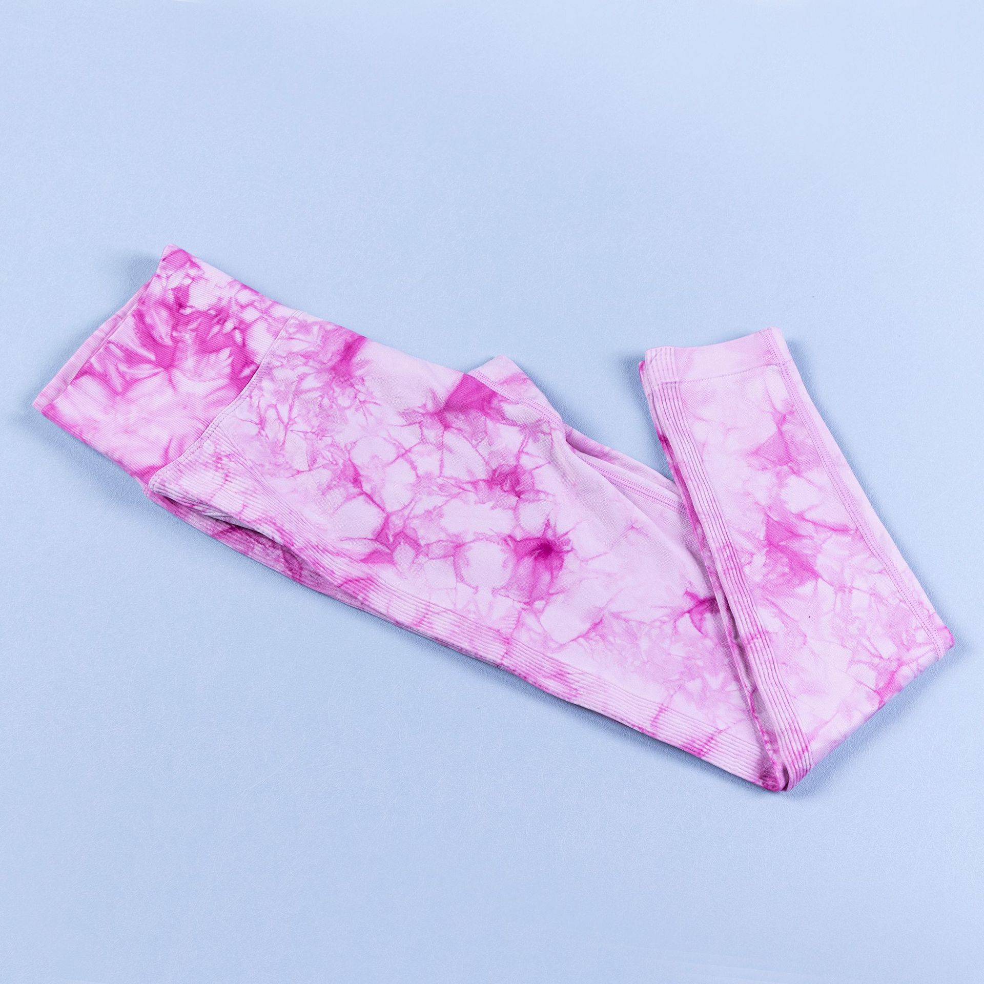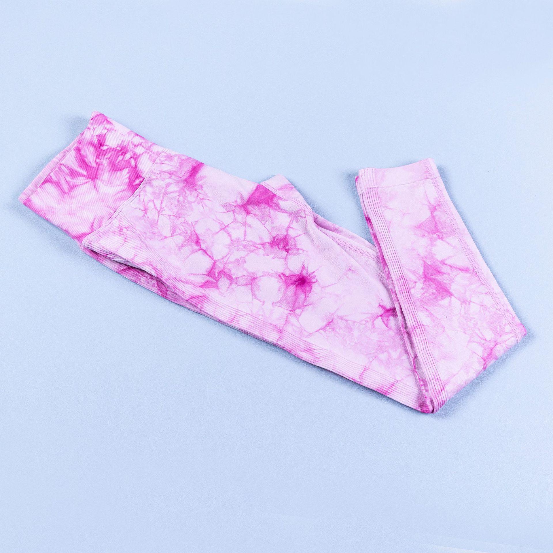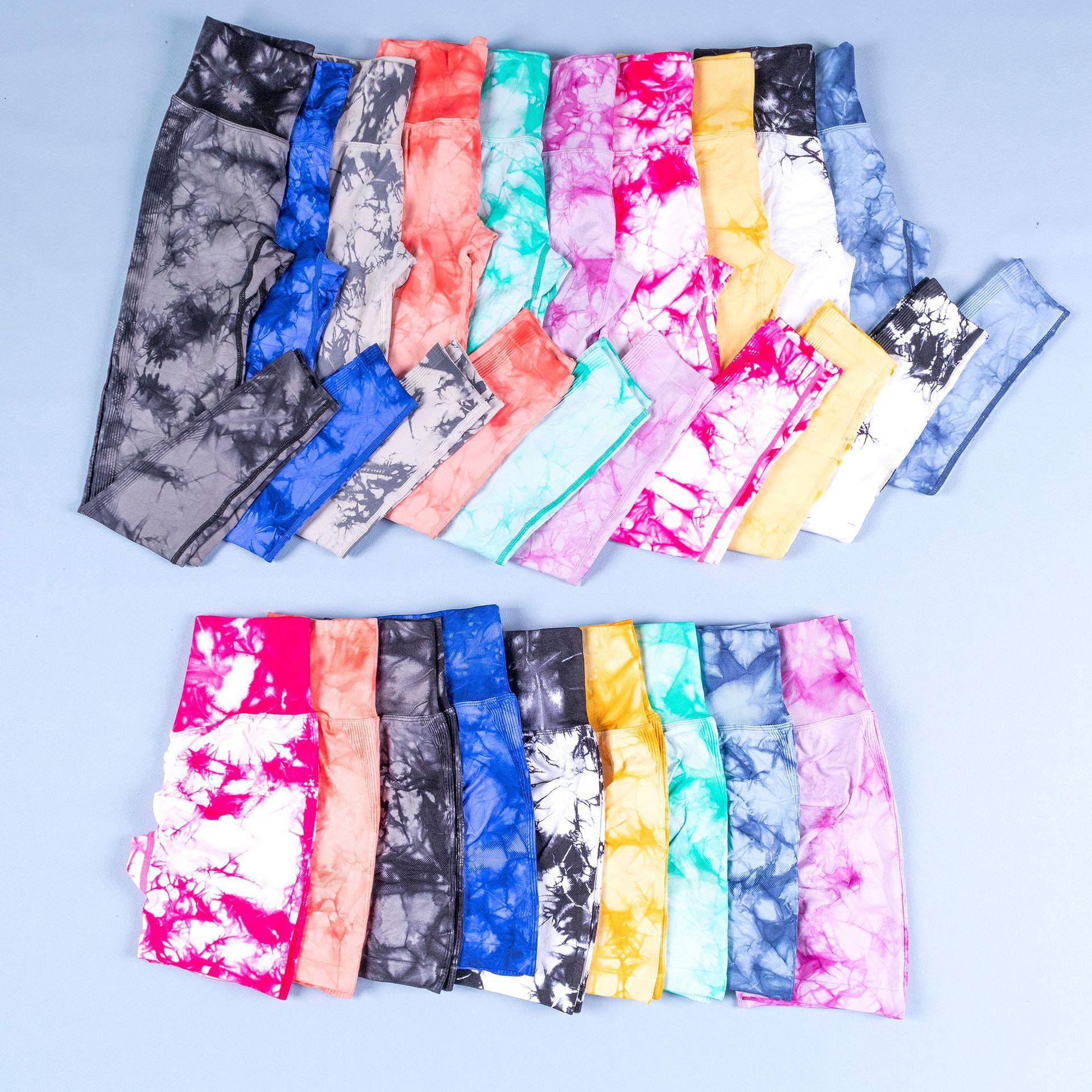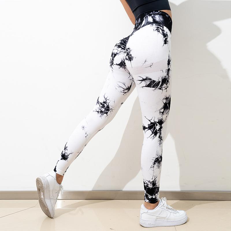 Pantalones de yoga de punto tie-dye sin costuras, estilo europeo y americano, súper elásticos, ajustados, de cintura alta, color melocotón, para mujer