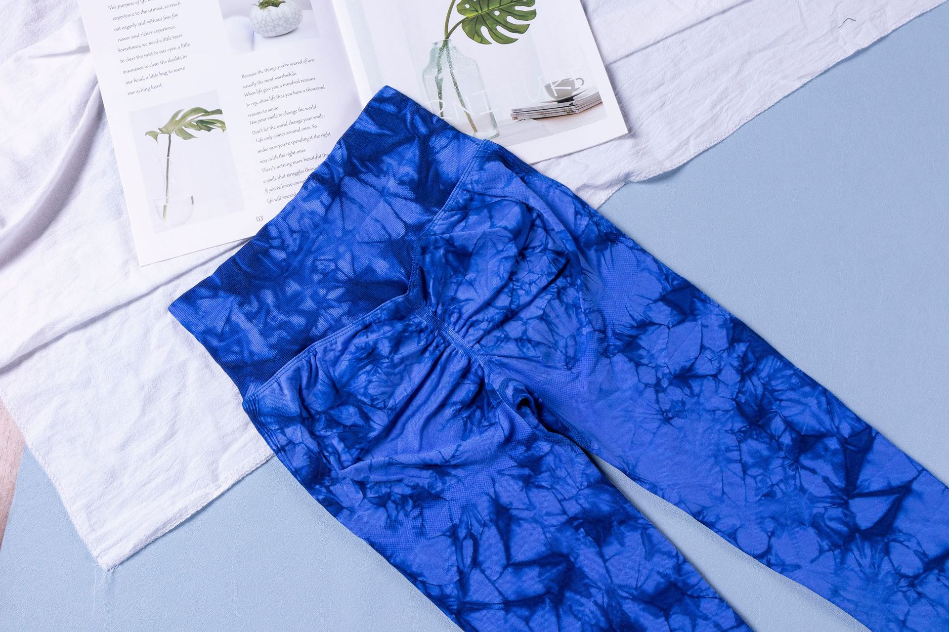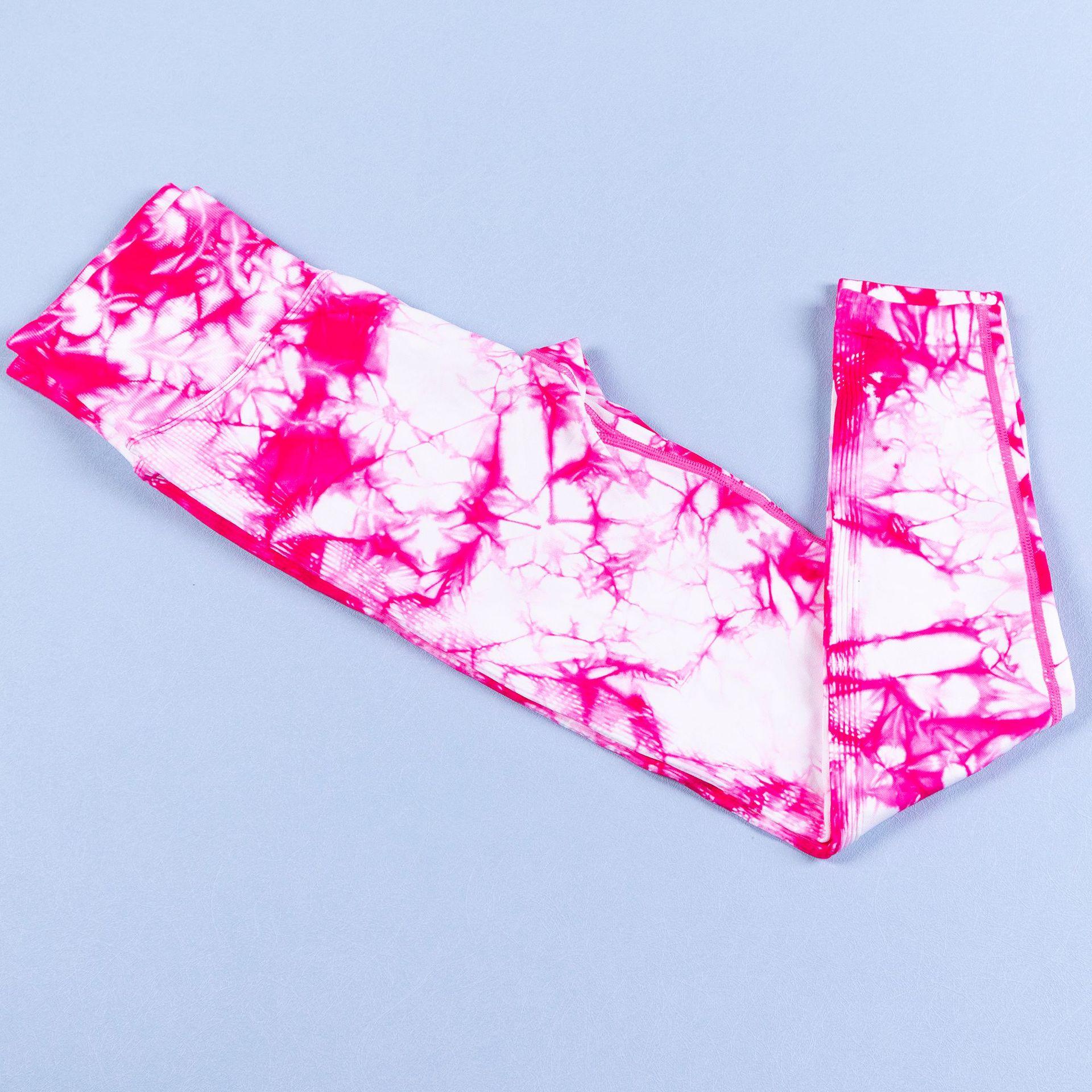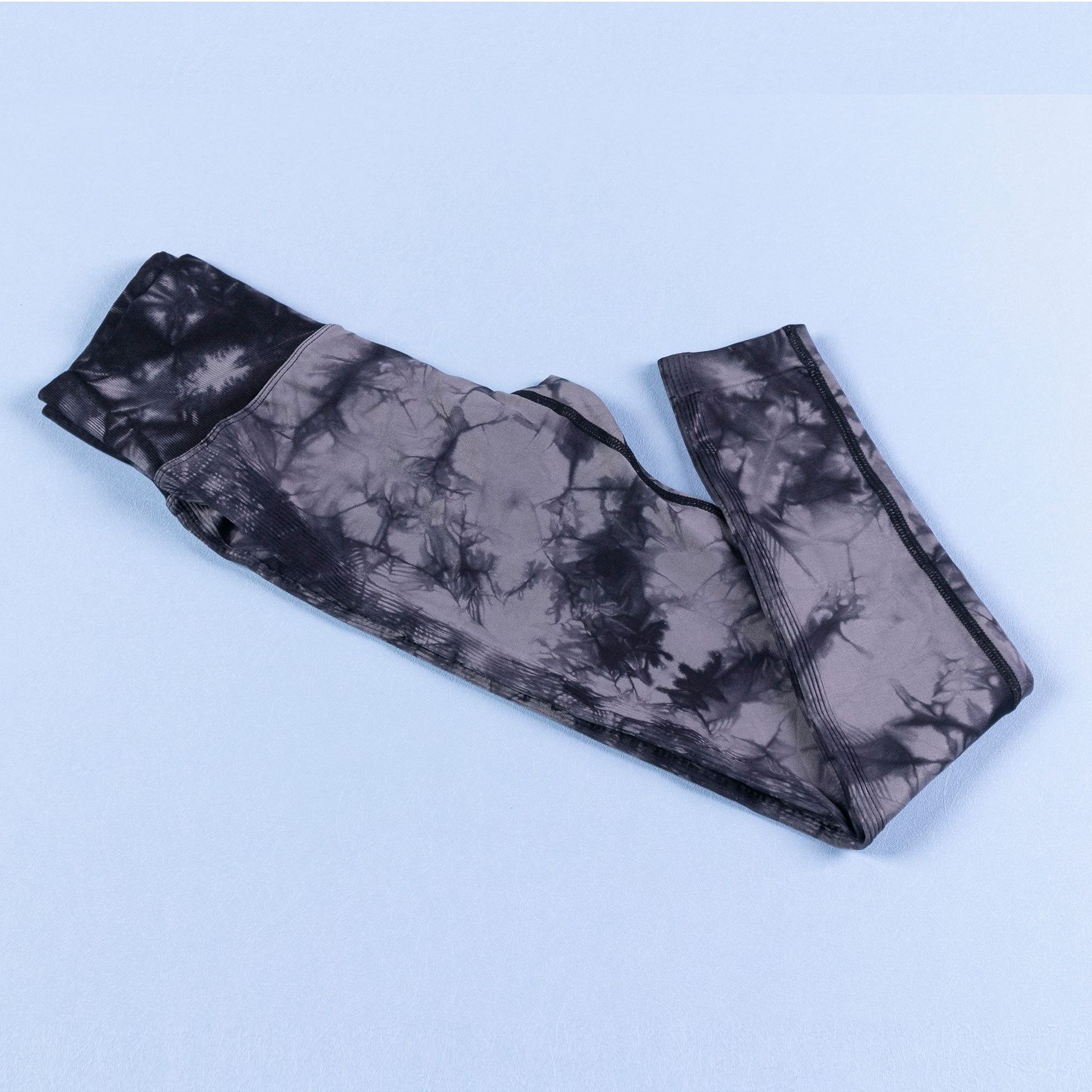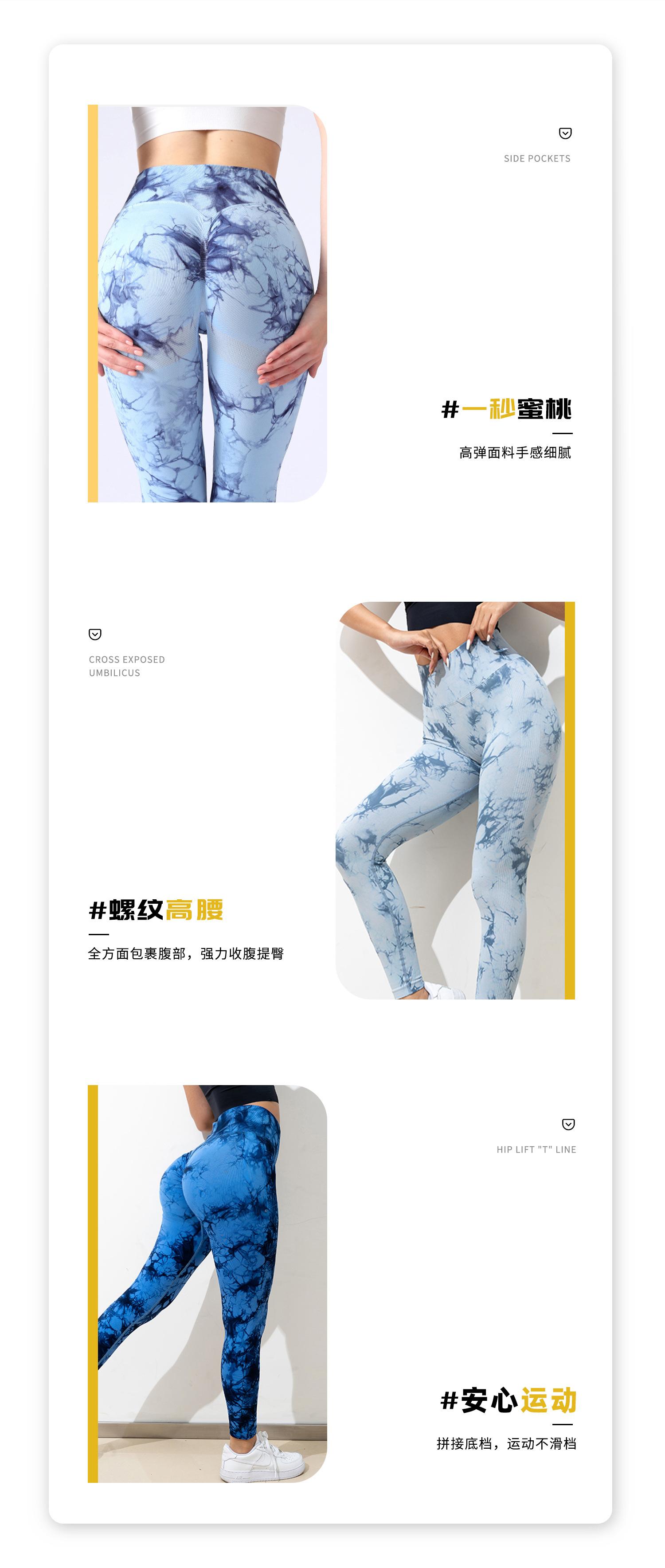Pantalones de yoga de punto tie-dye sin costuras, estilo europeo y americano, súper elásticos, ajustados, de cintura alta, color melocotón, para mujer