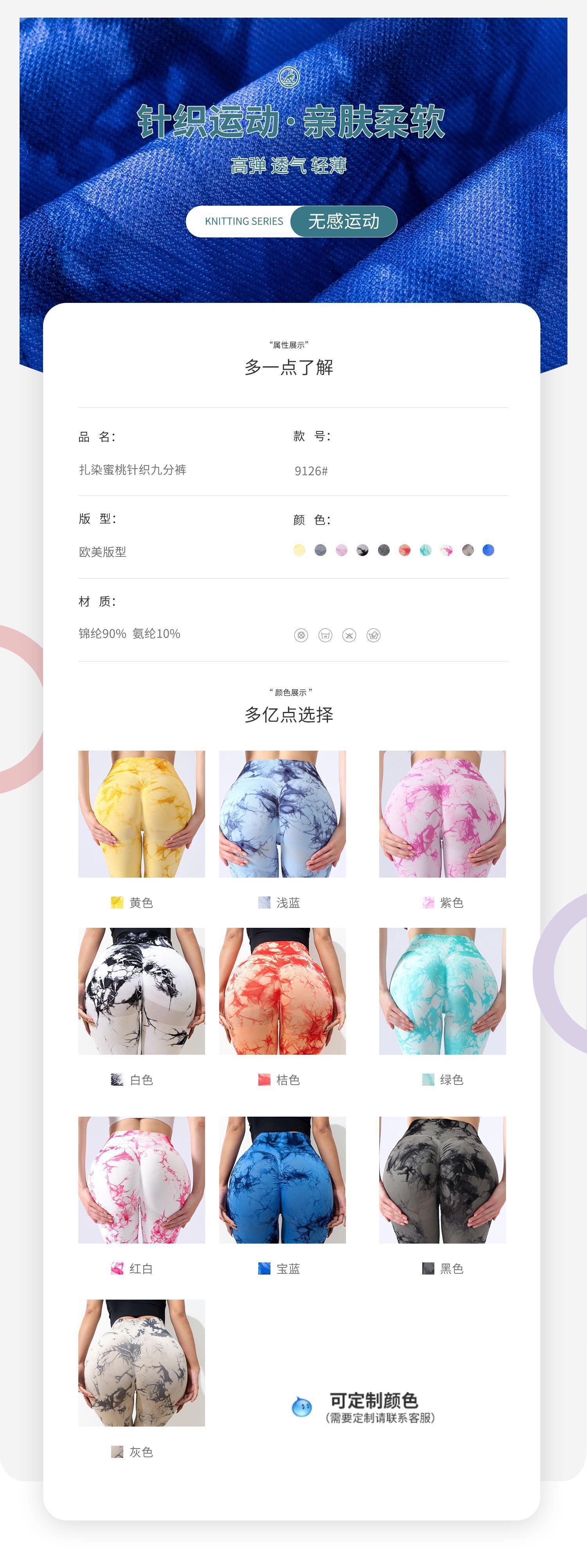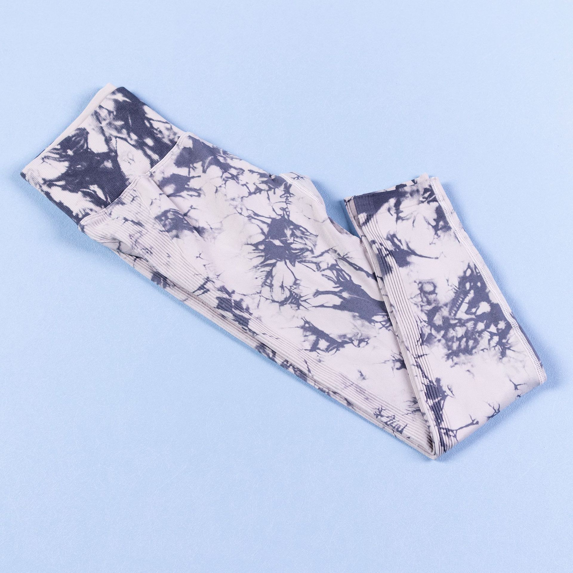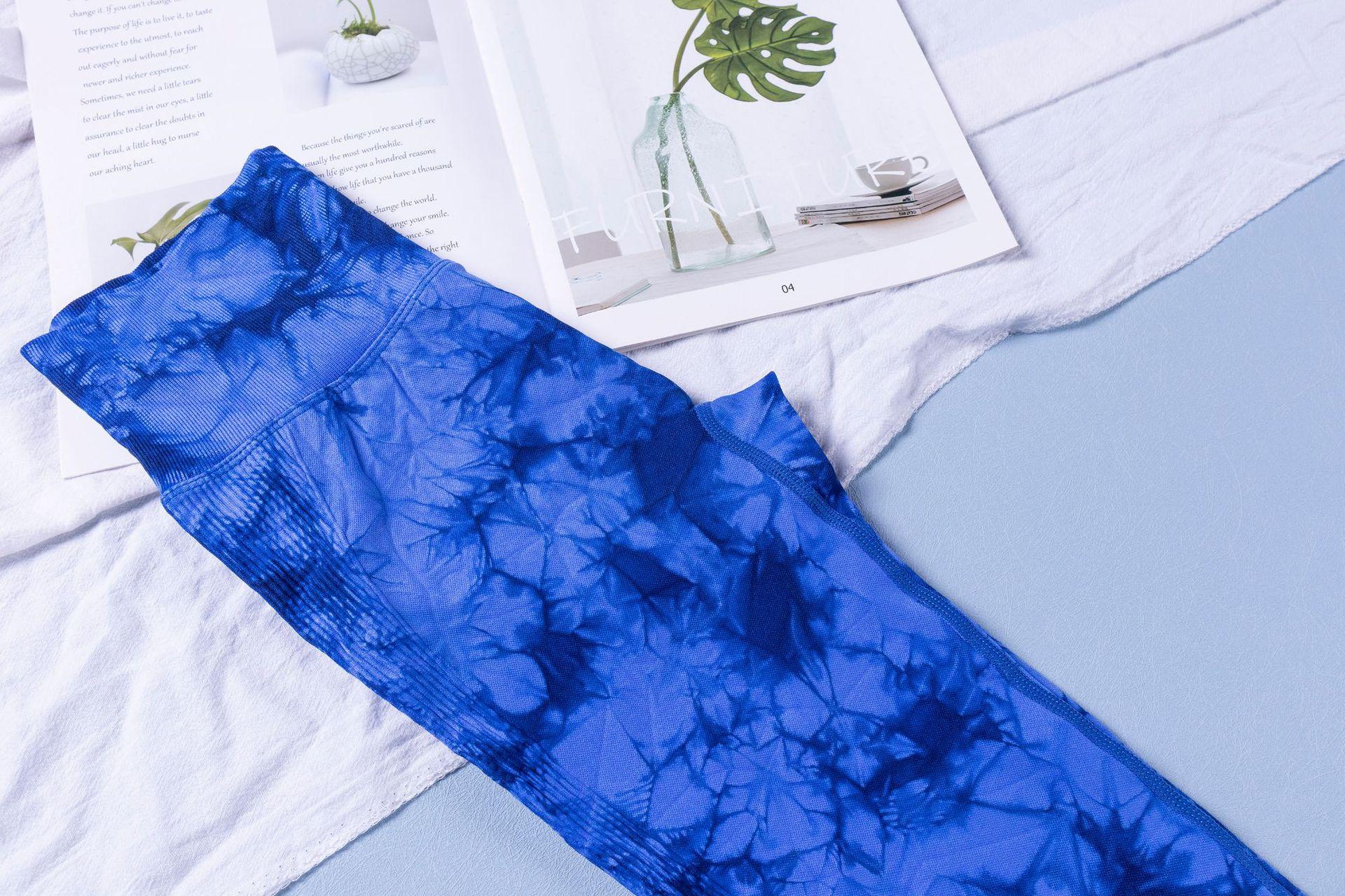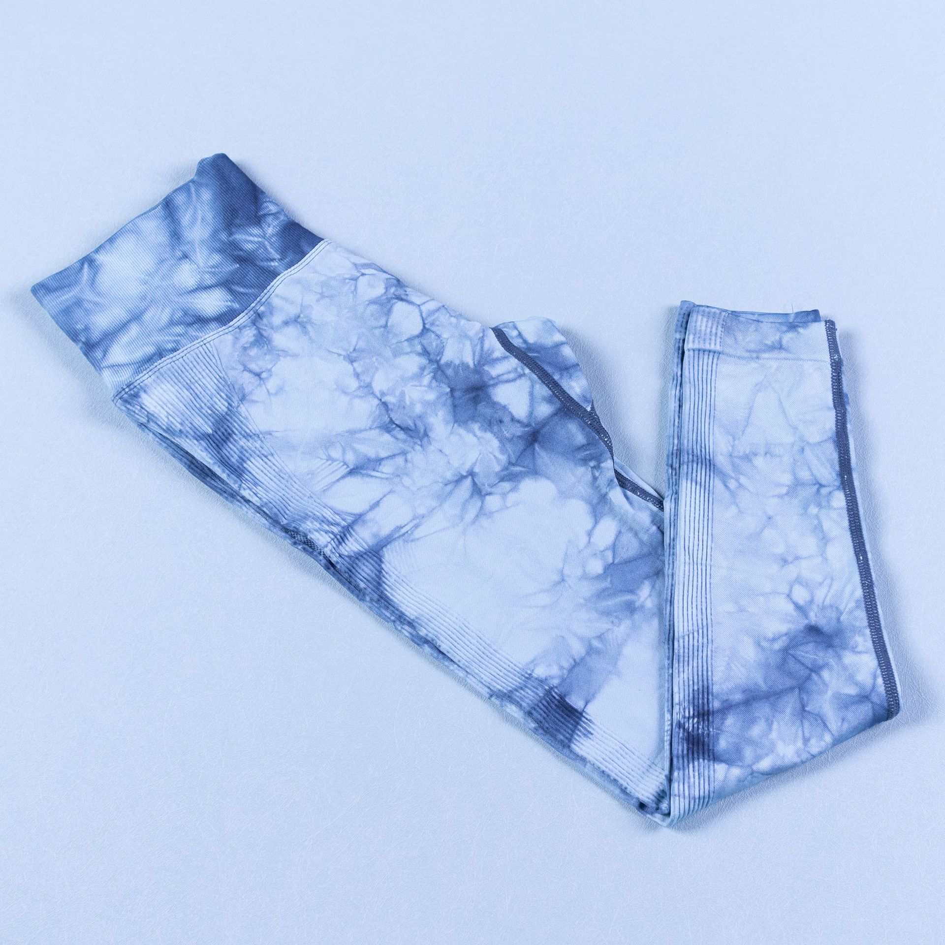 Pantalones de yoga de punto tie-dye sin costuras, estilo europeo y americano, súper elásticos, ajustados, de cintura alta, color melocotón, para mujer