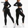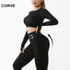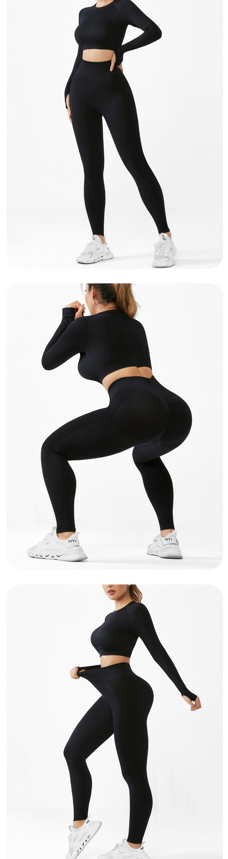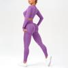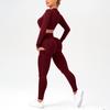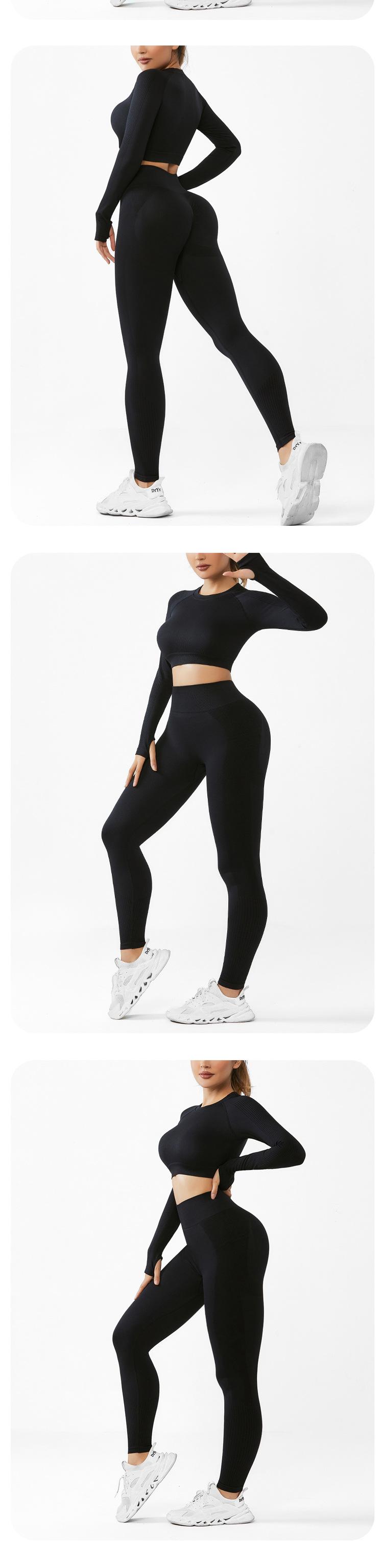 Conjunto de Traje de Yoga Tejido sin Costuras para Mujer en Otoño e Invierno, Top Deportivo de Fitness de Manga Larga y Pantalones de Yoga Ajustados, Cómodo y Adelgazante