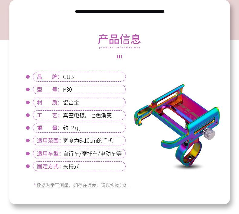 Soporte para teléfono móvil GUB P30 de aleación de aluminio, para batería de coche, motocicleta eléctrica, bicicleta, galvanizado, colorido