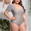 Traje de baño sexy de una pieza de manga corta para surf de playa de comercio exterior, talla grande, sin espalda, cuello redondo, protección solar, cubre abdomen, triángulo