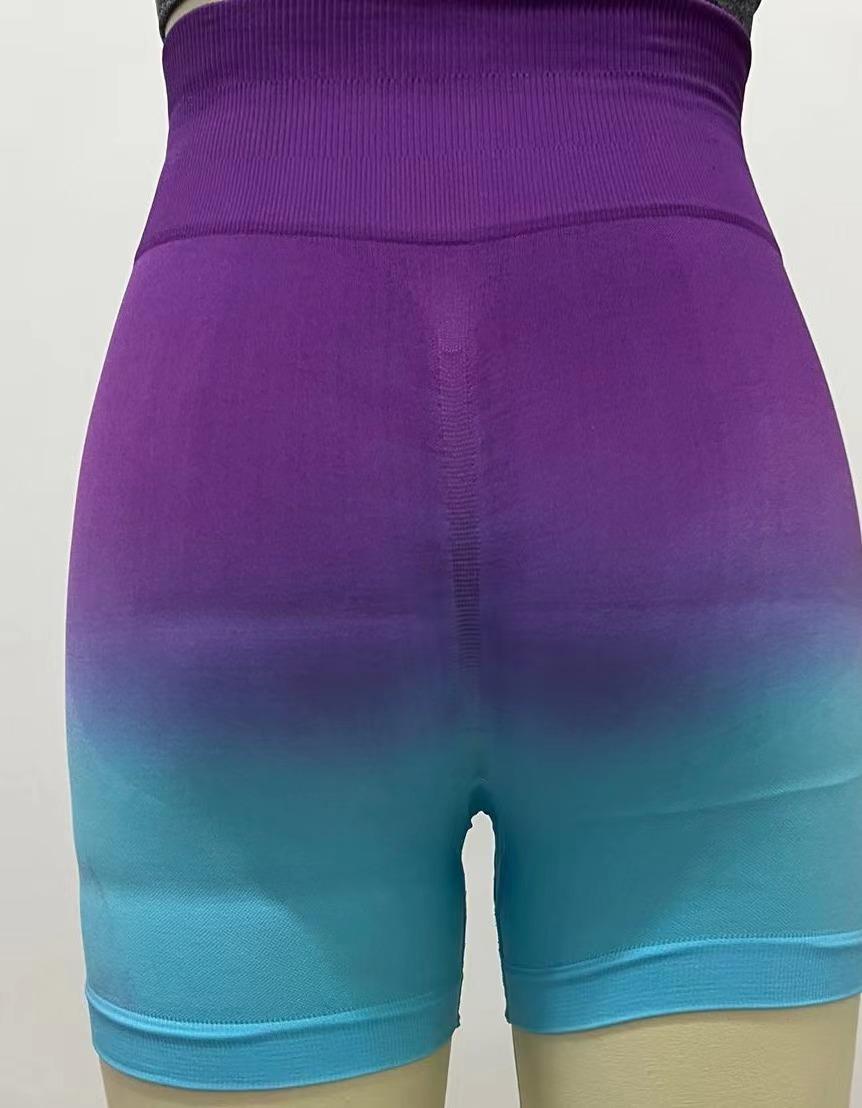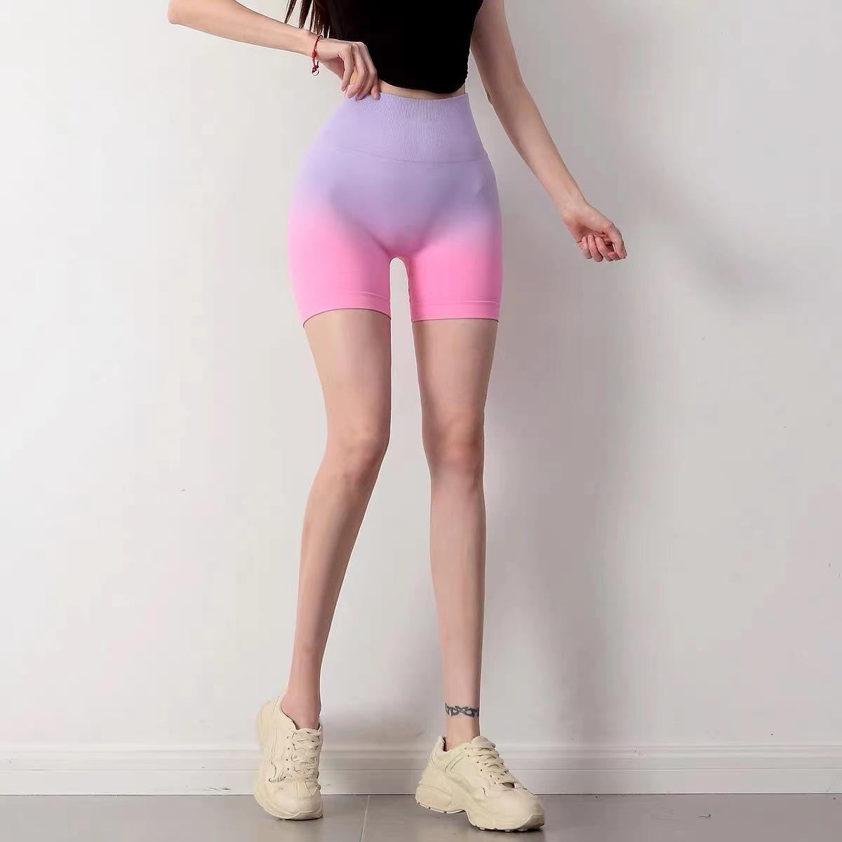 Yoga deportes fitness hierro enrollado pantalones cortos de mujer fondo degradado moda running transfronterizo pantalones de tres piezas