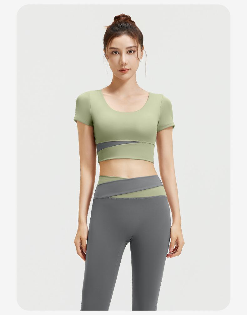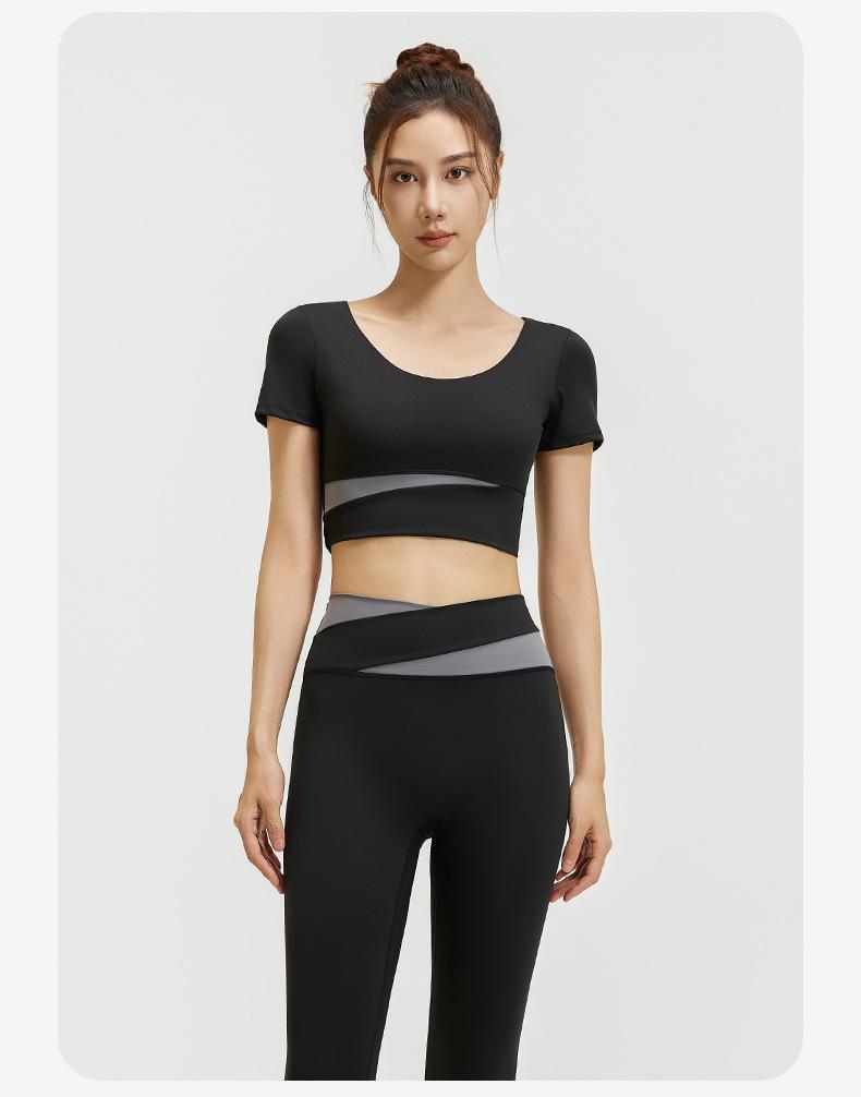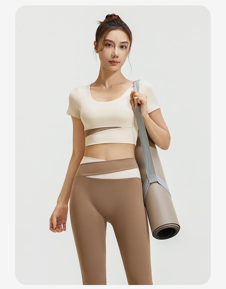 Traje de Yoga de Alta Elasticidad con Combinación de Colores Juyi Hall Traje de Fitness Adelgazante de Verano para Mujer Traje Deportivo sin Marcas para Mujer
