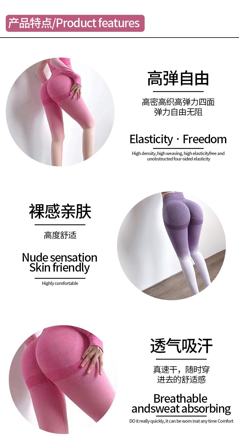 Pantalones de yoga con gradiente sin costuras transfronterizos europeos y americanos, cintura alta, transpirables, elásticos, para deportes al aire libre, ajustados y deportivos