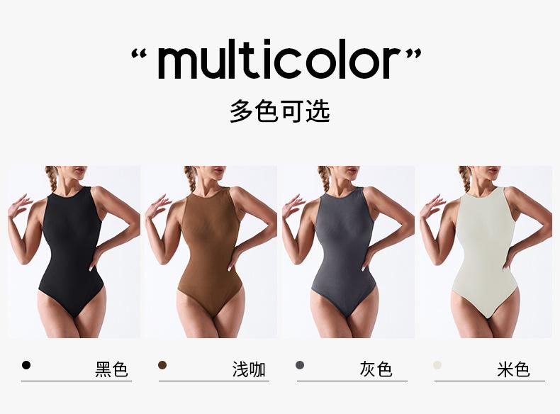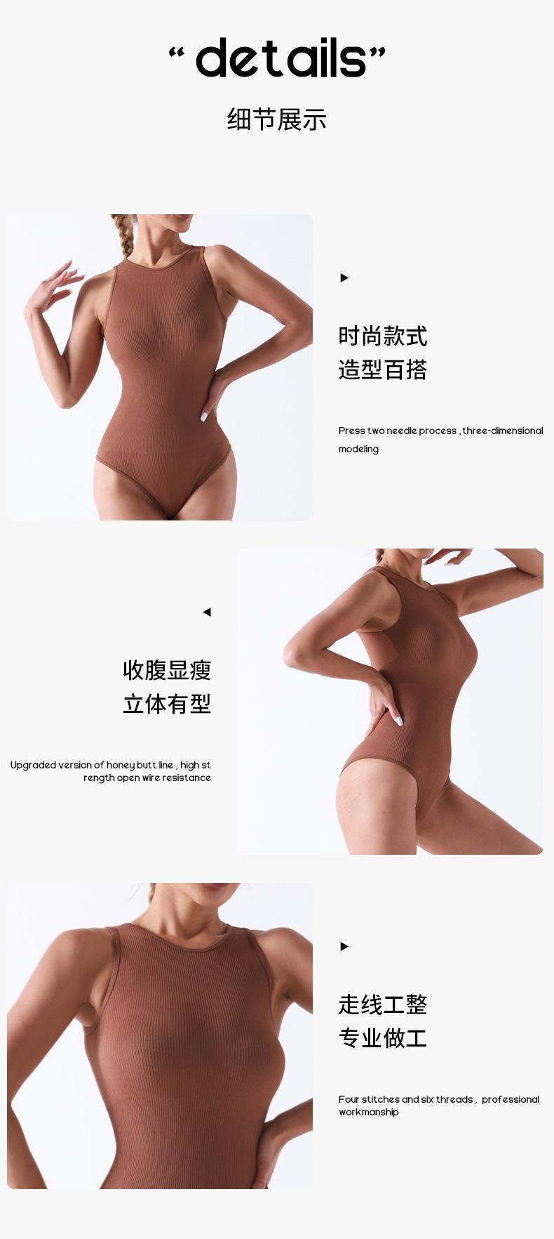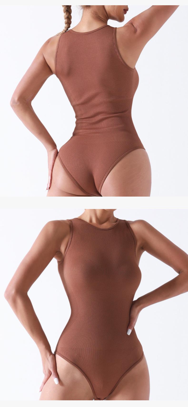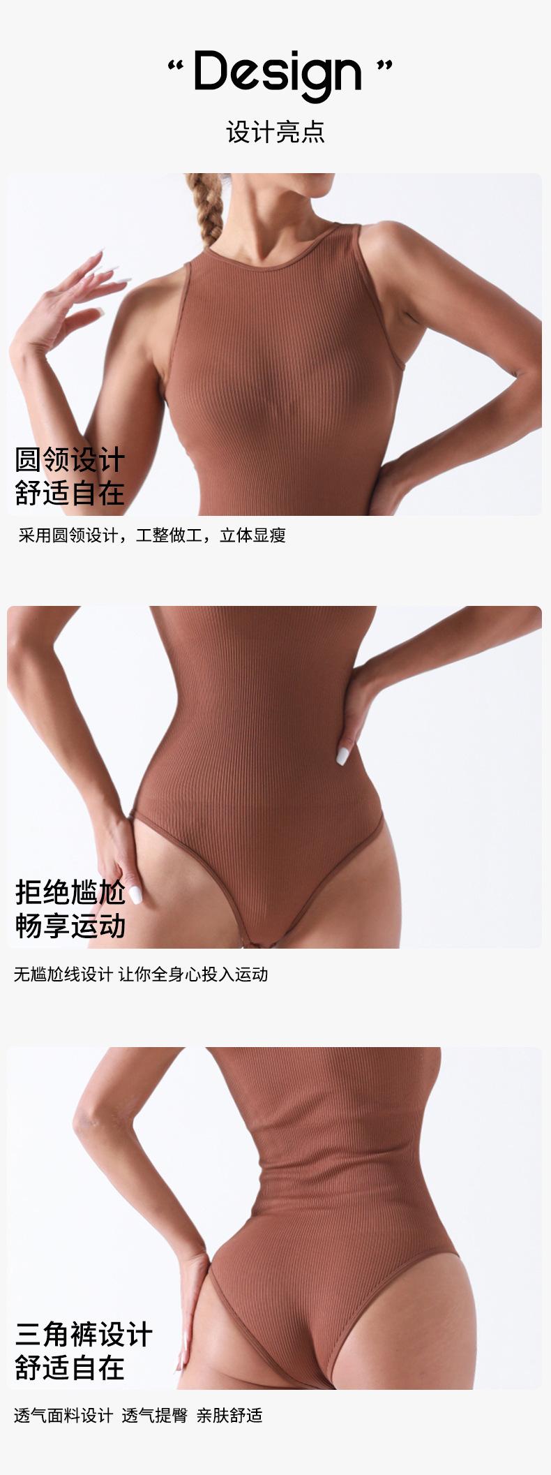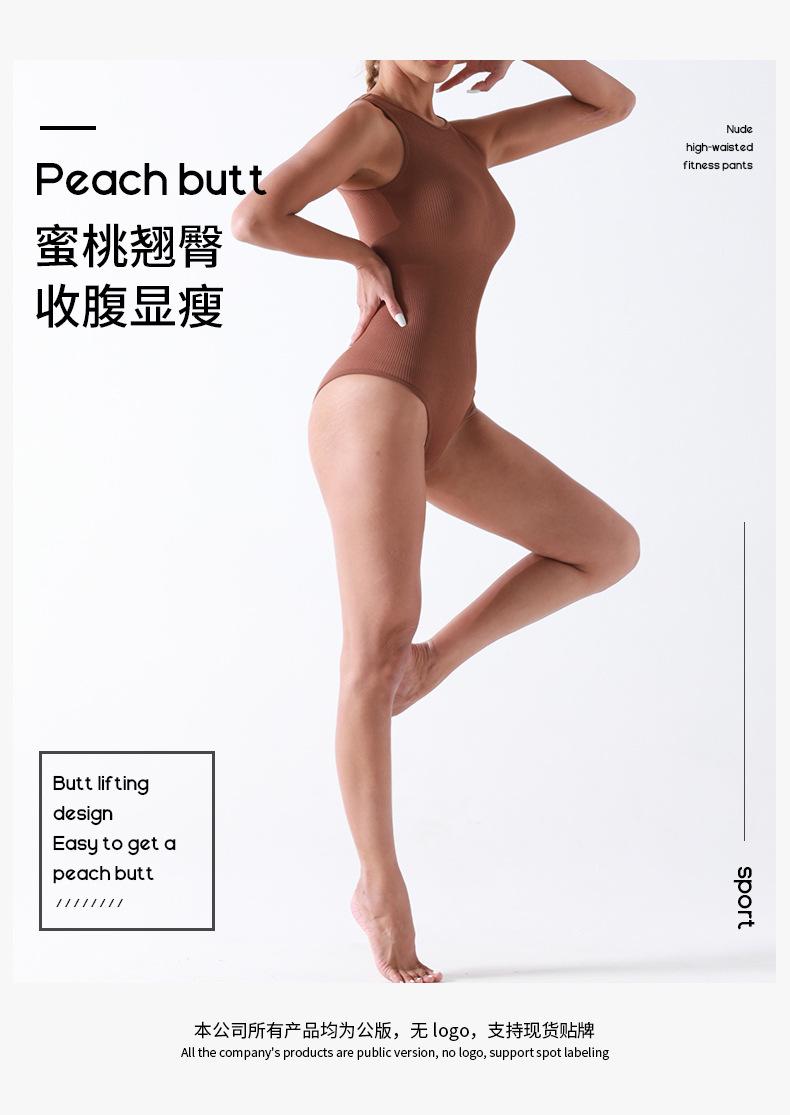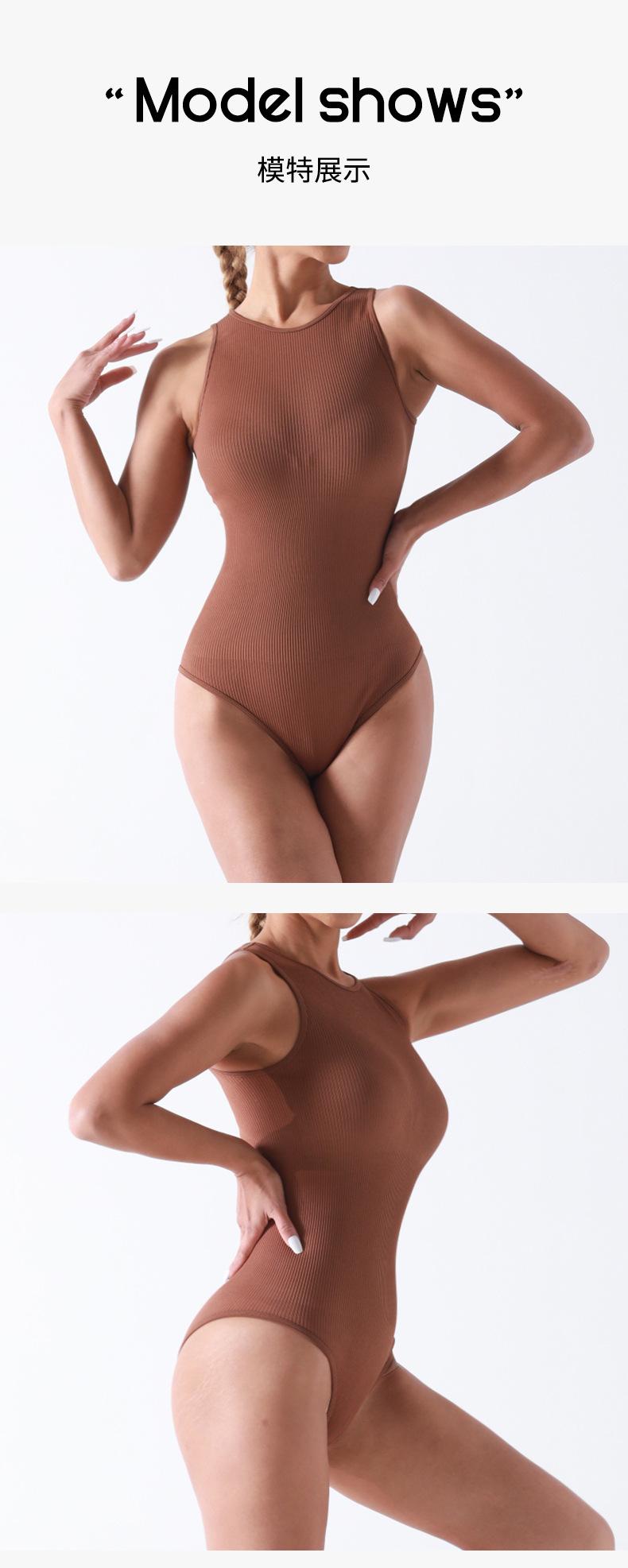 Traje de Yoga de Una Pieza de Diseño Sin Costuras Europeo y Americano Sin Mangas con Entrepierna Abierta Faja Moldeadora Entrenamiento Fitness Top de Yoga Mono