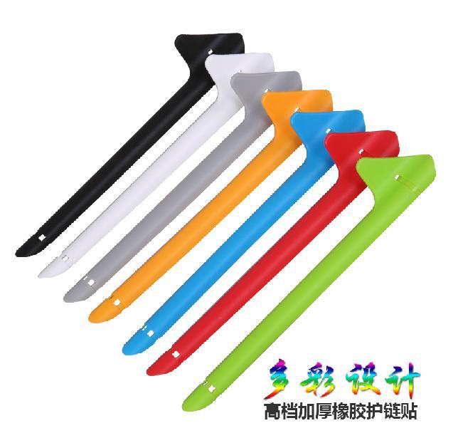 El protector de cadena de goma necesita ser fijado con una brida o un alambre delgado. Este protector de cadena es fácil de limpiar y se puede usar repetidamente, lo cual es más duradero.