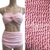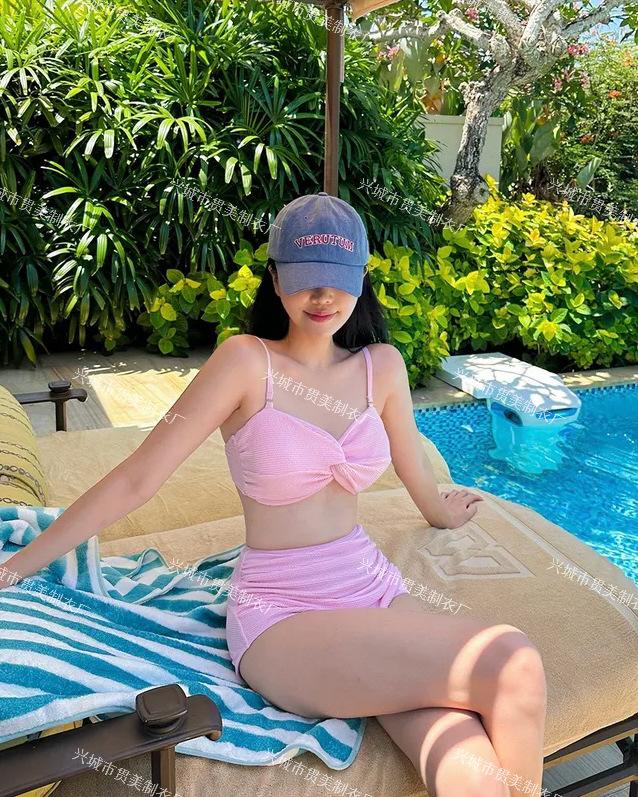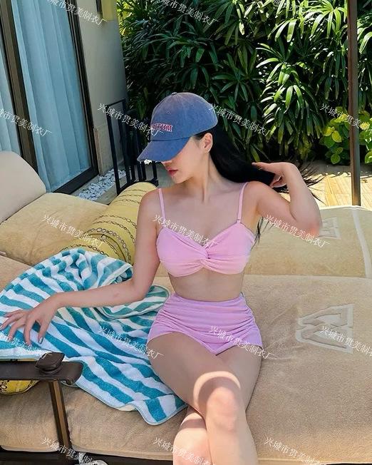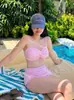 Oferta especial] Nuevo traje de baño de color liso con parte superior de tubo para aguas termales, bikini para mujer, traje de baño de playa sexy con abertura y cintura alta adelgazante