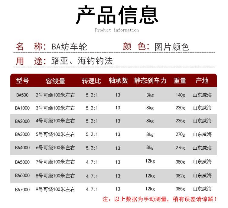 Rueda de pesca de copa de alambre de metal BA, rueda giratoria, carrete de pesca de 13 ejes, rueda de pesca de mar, rueda de caña de mar, rueda de pesca de roca, rueda de carretera, equipo de pesca de rueda asiática