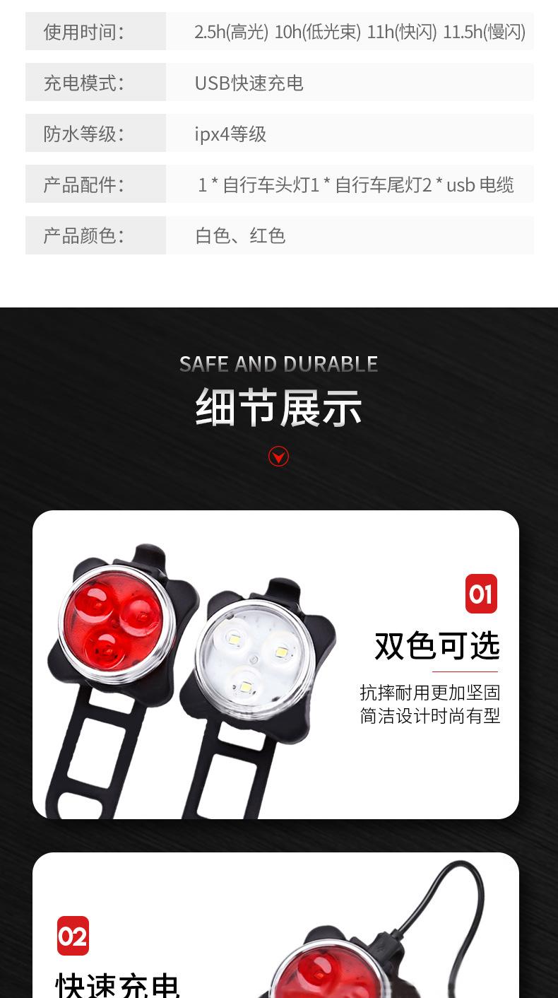 Luz de bicicleta SB, modo de 4 velocidades, aleación de aluminio + plástico de ingeniería, duración de la batería de hasta 4 horas, se puede equipar con un banco de energía móvil para una duración continua de la batería, la última luz de 15 años, gran cantidad y precio más favorable. Número de producto: HJ-030 Color: rojo y blanco Perlas de la lámpara: 3 LED Material de la lámpara: aleación de aluminio y plástico de ingeniería Embalaje: exquisito embalaje de plástico resistente a la presión Descripción del producto: Adopte la linterna de emergencia LED de alto brillo de 4 velocidades, carga USB completa, tiempo de descarga continua de aproximadamente 4 horas. Brillo de 160 lúmenes. La vida útil de la lámpara es de aproximadamente 10,000 horas.