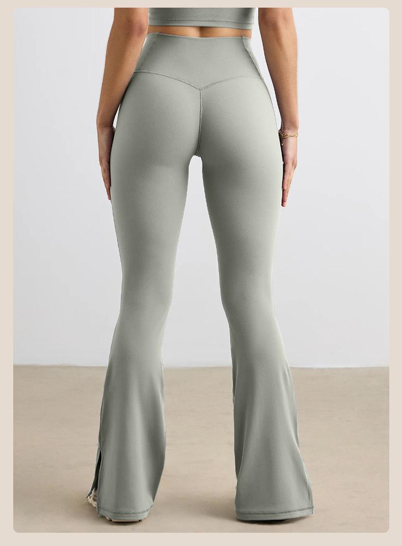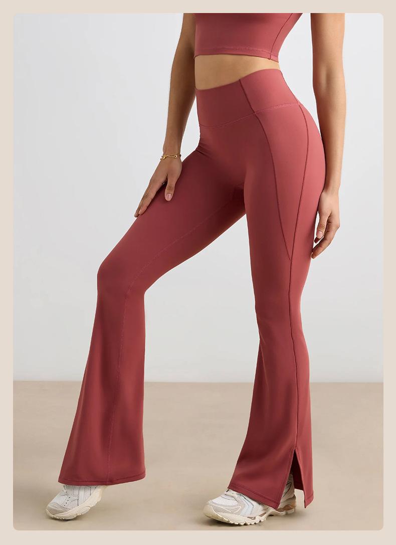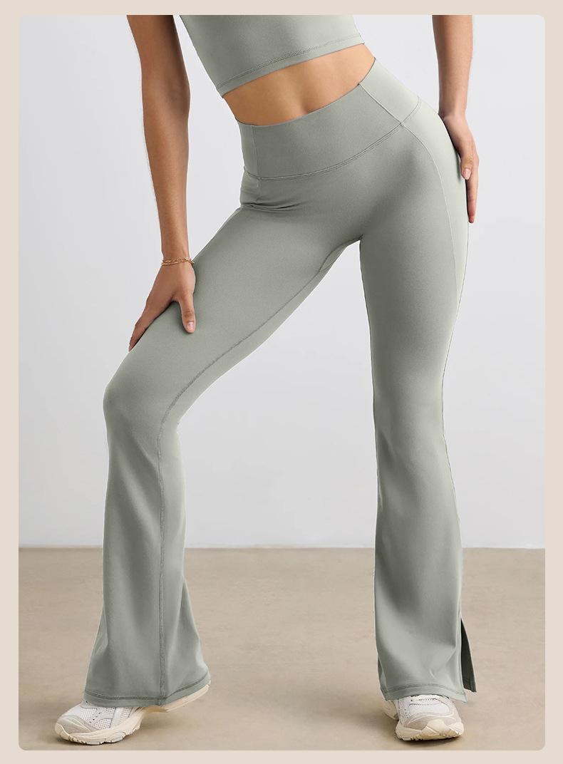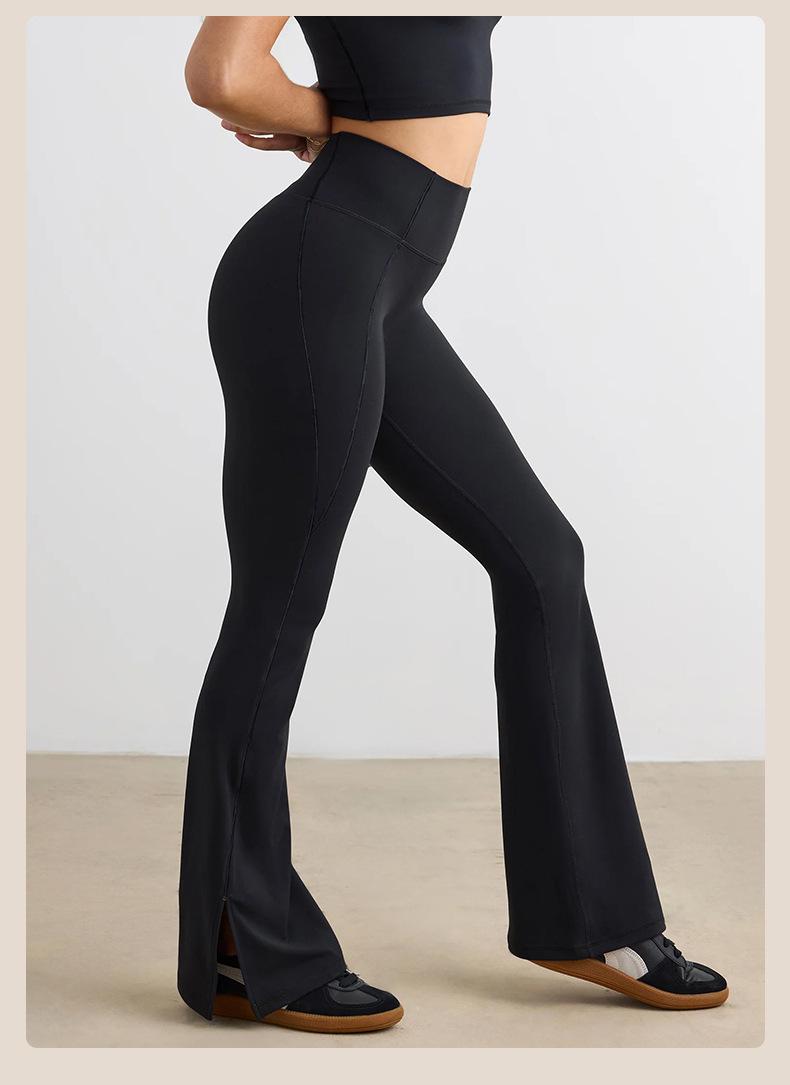 Pantalones Micro de Yoga de Ocio Europeo y Americano para Mujer Cintura Alta Levanta Caderas Deportes Desnudos Pierna Ancha Micropantalones Yoga Acampanados con Abertura