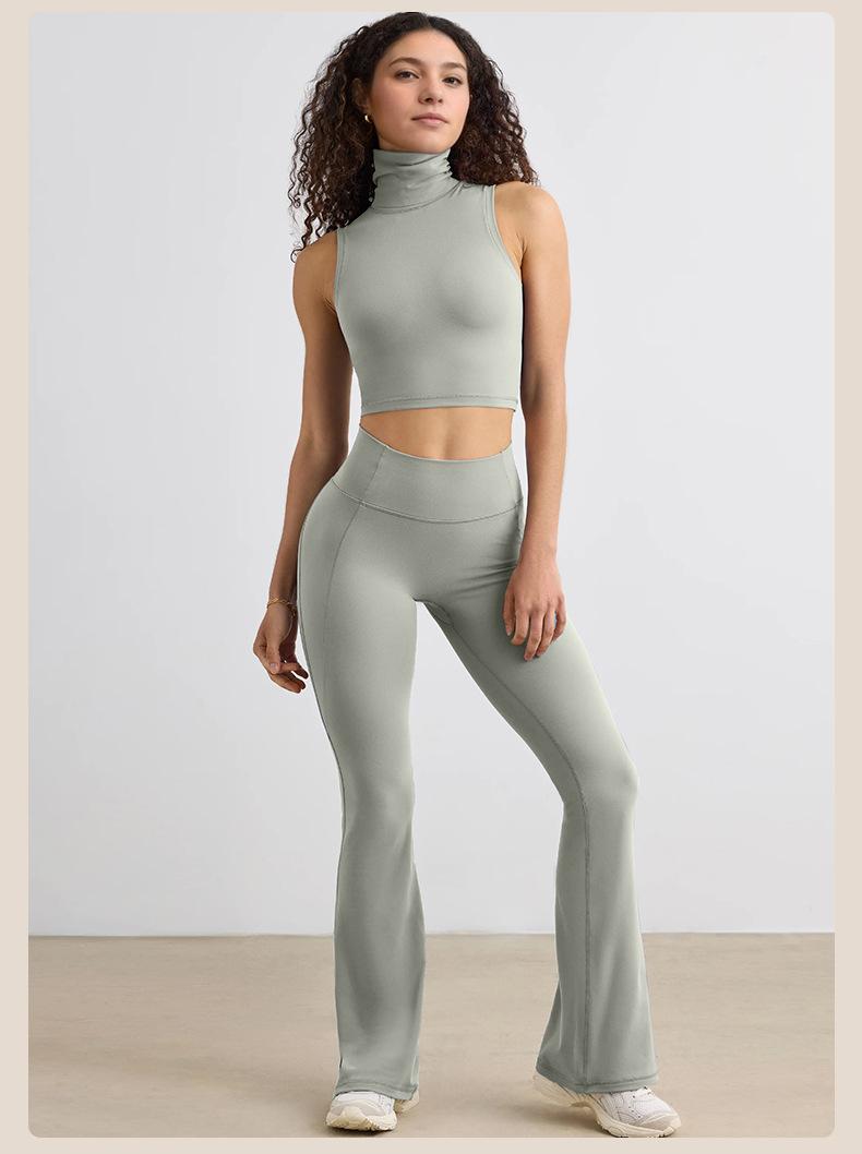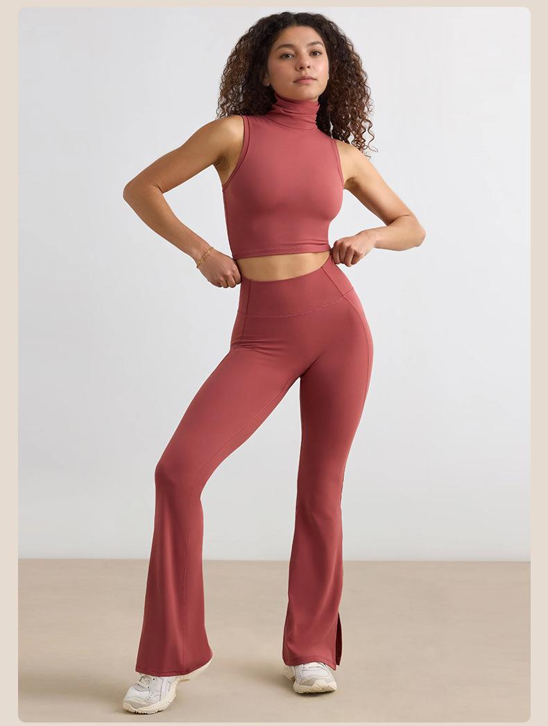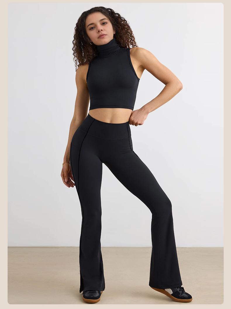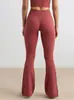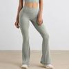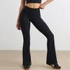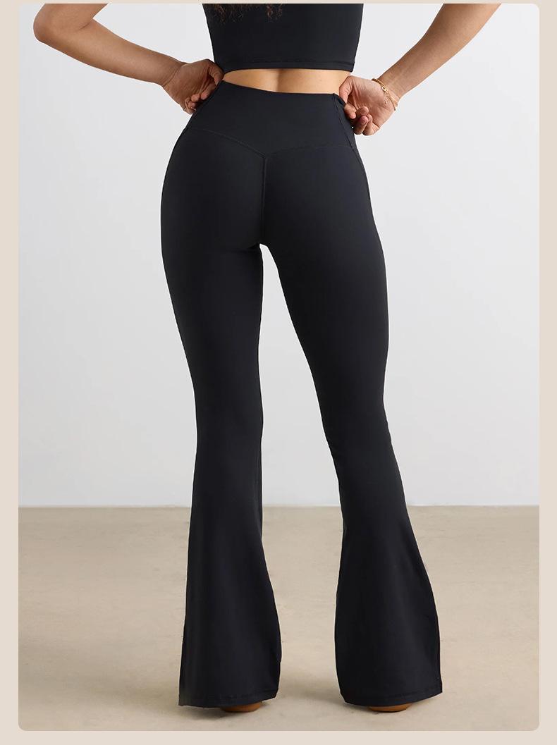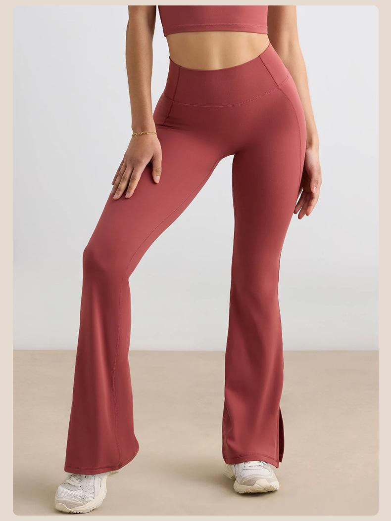 Pantalones Micro de Yoga de Ocio Europeo y Americano para Mujer Cintura Alta Levanta Caderas Deportes Desnudos Pierna Ancha Micropantalones Yoga Acampanados con Abertura