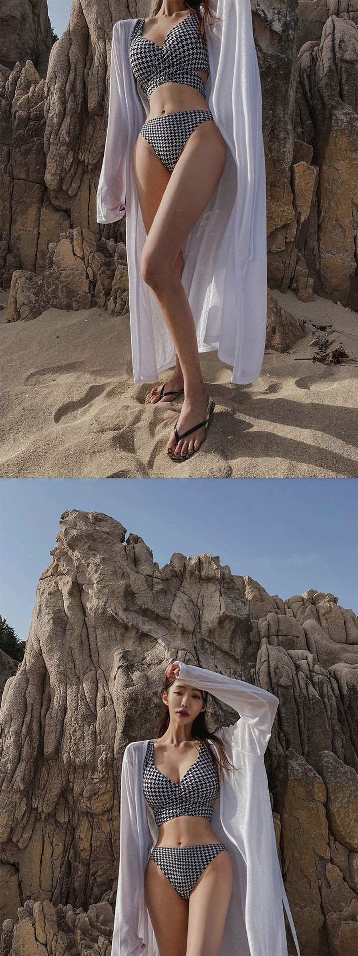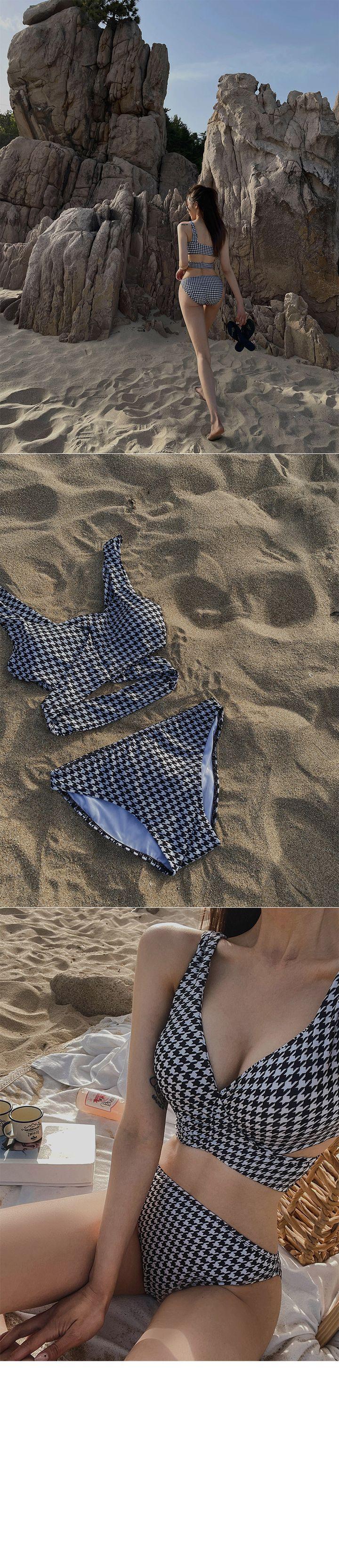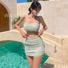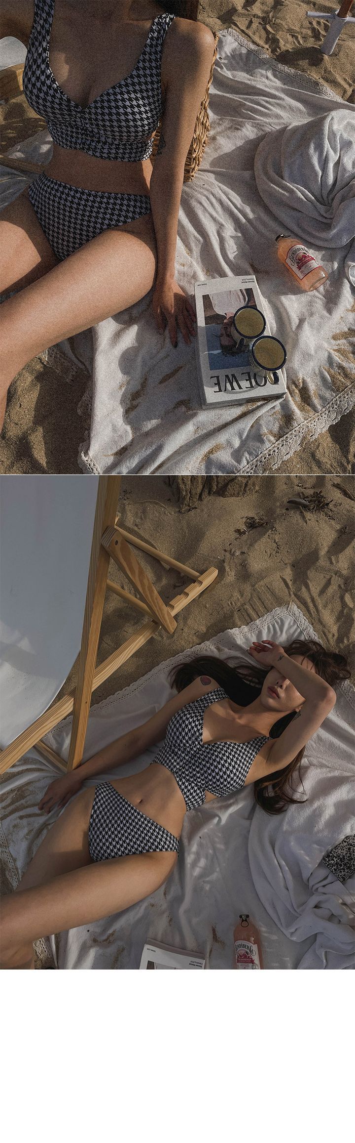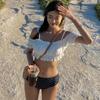 Suministro transfronterizo Estilo coreano niña fresco pata de gallo sexy con cordones adelgazante bikini dividido traje de baño para vacaciones en aguas termales