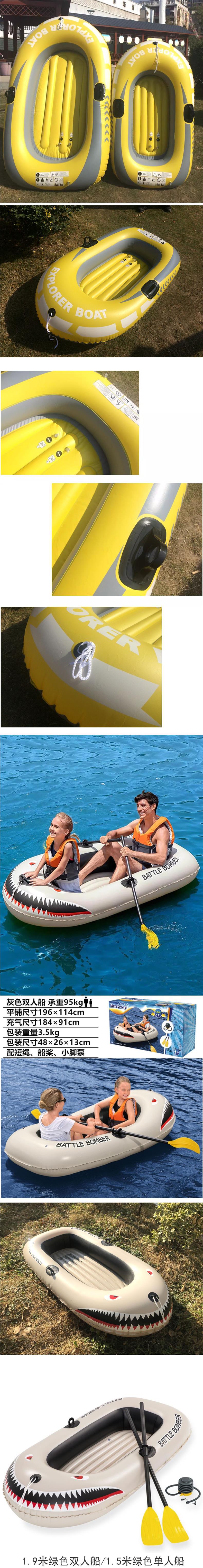 1.9m shark double boat + paddle + yellow foot pump 1 adult and 1 child