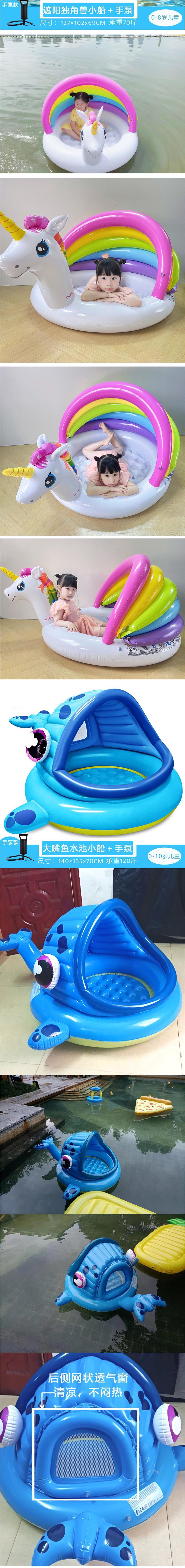 [unicorn shade pool] inflatable bottom + household electric pump, length 127, width 102, height 69cm
