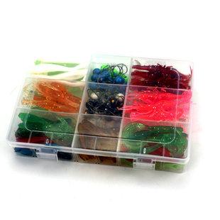 Nuevo juego recomendado de cebo blando con anzuelo de cabeza de plomo KIT130, caja boutique, señuelo de cola rizada de gusano de la harina, equipo de pesca al por mayor