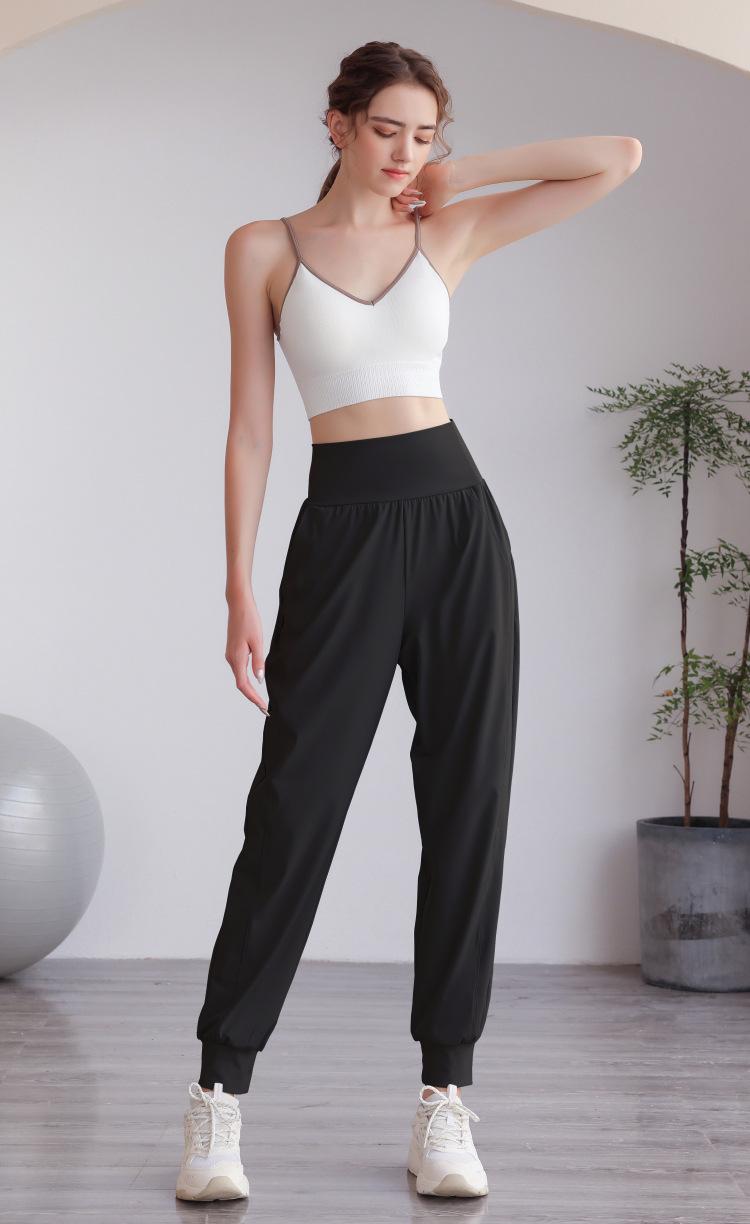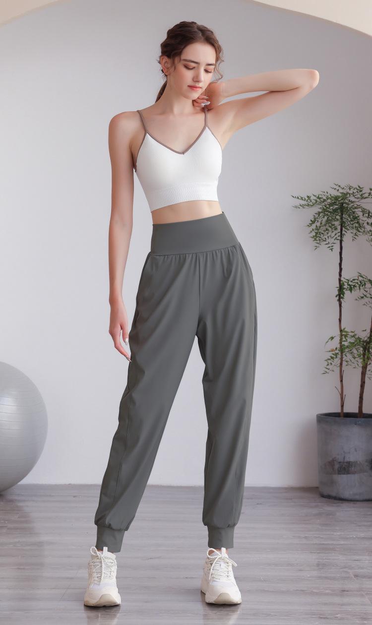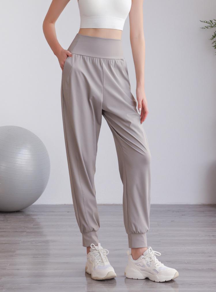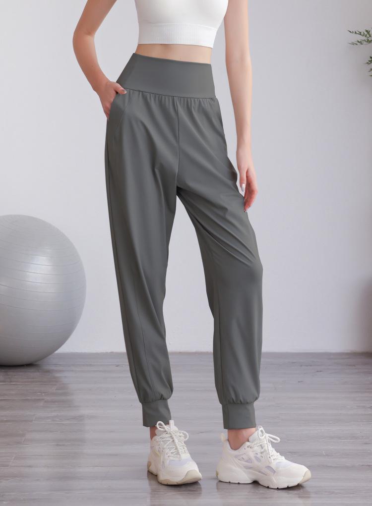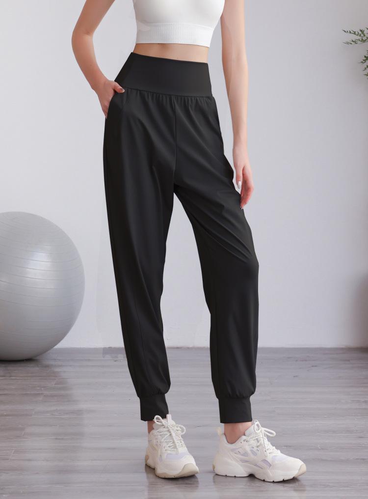 Pantalones deportivos de cintura alta de nailon para otoño e invierno, pantalones deportivos holgados, transpirables e informales para mujer, pantalones largos para correr, entrenar y yoga.