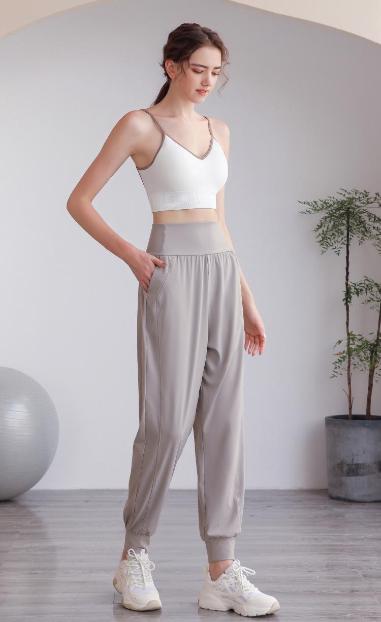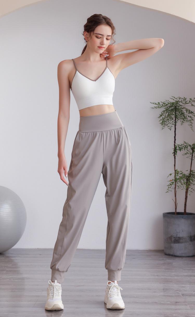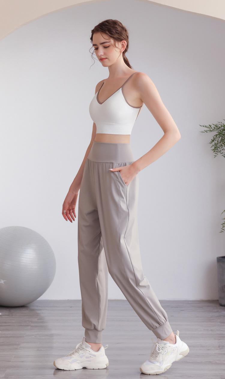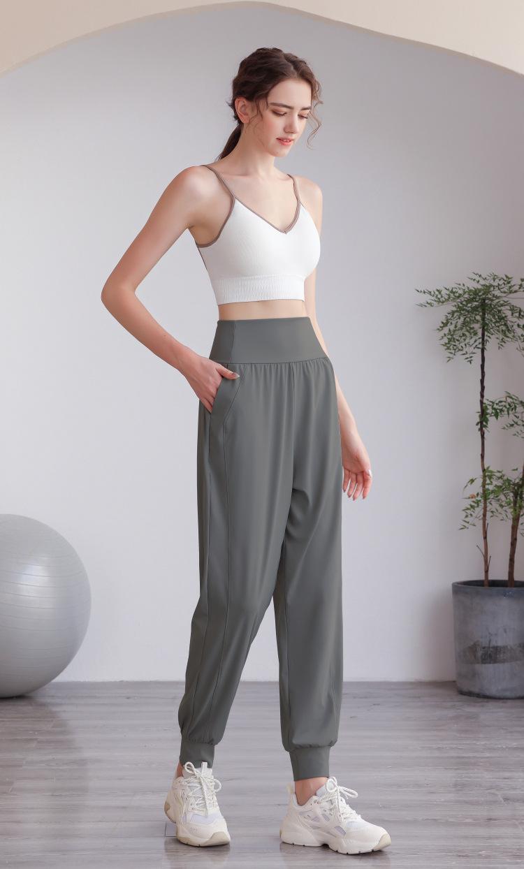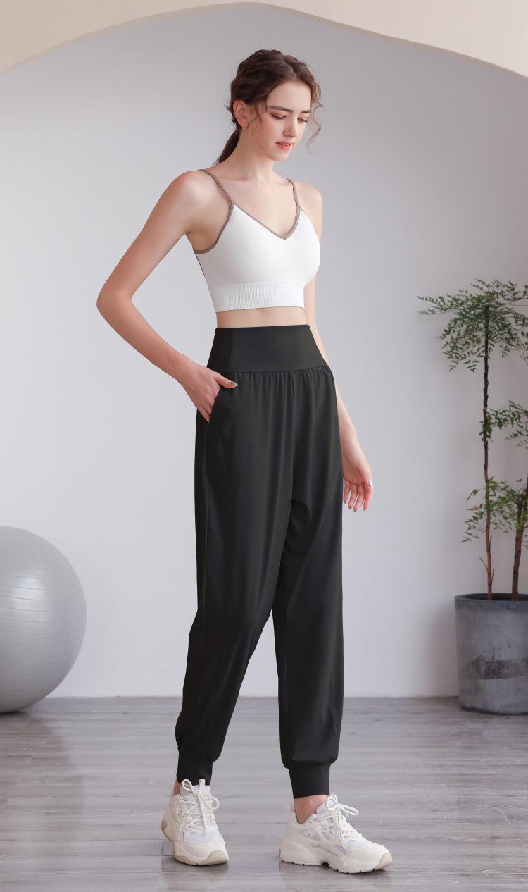 Pantalones deportivos de cintura alta de nailon para otoño e invierno, pantalones deportivos holgados, transpirables e informales para mujer, pantalones largos para correr, entrenar y yoga.