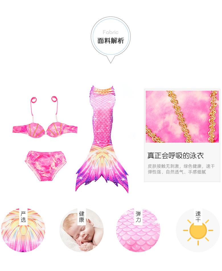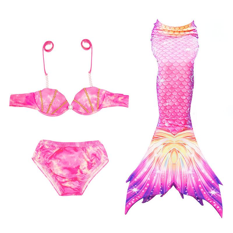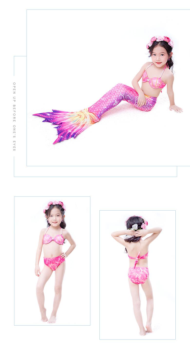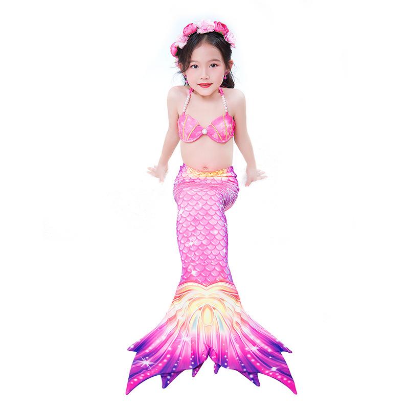 Traje de baño de sirena para niñas, conjunto de bikini de tres piezas con explosiones europeas y americanas, traje de baño de princesa sirena para niñas
