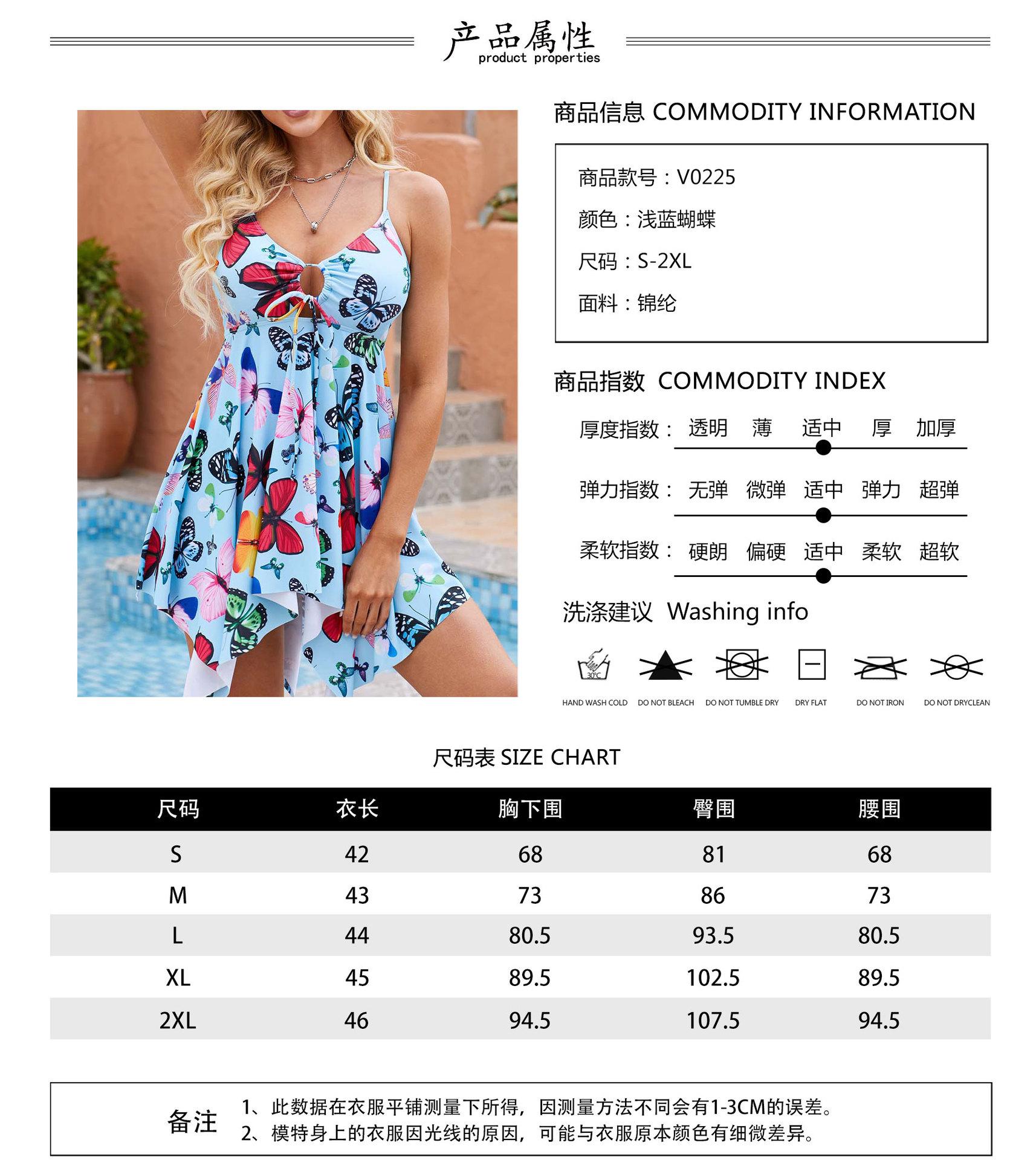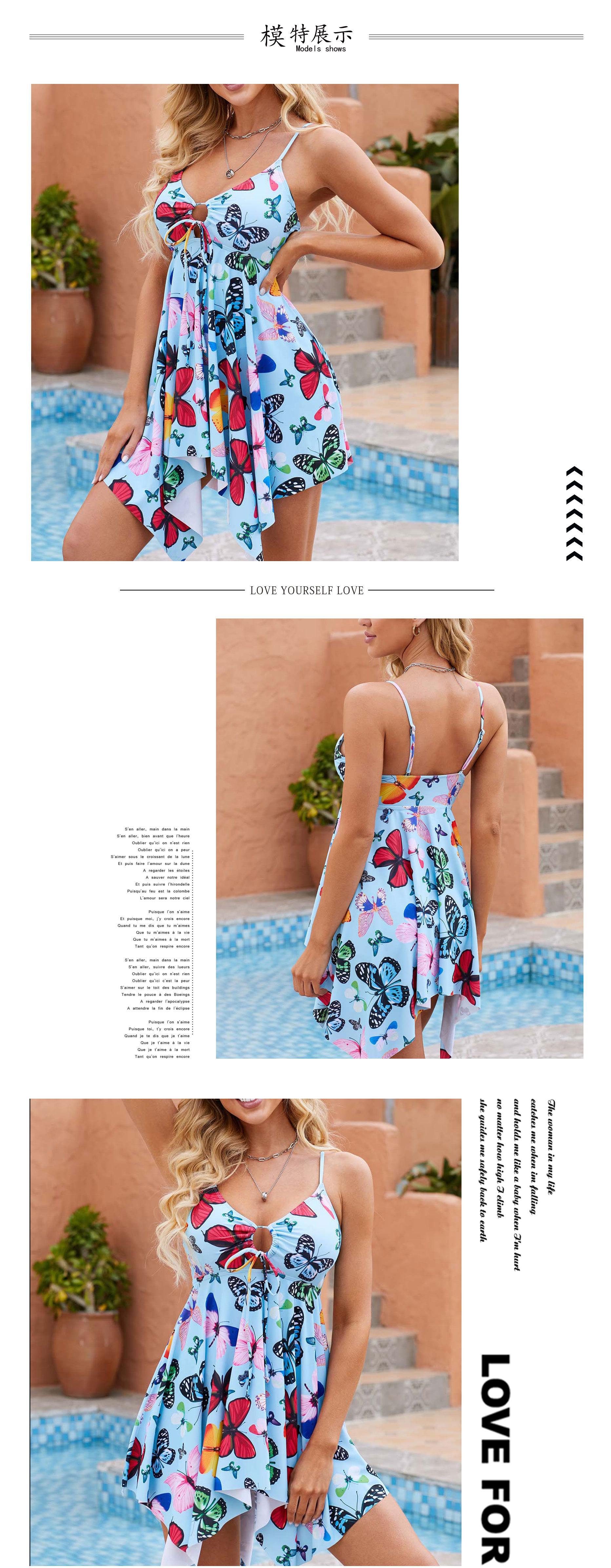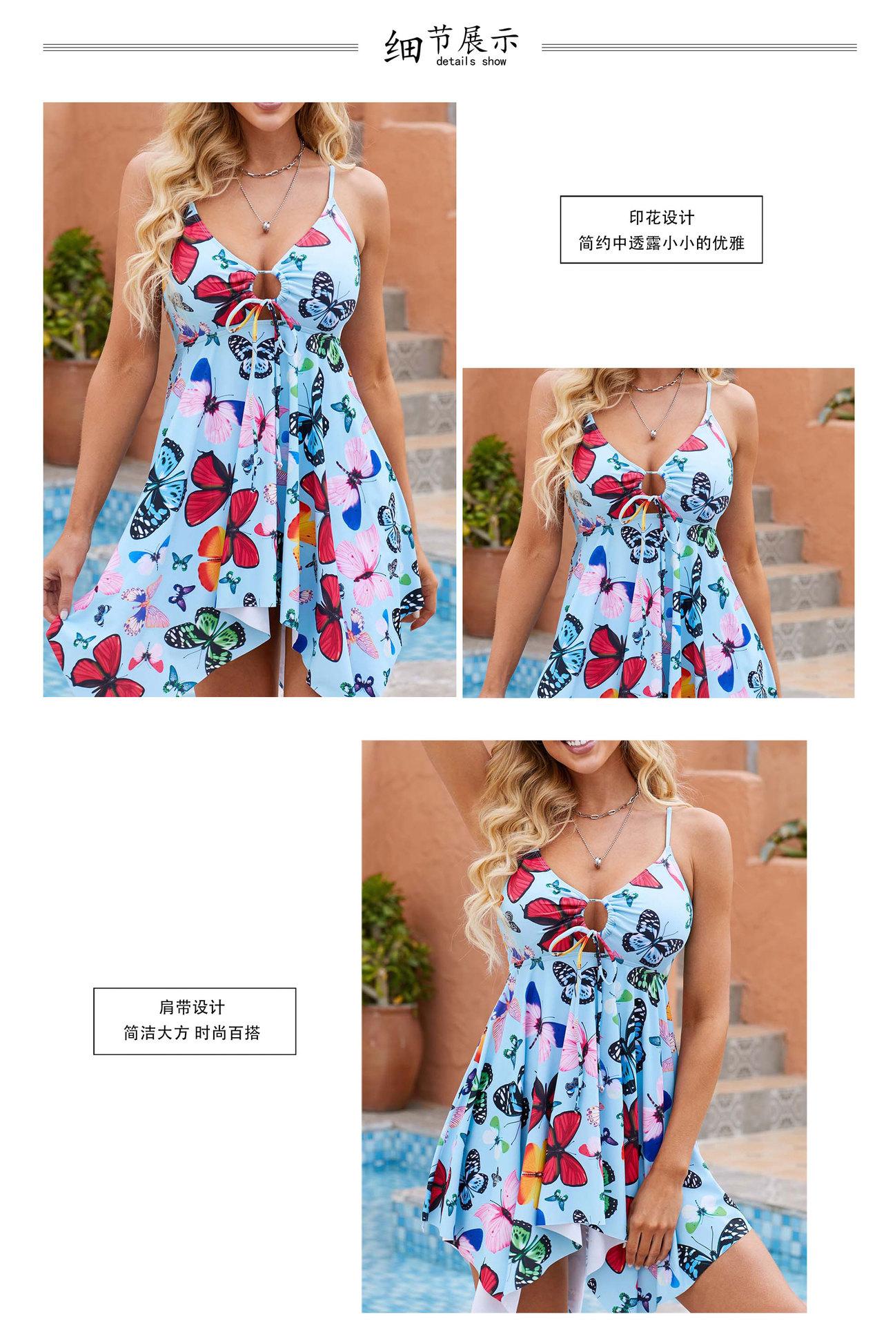 2021 Nuevo Traje de Baño Separado Falda Mujer Pecho Lazo Tirantes Estampado Moda Traje de Baño Bikini Alta Elasticidad