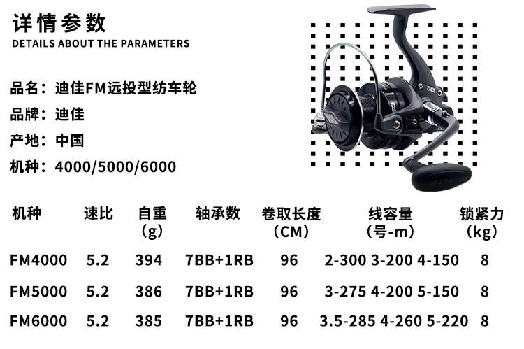 Nueva rueda de lanzamiento de larga distancia Dijia, serie FM, rueda giratoria, rueda de pesca, rueda de pesca de acero inoxidable con freno de carbono totalmente metálico, rueda de caña de mar