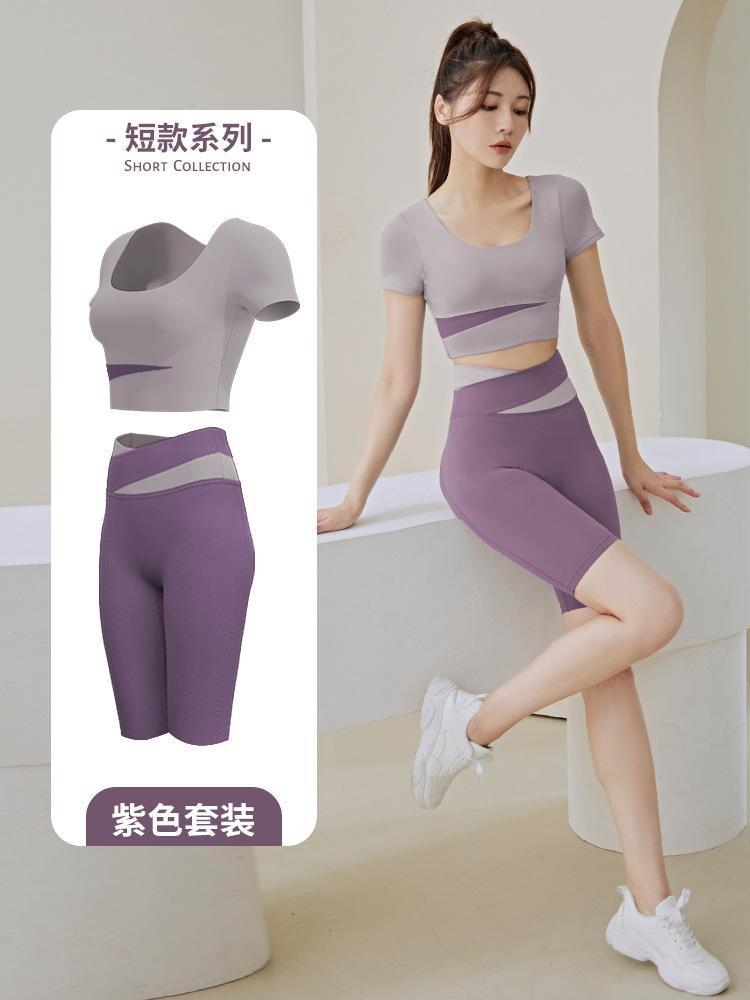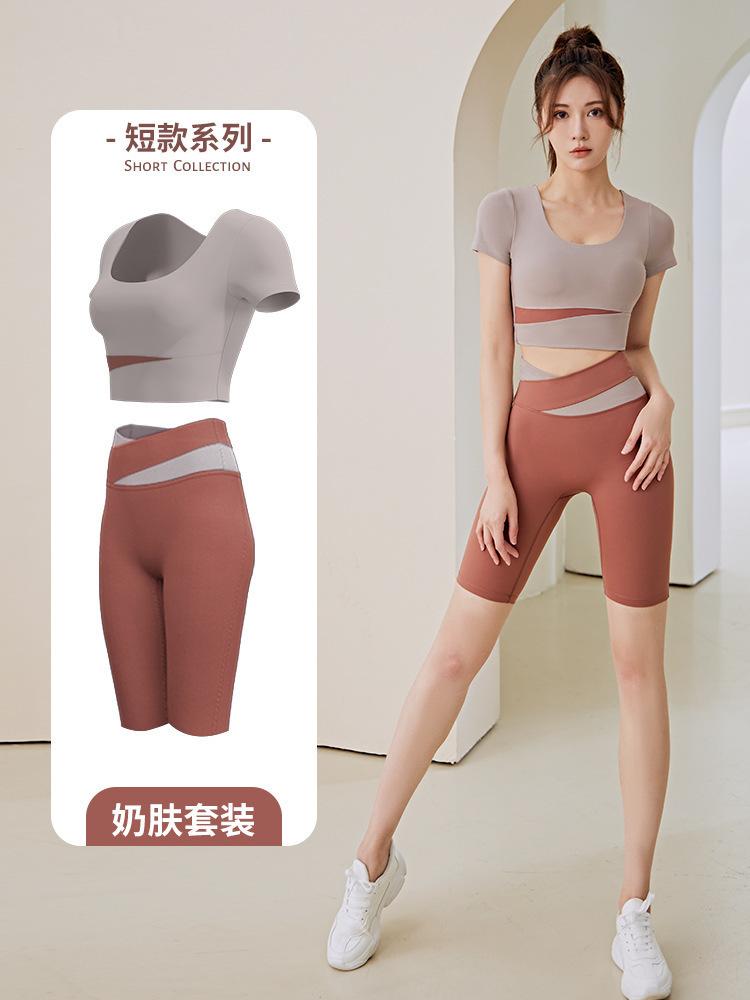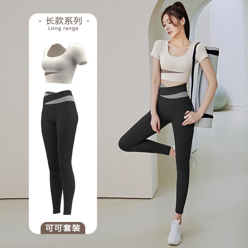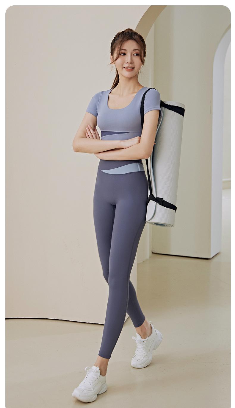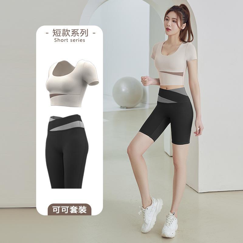 Traje deportivo de verano con bloques de color, alta elasticidad, secado rápido, pantalones deportivos que levantan la cadera, ropa para correr, fitness y yoga para mujer.