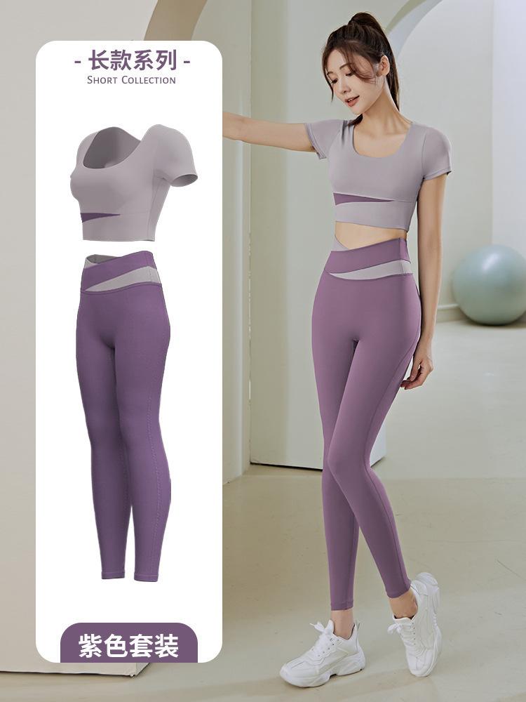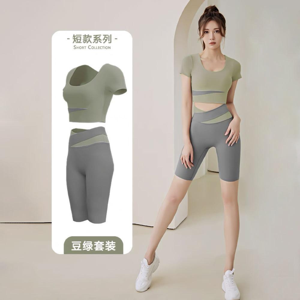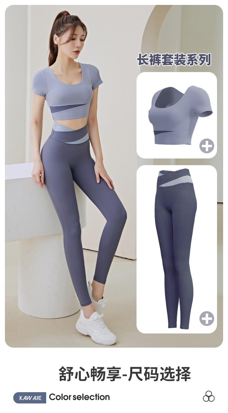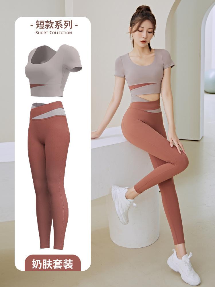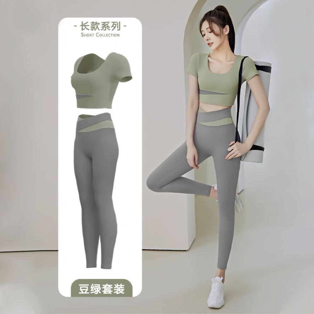 Traje deportivo de verano con bloques de color, alta elasticidad, secado rápido, pantalones deportivos que levantan la cadera, ropa para correr, fitness y yoga para mujer.