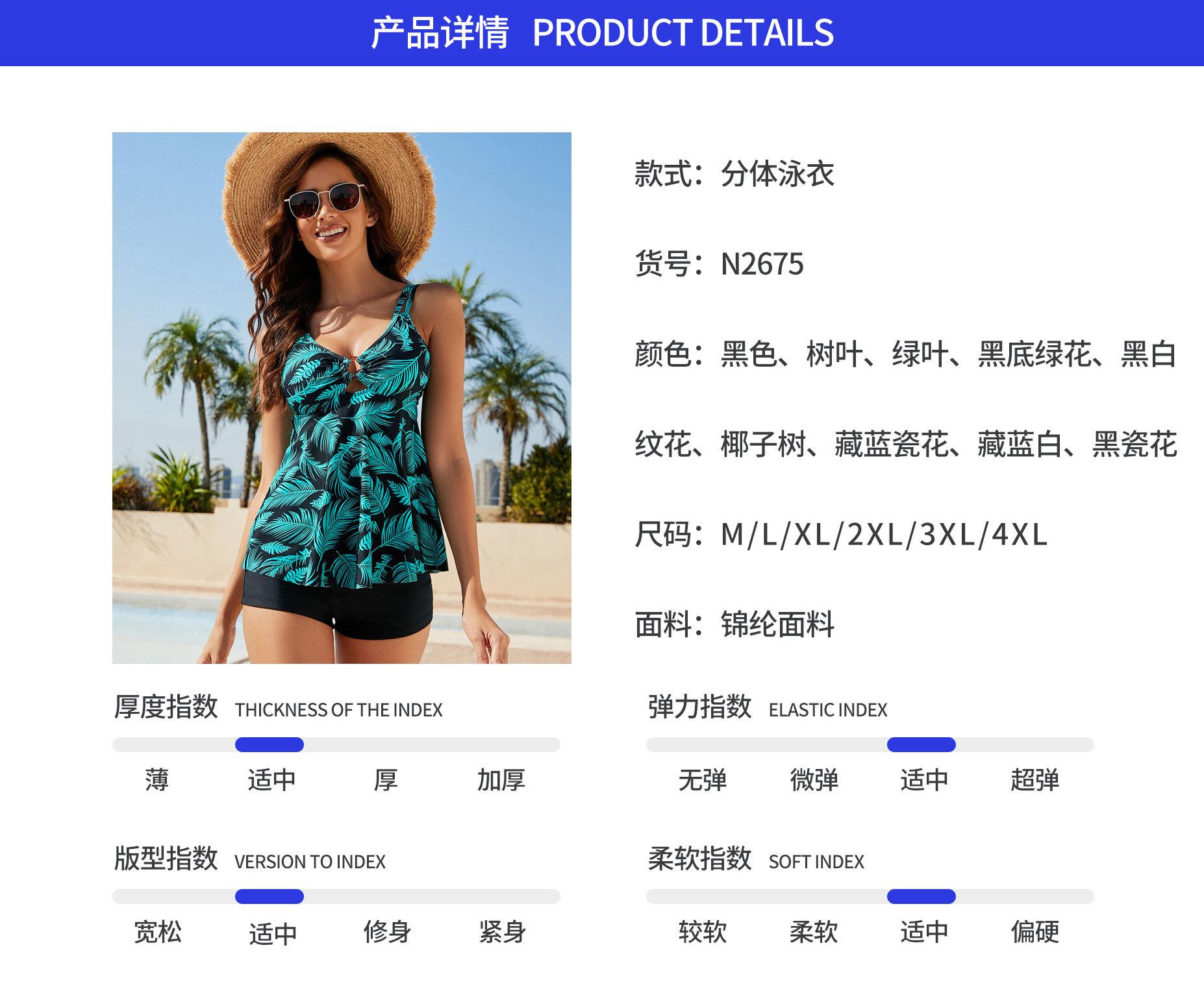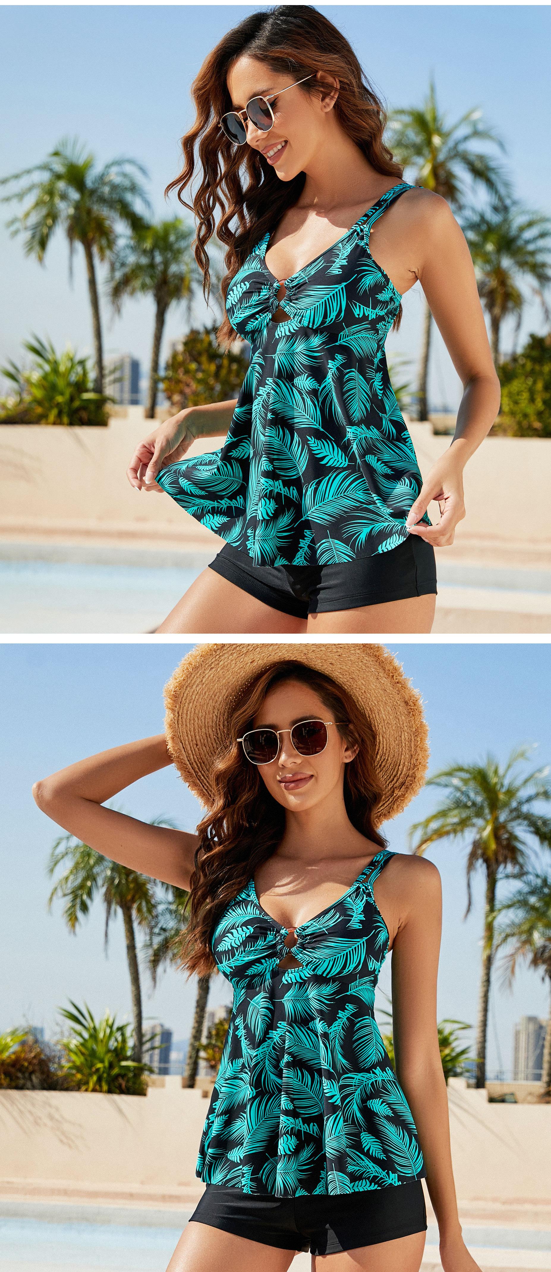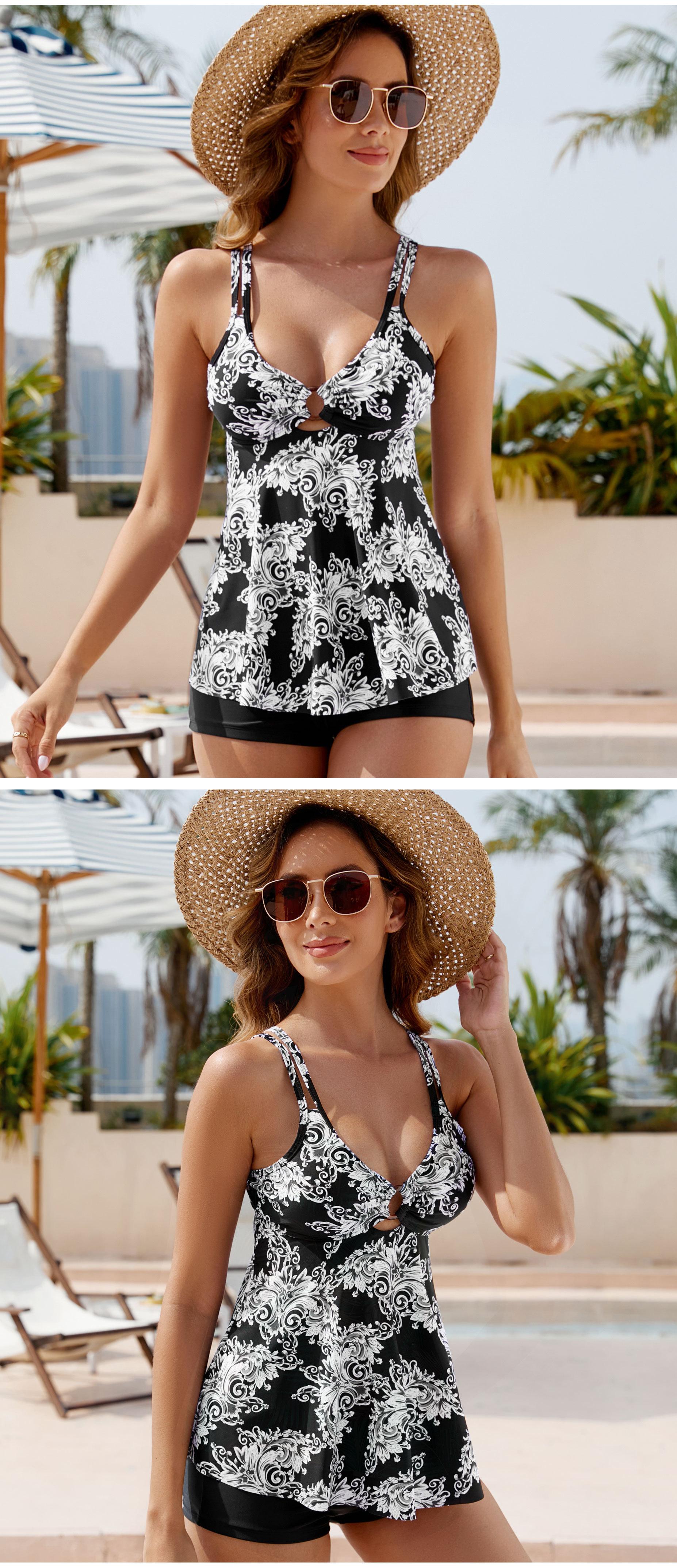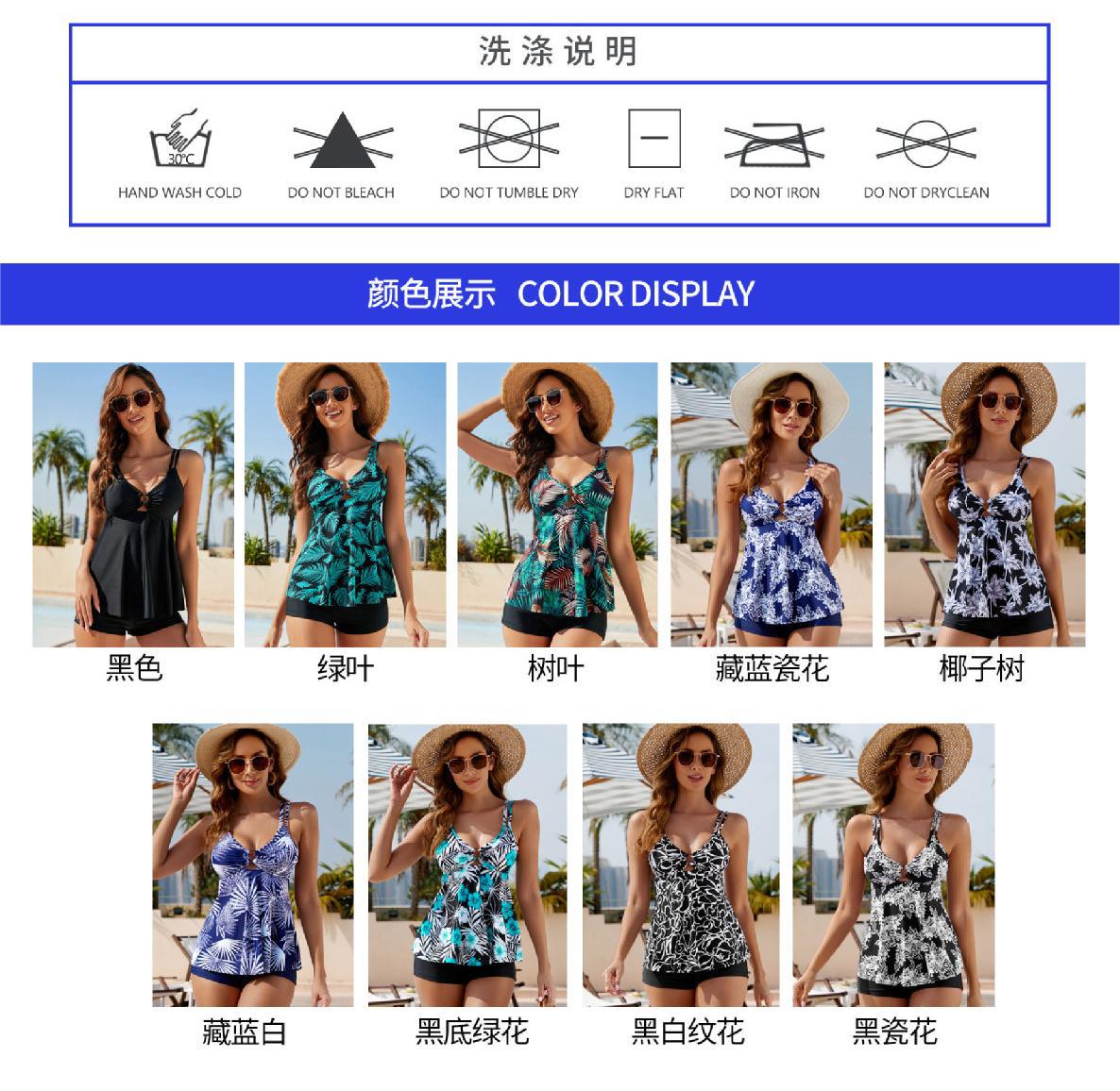 Traje de Baño de Tirantes Estampado Estilo Nuevo Transfronterizo 2025 Falda Traje de Baño Boxer Calzoncillo Look Conservador Adelgazante Tankini Traje de Baño Dividido
