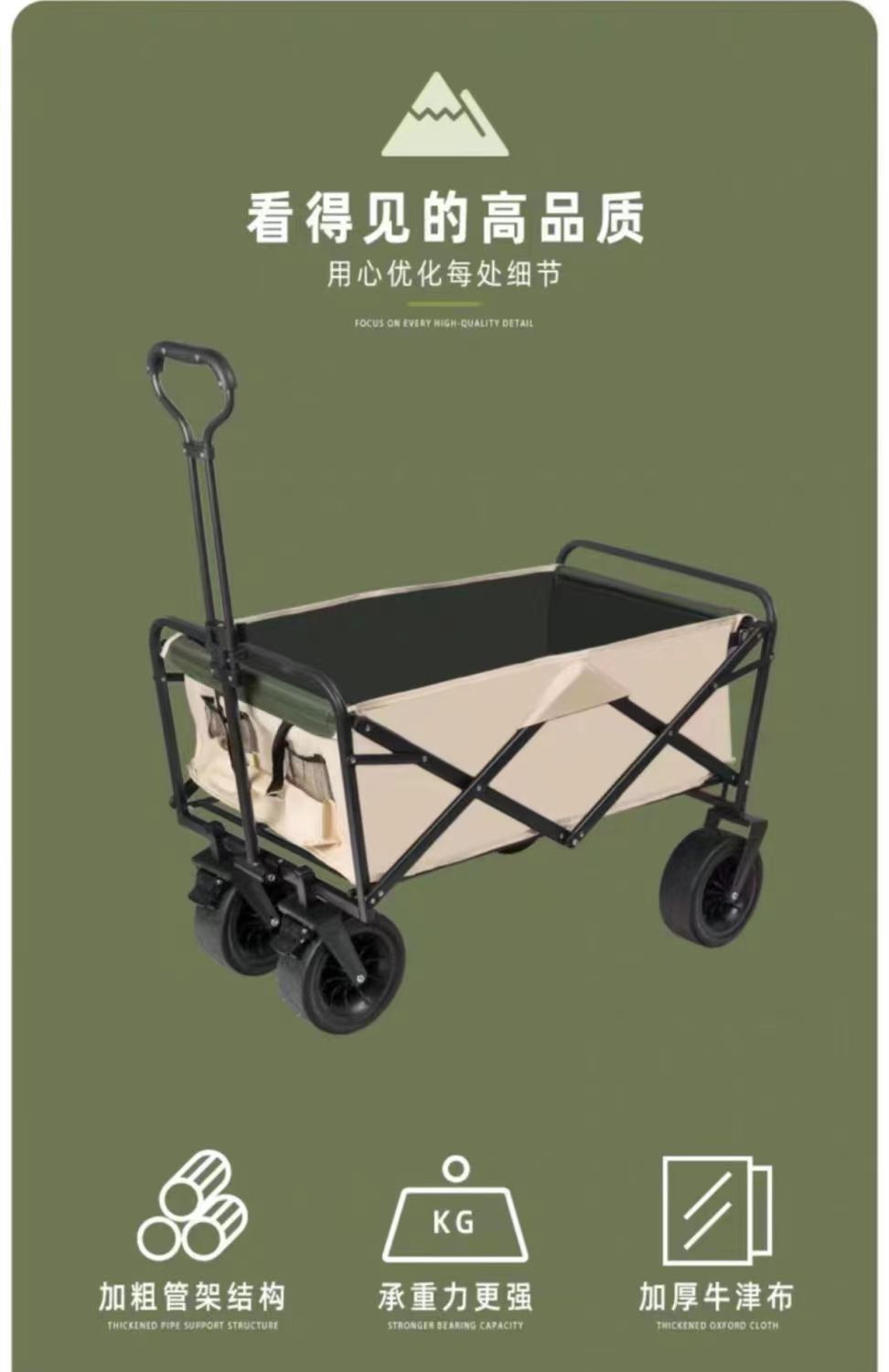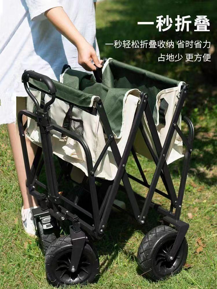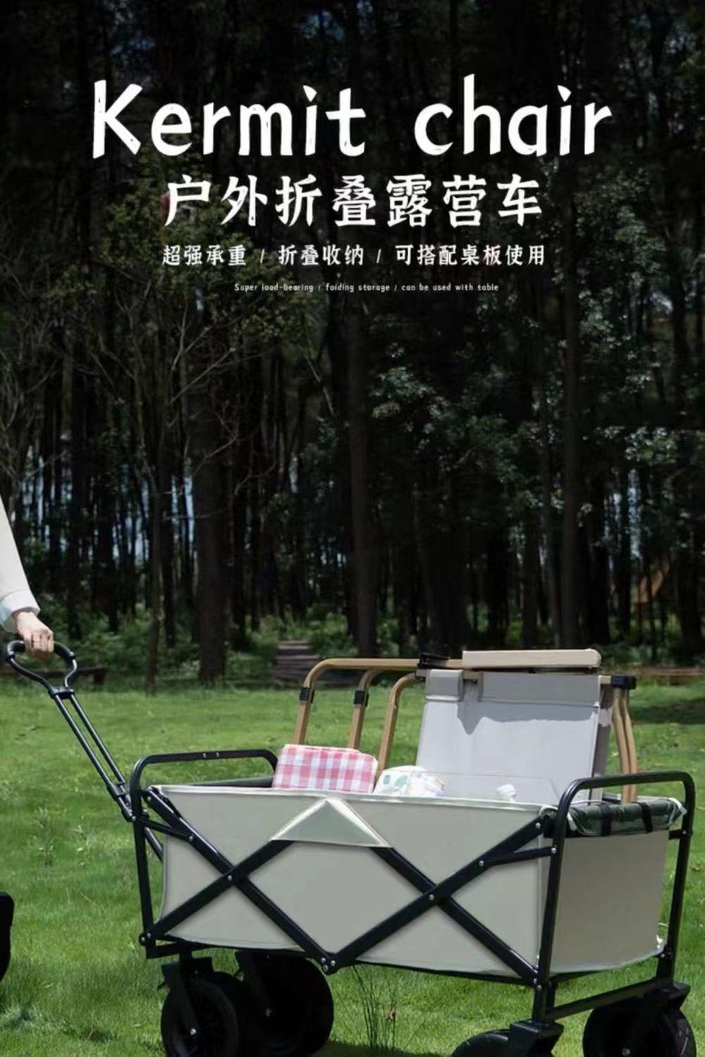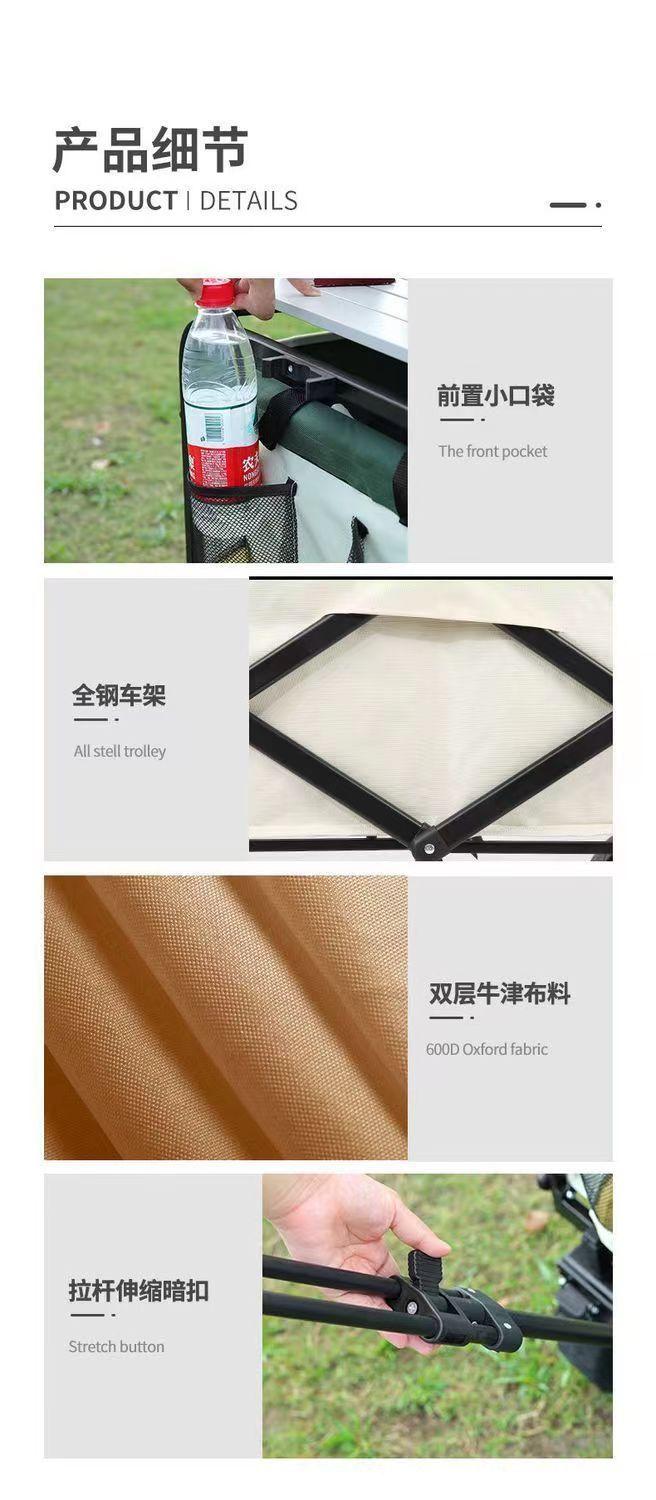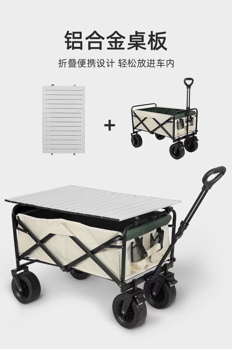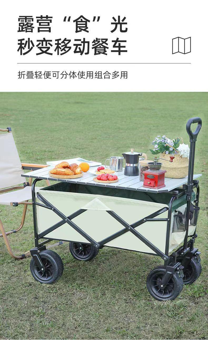 Carro de camping plegable para exteriores, carrito de picnic con empuje manual, remolque de campamento, barra de tracción, carrito de tracción pequeño, mesa, tablero, carro de camping transfronterizo