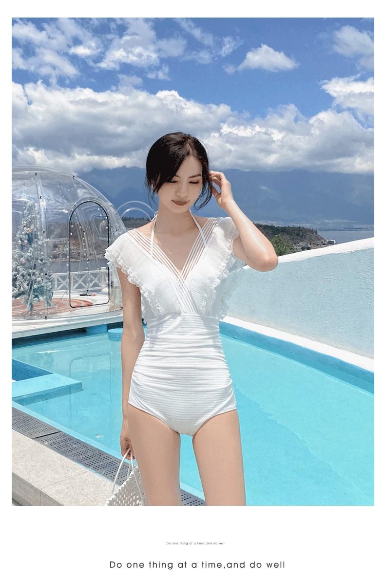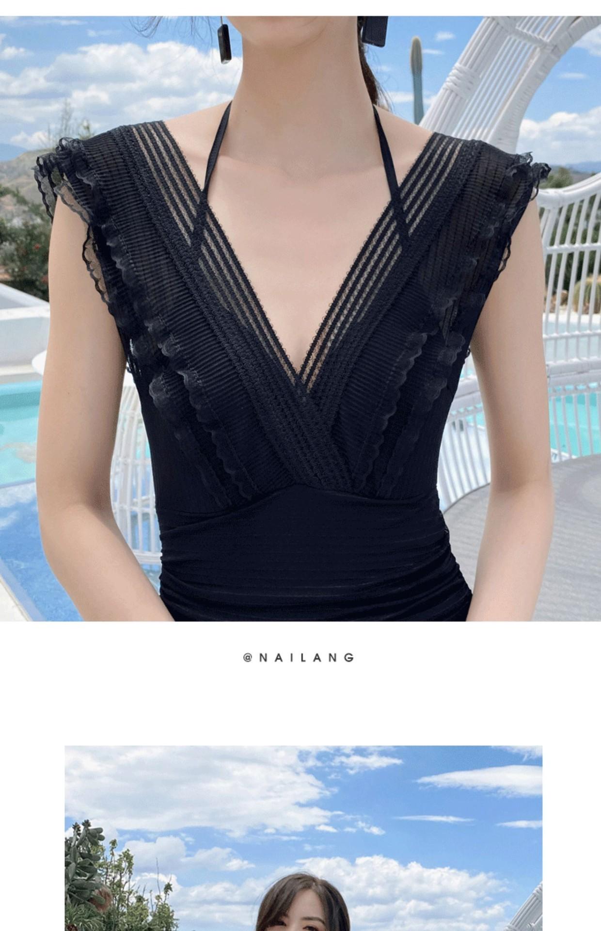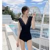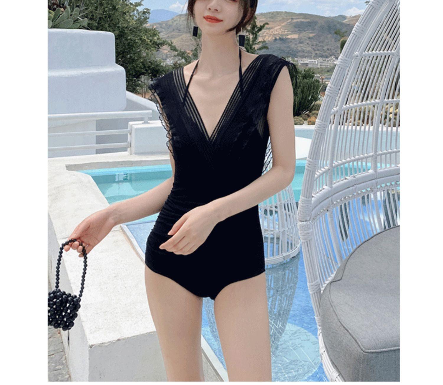 Traje de Baño Entero para Mujer con Pechos Pequeños Fruncido 2025 Nuevo Negro Hada Cubre Vientre Sexy Cuerpo Delgado Moda Traje de Baño para Aguas Termales