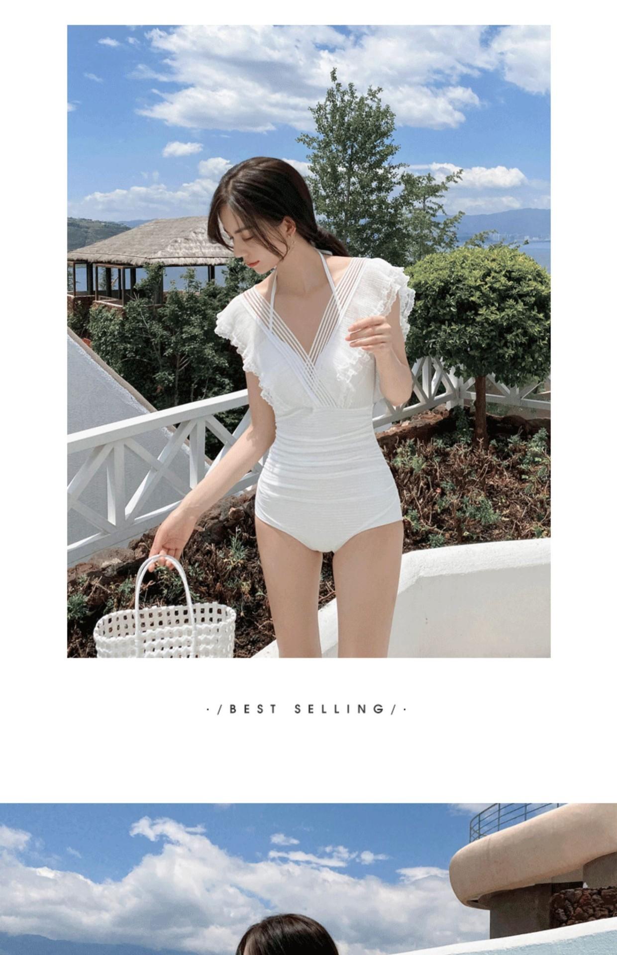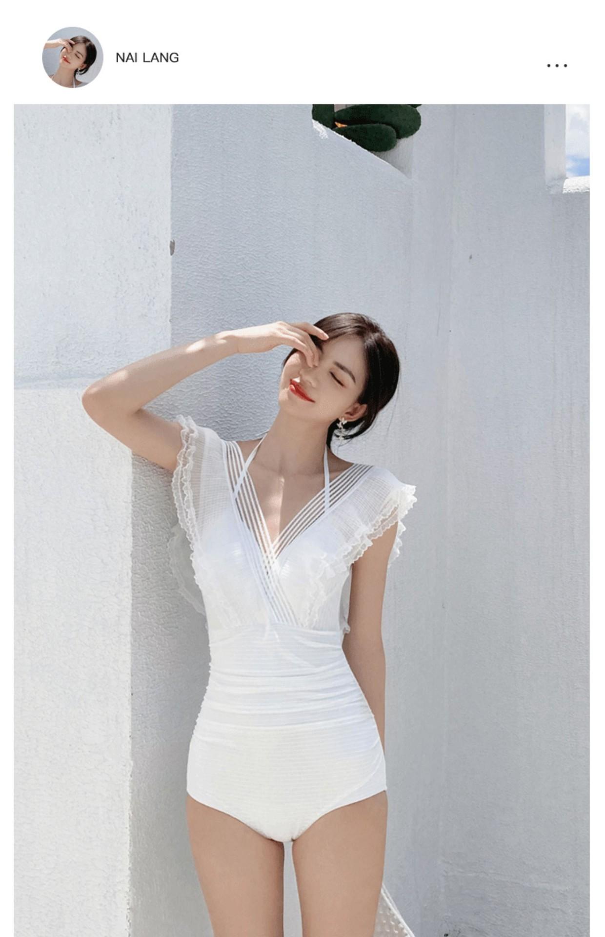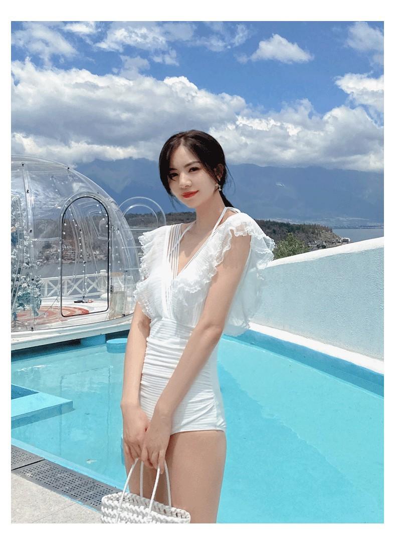 Traje de Baño Entero para Mujer con Pechos Pequeños Fruncido 2025 Nuevo Negro Hada Cubre Vientre Sexy Cuerpo Delgado Moda Traje de Baño para Aguas Termales