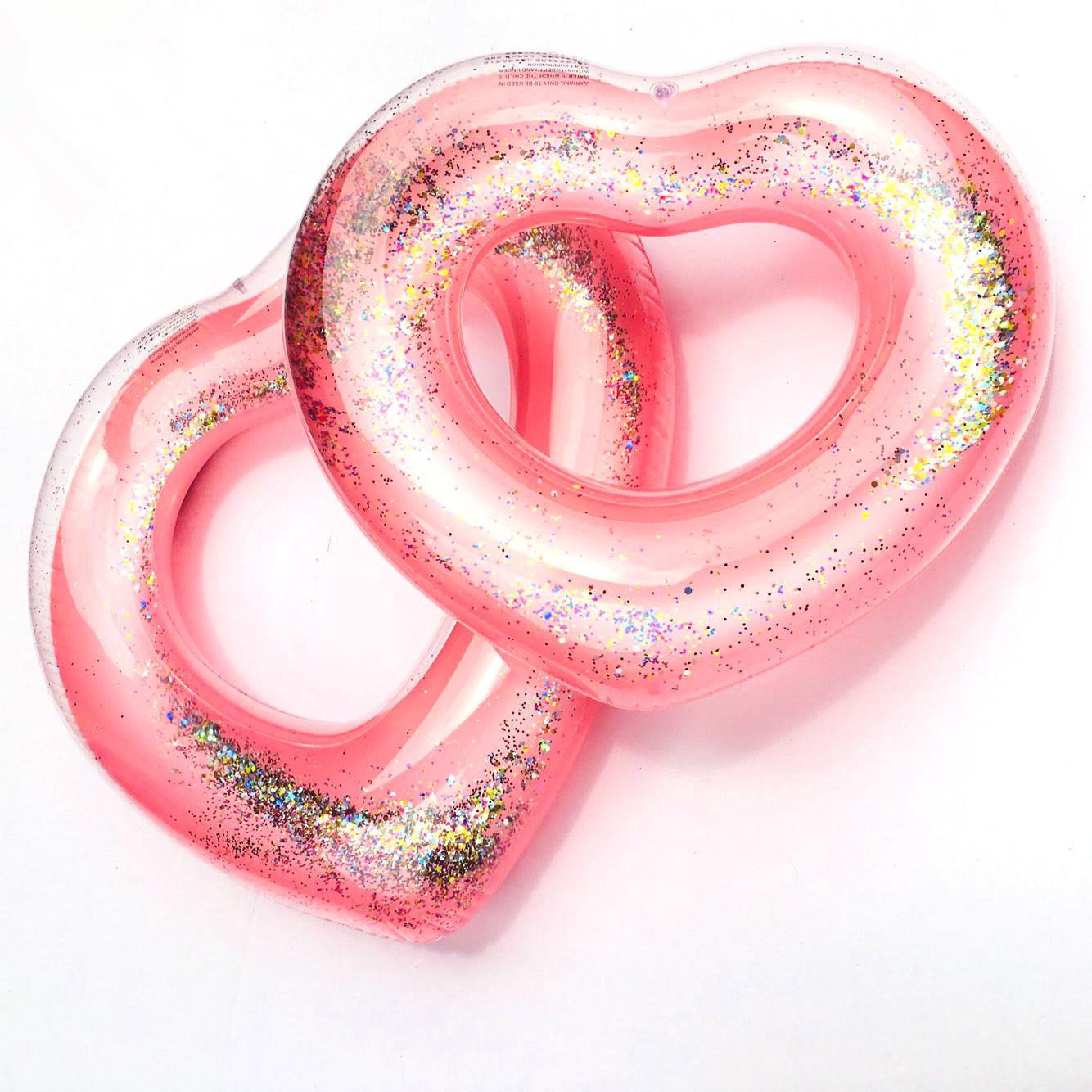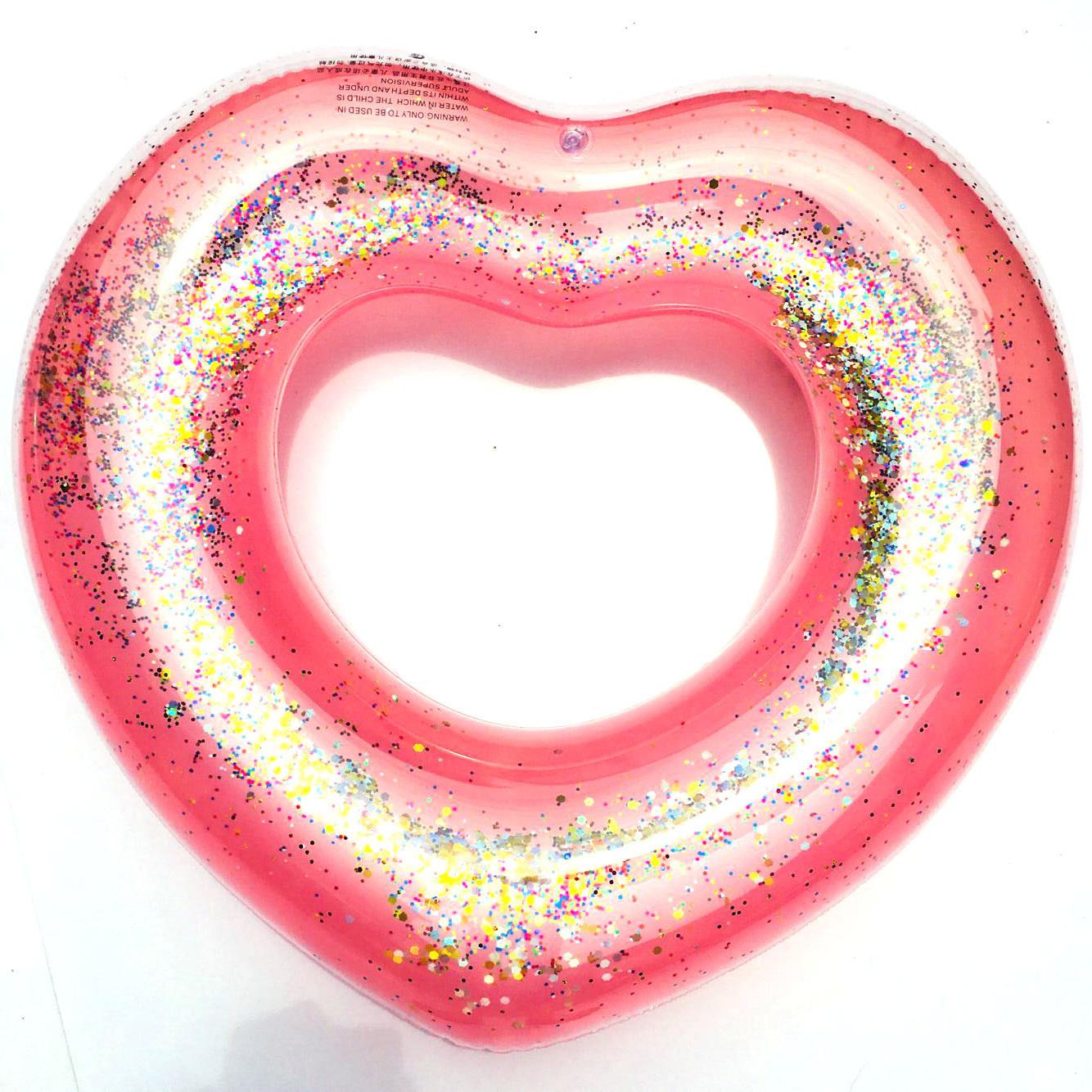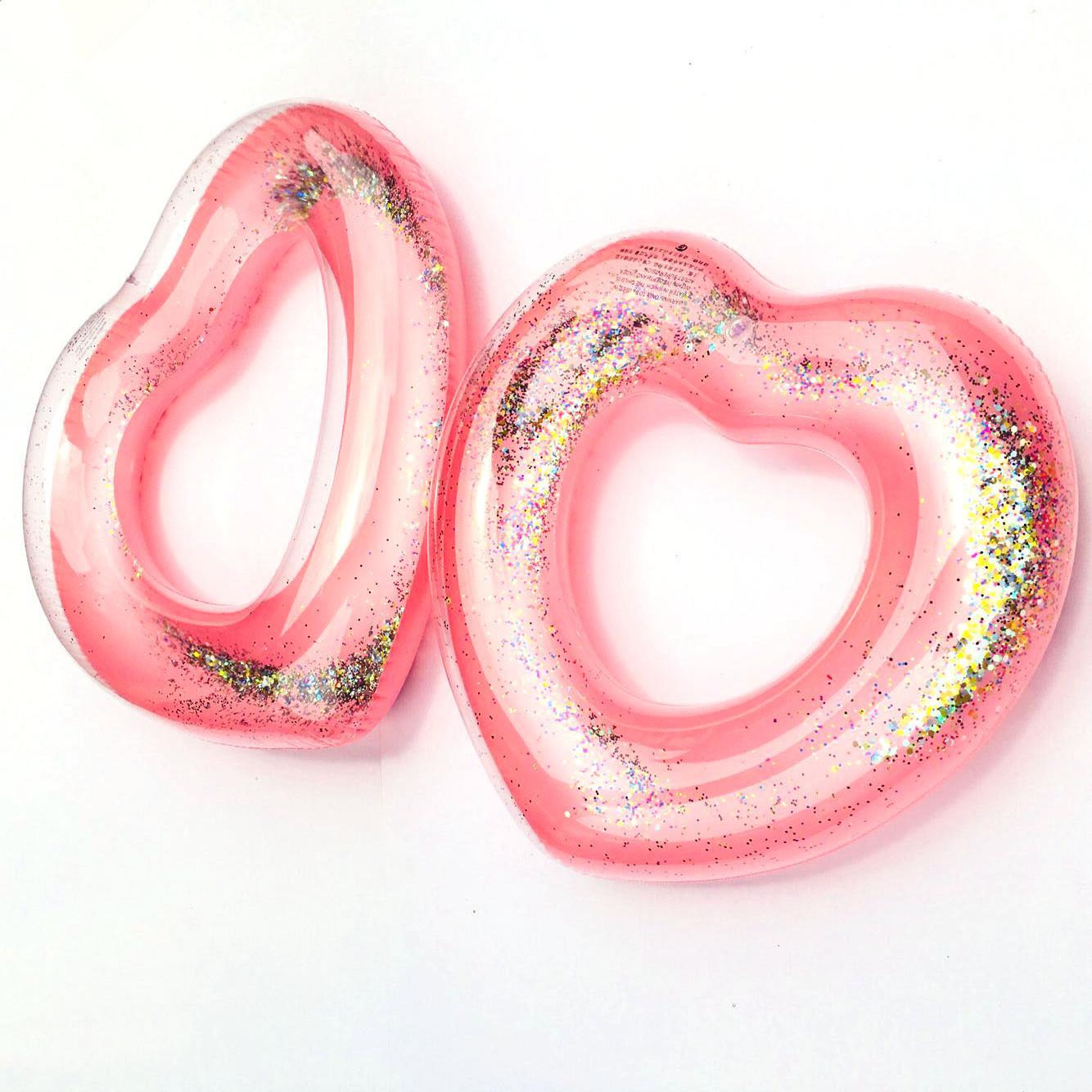 Anillo de natación Love, anillo de natación de PVC grueso con lentejuelas, anillo de natación inflable transparente, anillo de natación para axilas, anillo de natación flotante al por mayor