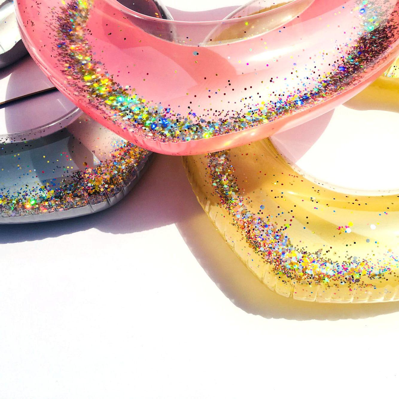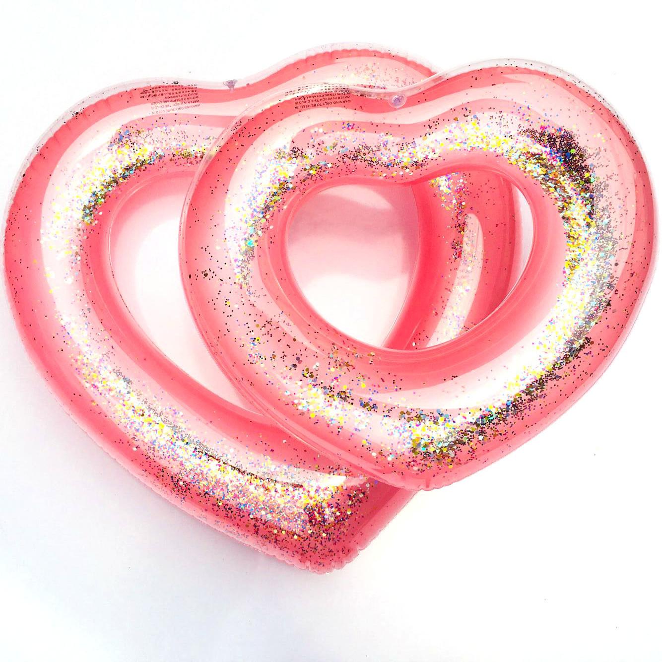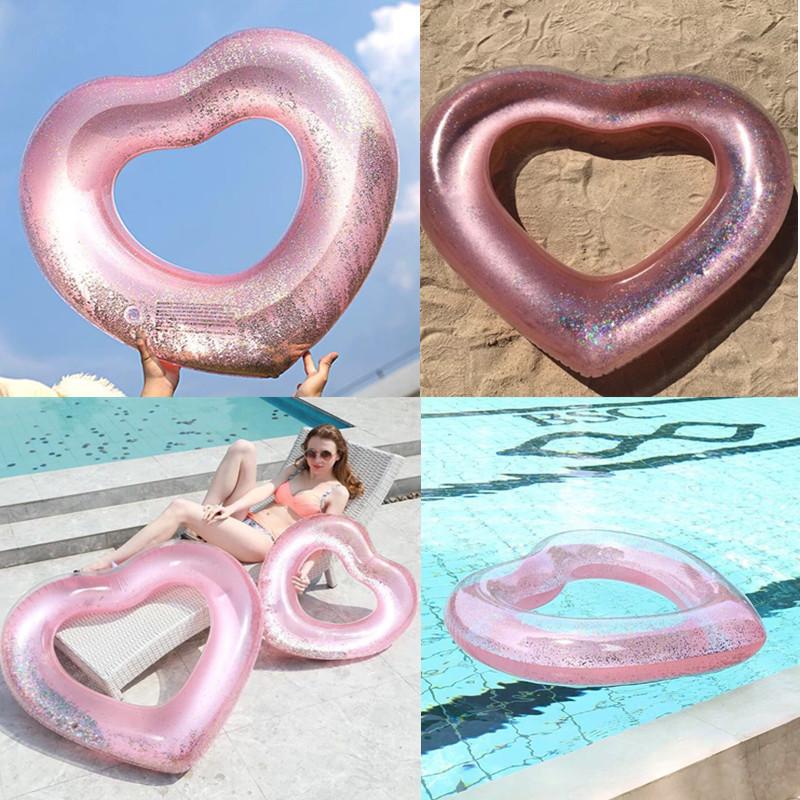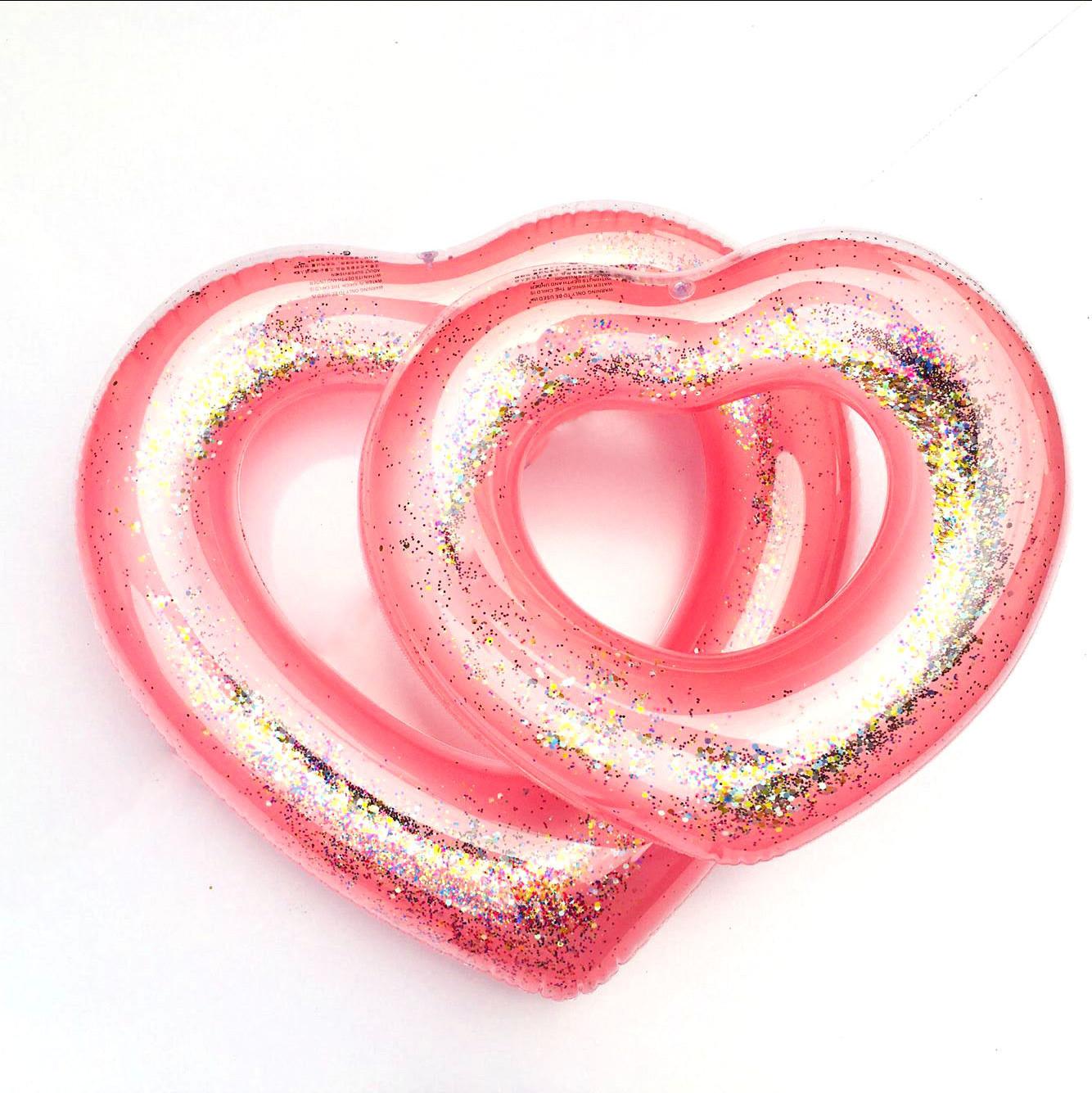 Anillo de natación Love, anillo de natación de PVC grueso con lentejuelas, anillo de natación inflable transparente, anillo de natación para axilas, anillo de natación flotante al por mayor