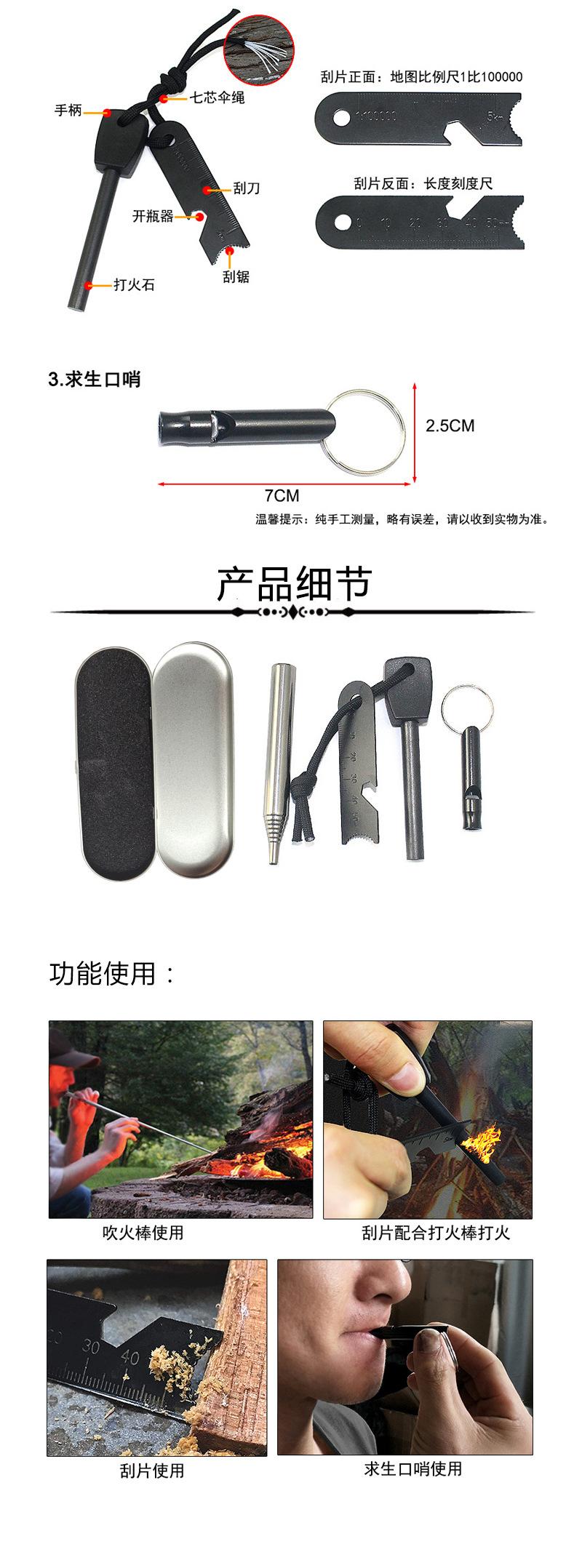 Suministros para acampar al aire libre montañismo en la naturaleza pedernal set de supervivencia contra fuego caja de emergencia SOS plata