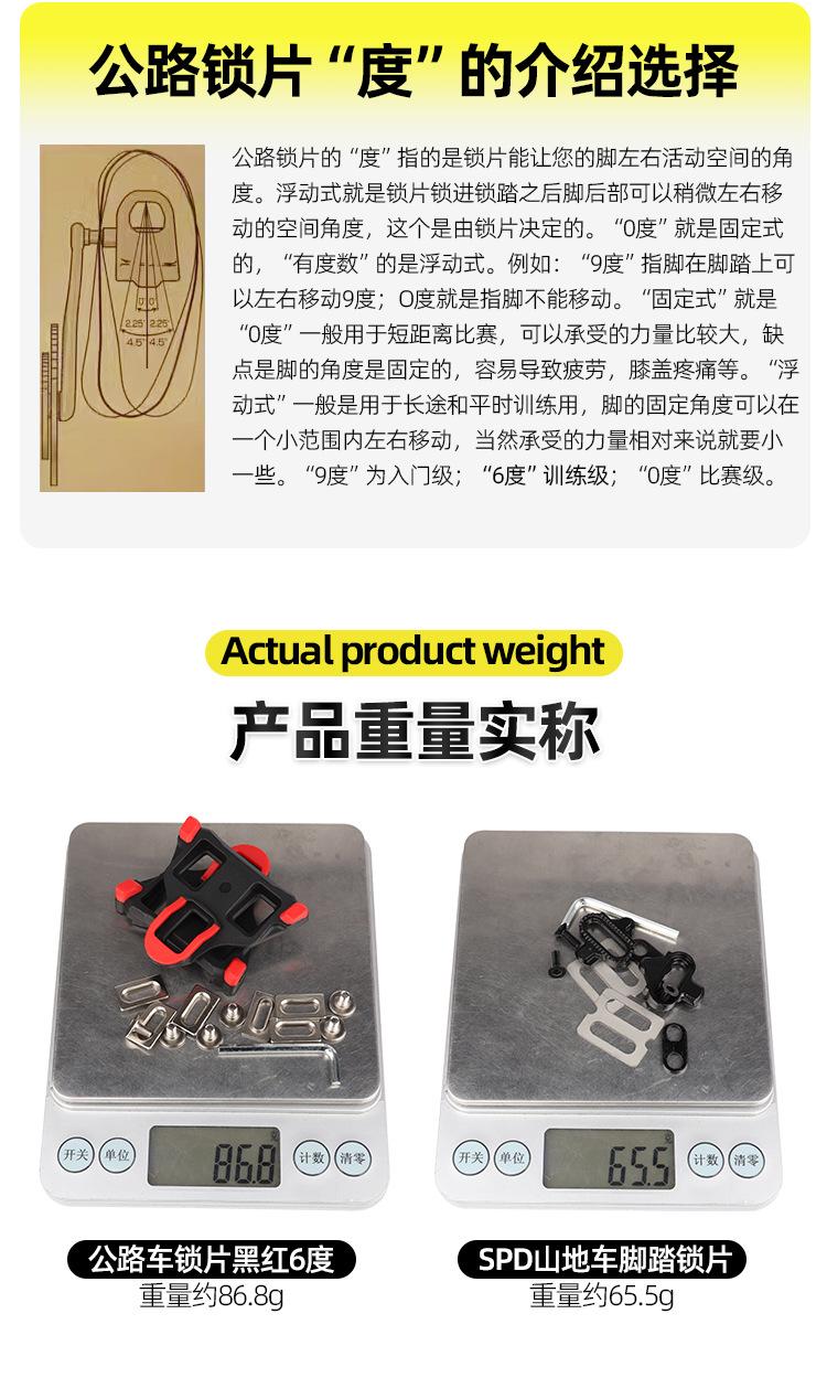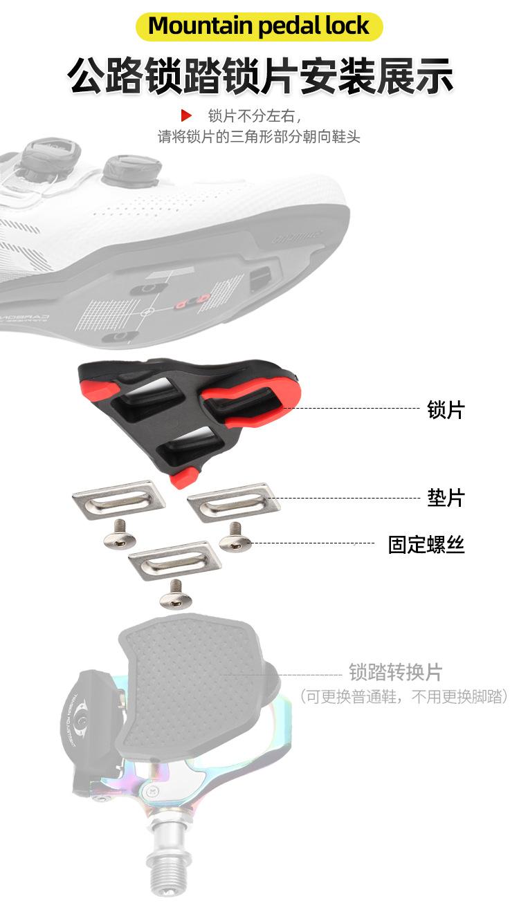 Compatible with Shimano Road Lock 6 degrees (red), Universal Mountain Lock (black)