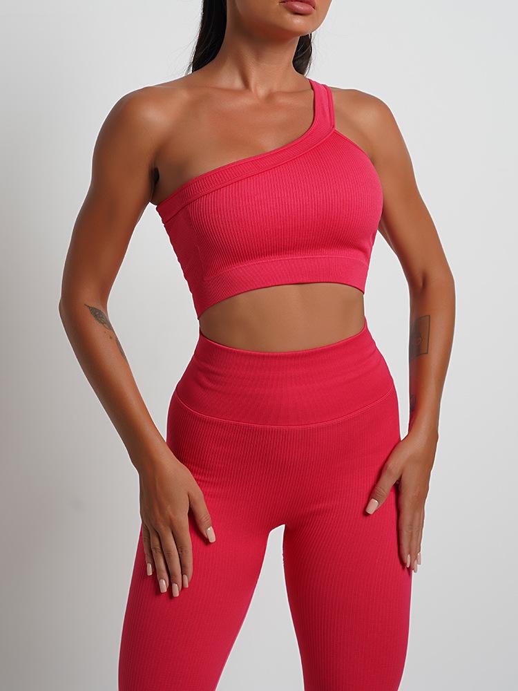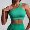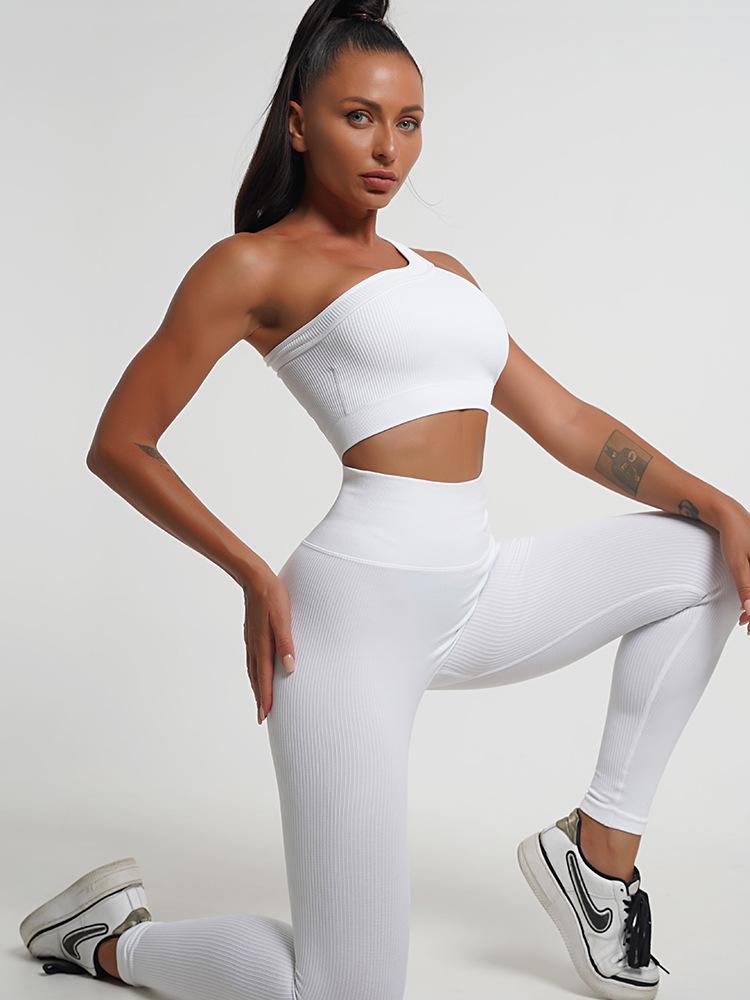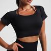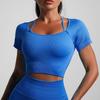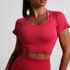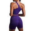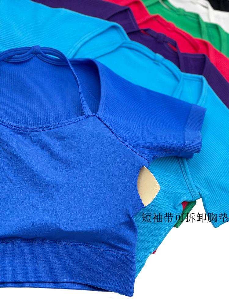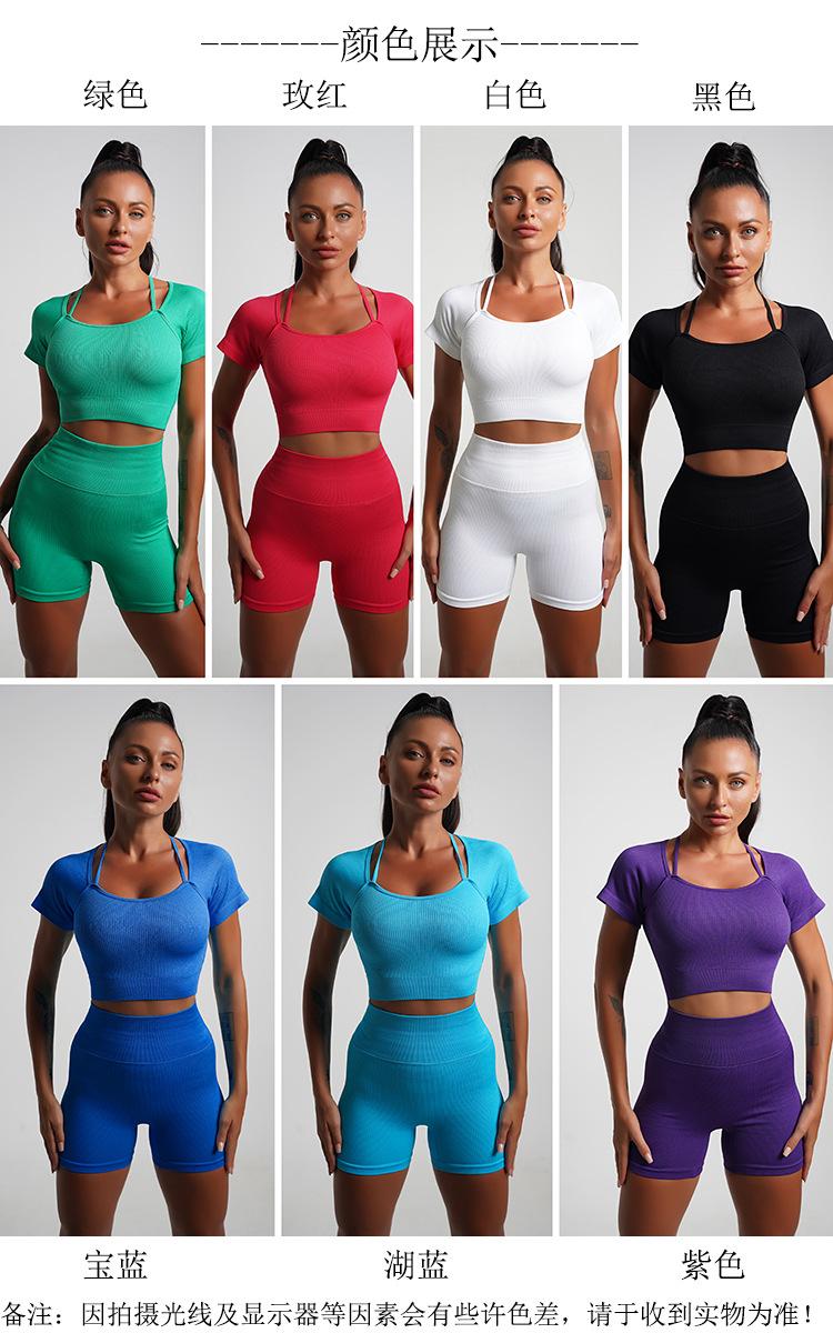 Traje de yoga plisado sin costuras europeo y americano de dos piezas para mujer, para fitness al aire libre, cintura alta, ajustado, de manga corta