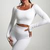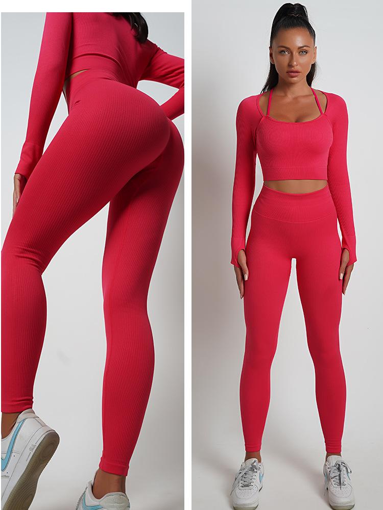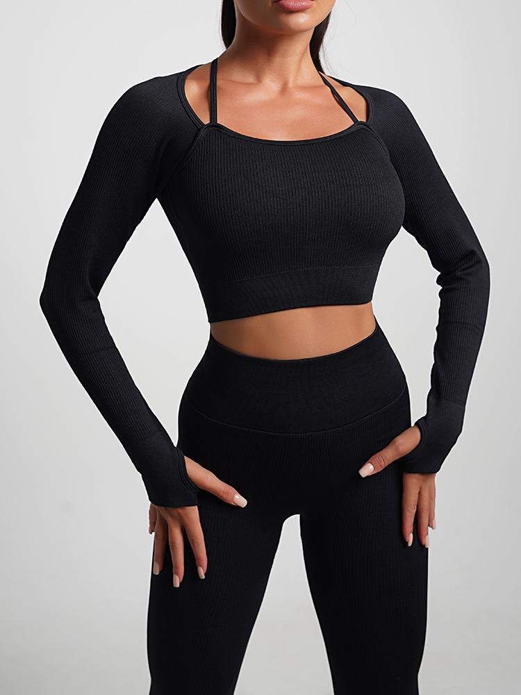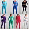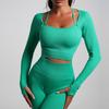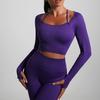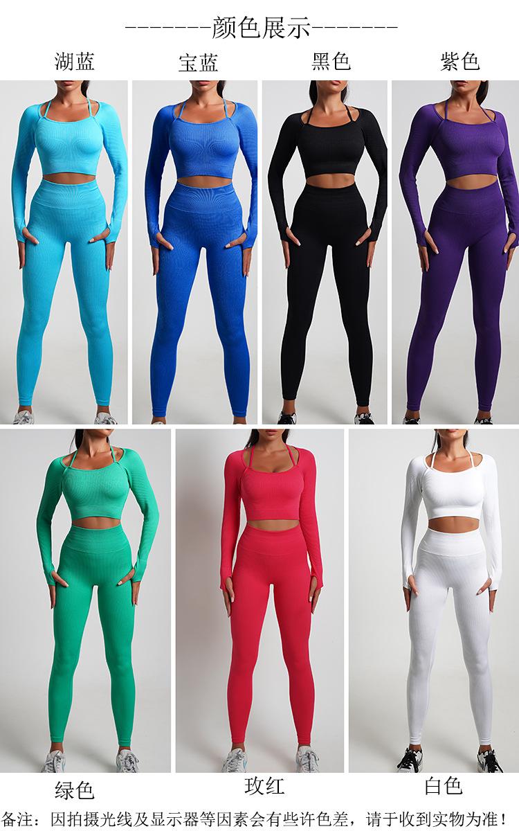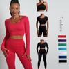 Pantalones deportivos de nueve puntos con cintura alta y hermosos glúteos, camiseta deportiva de manga larga con espalda hermosa, traje de yoga fitness para mujer, transfronterizos europeos y americanos